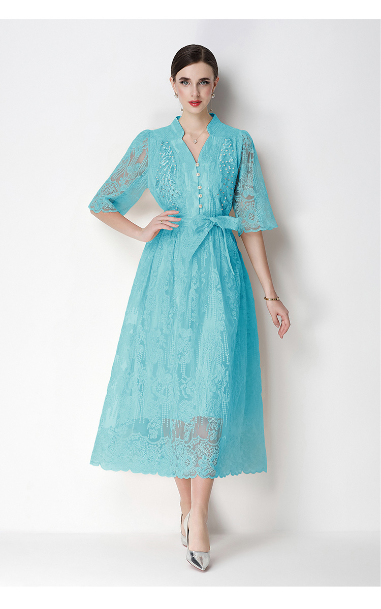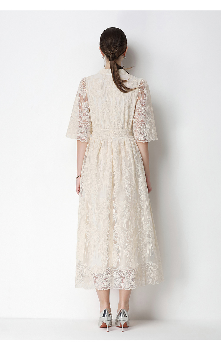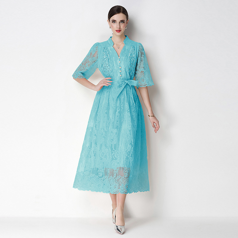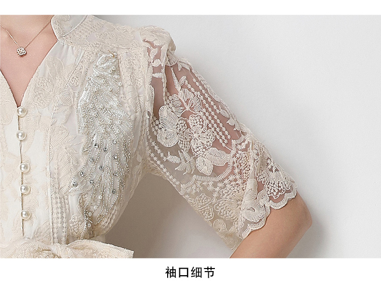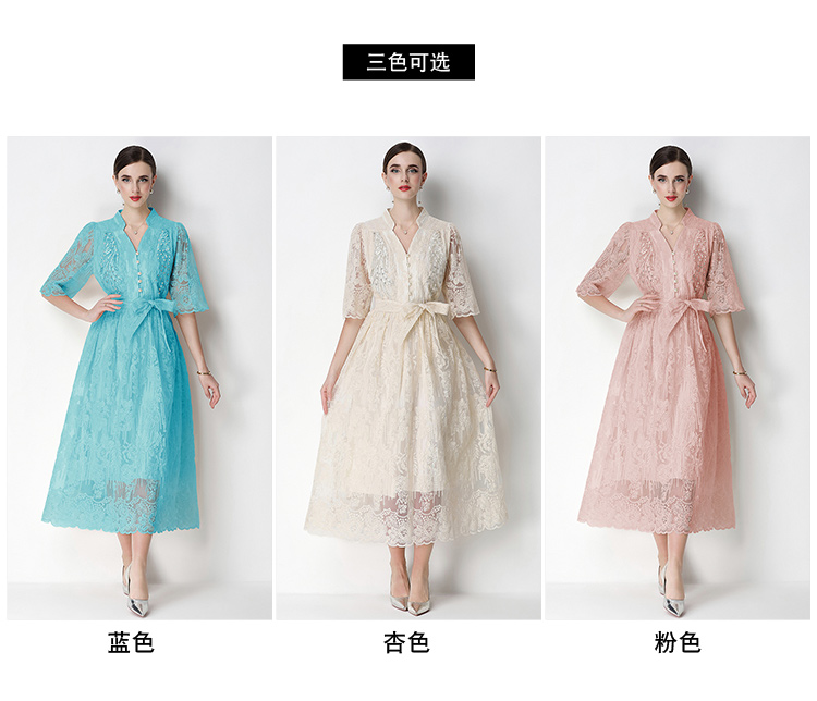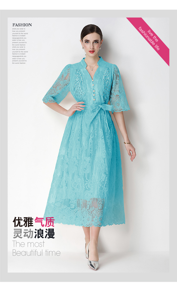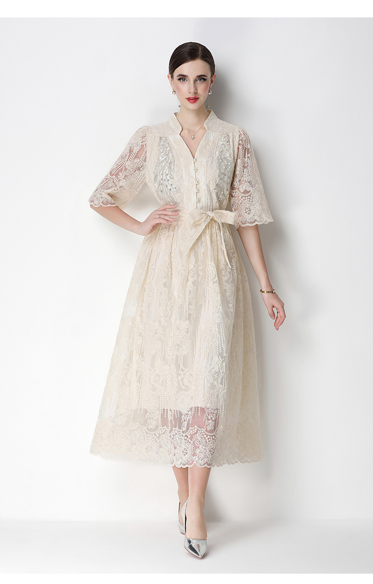 RY4042# 2026重工蕾丝手工绣花连衣裙收腰气质裙