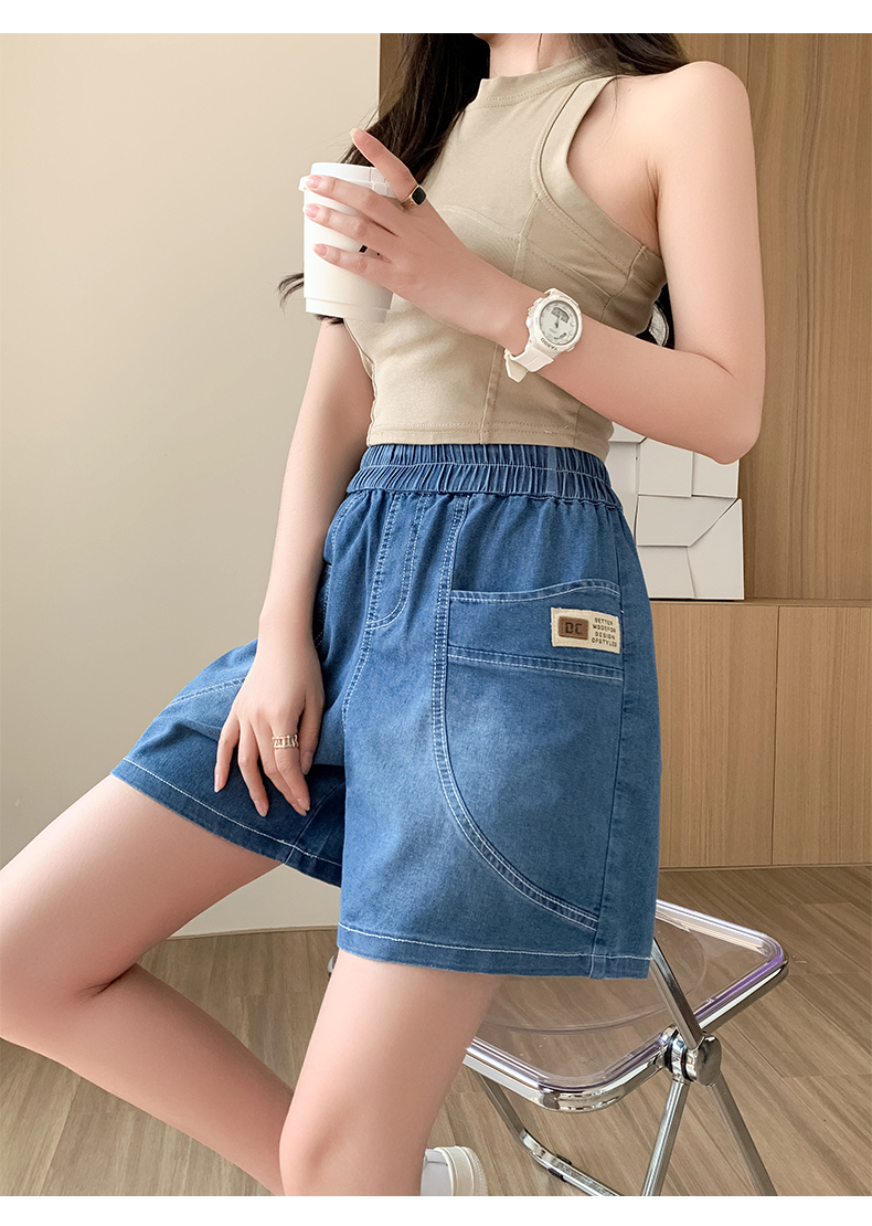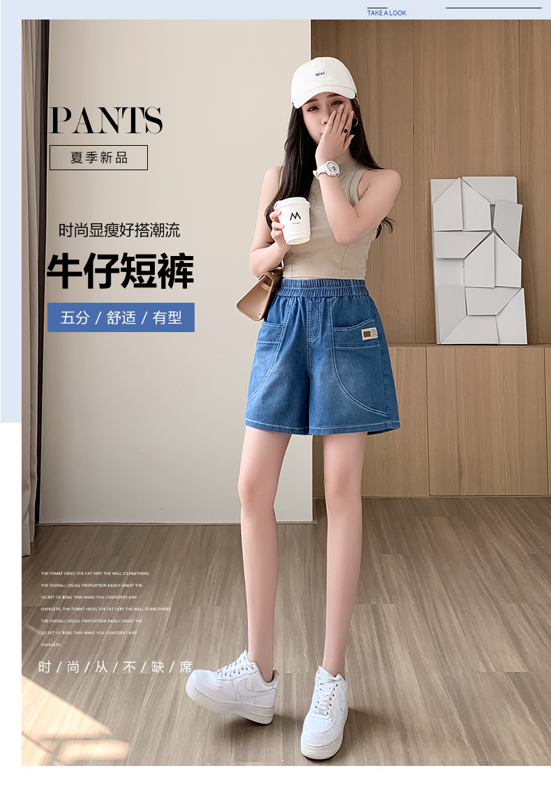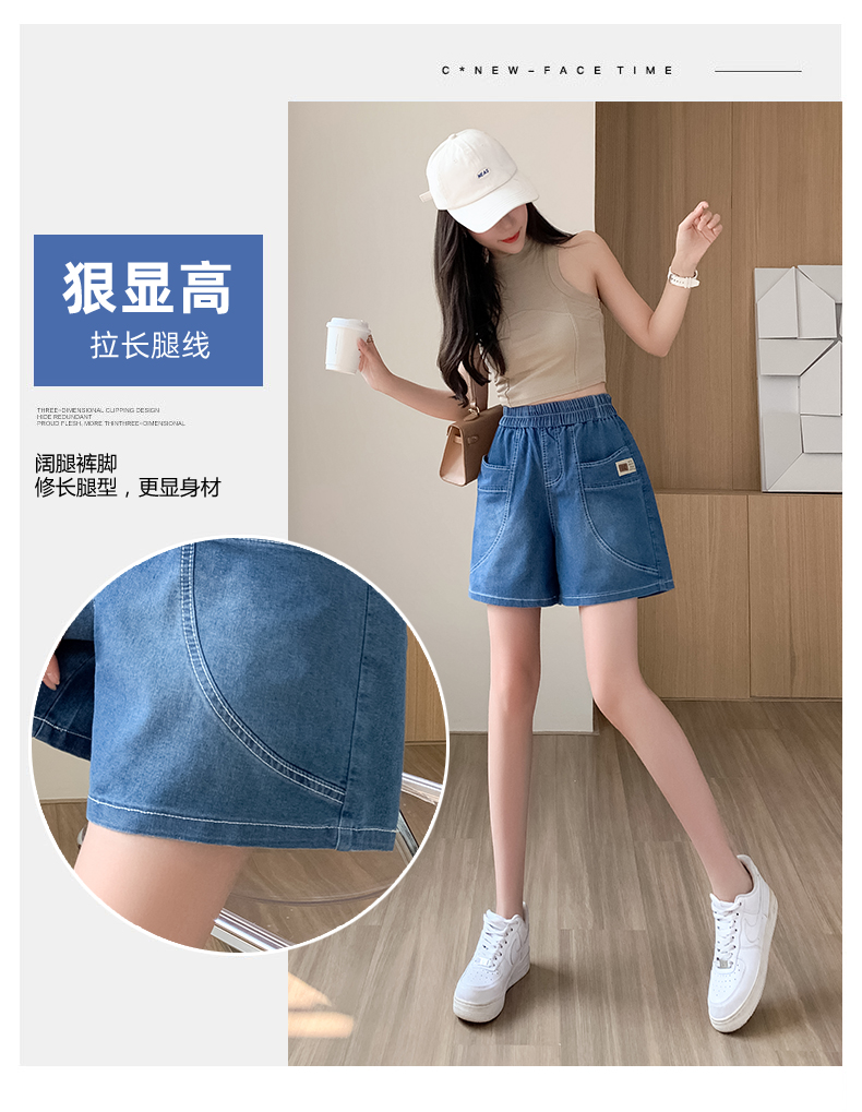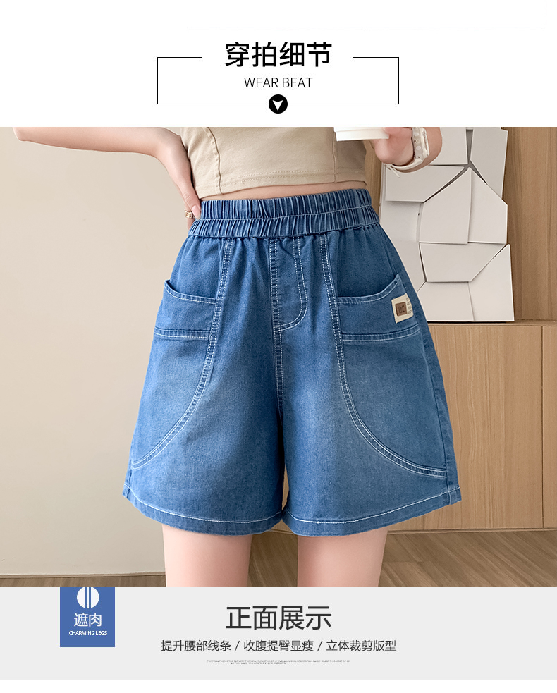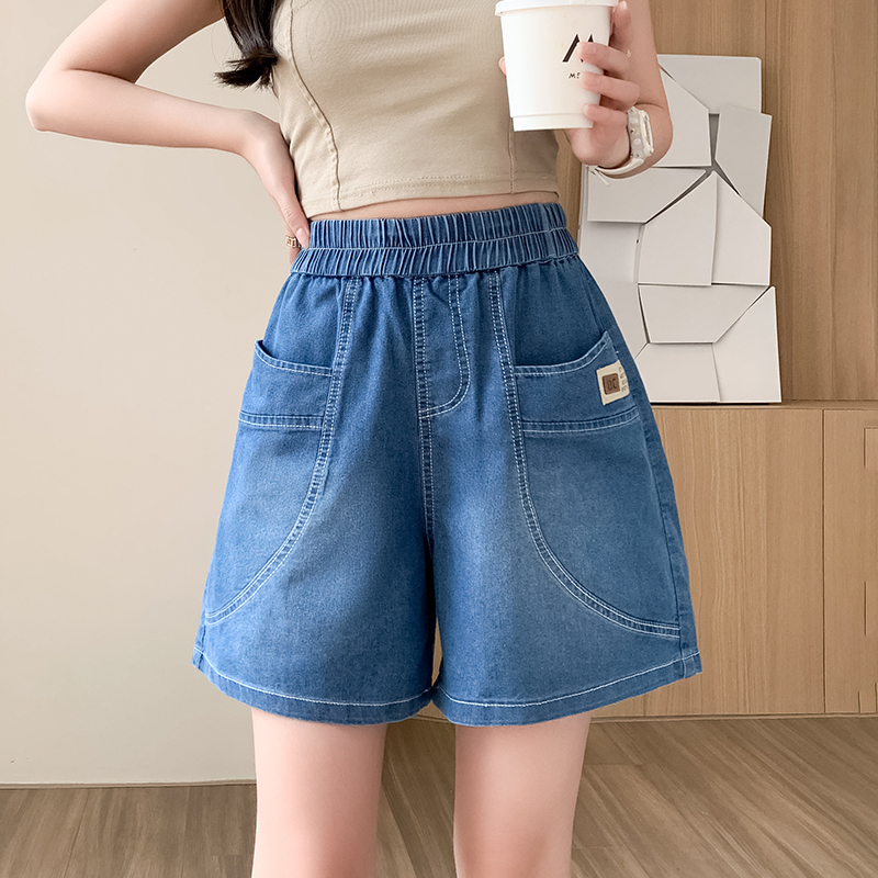RY4061# 薄款牛仔短裤女2026新款夏季百搭时尚松紧高腰显瘦休闲宽松阔腿裤