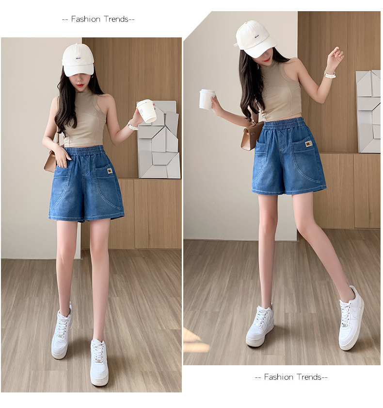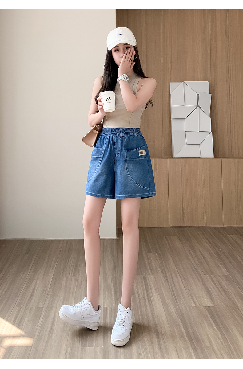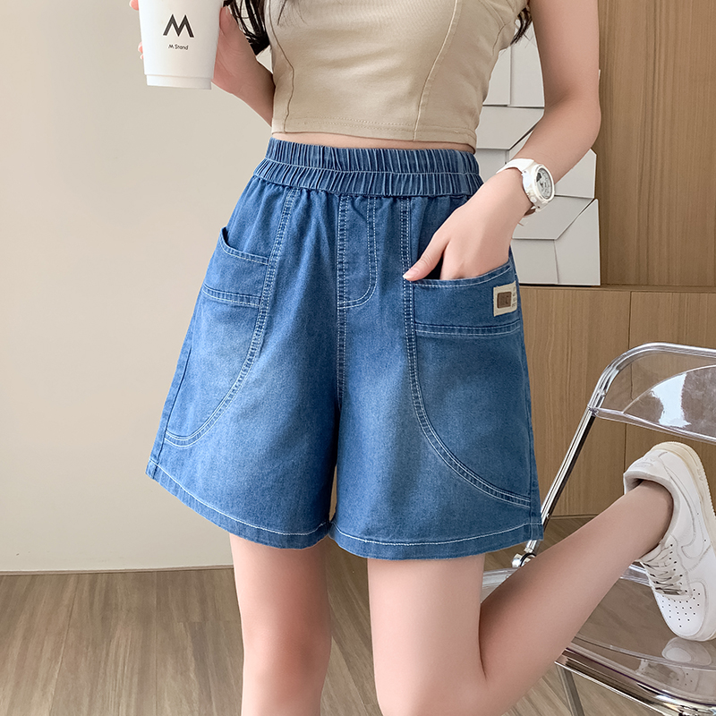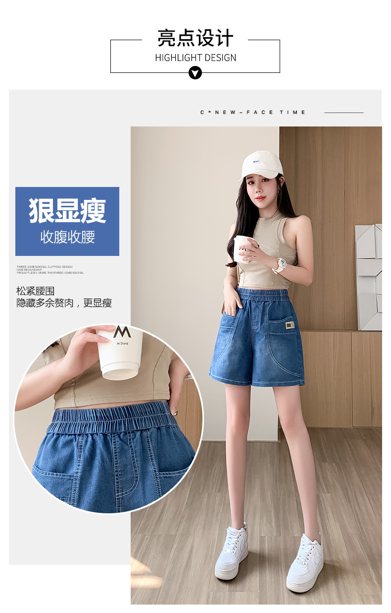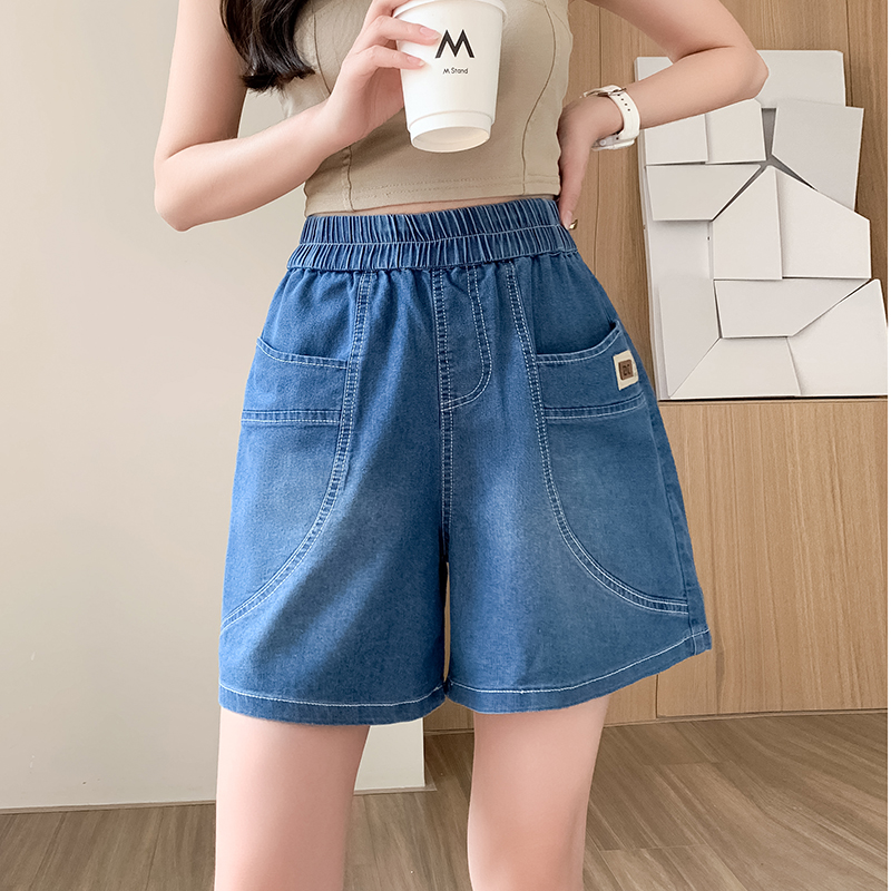 RY4061# 薄款牛仔短裤女2026新款夏季百搭时尚松紧高腰显瘦休闲宽松阔腿裤