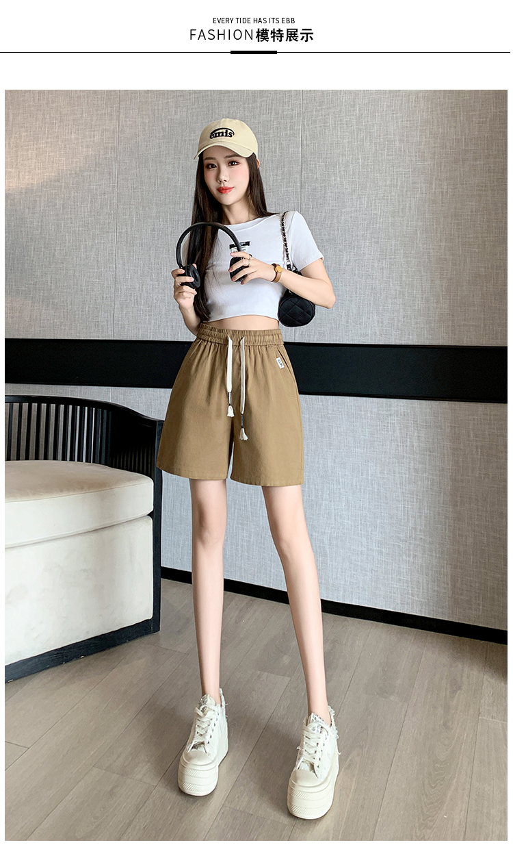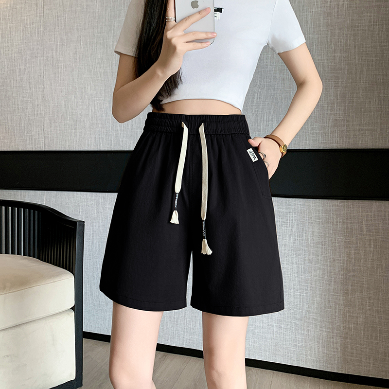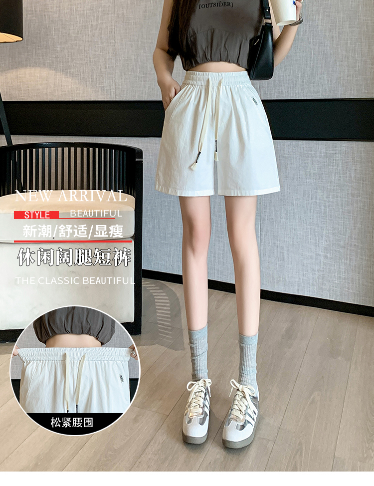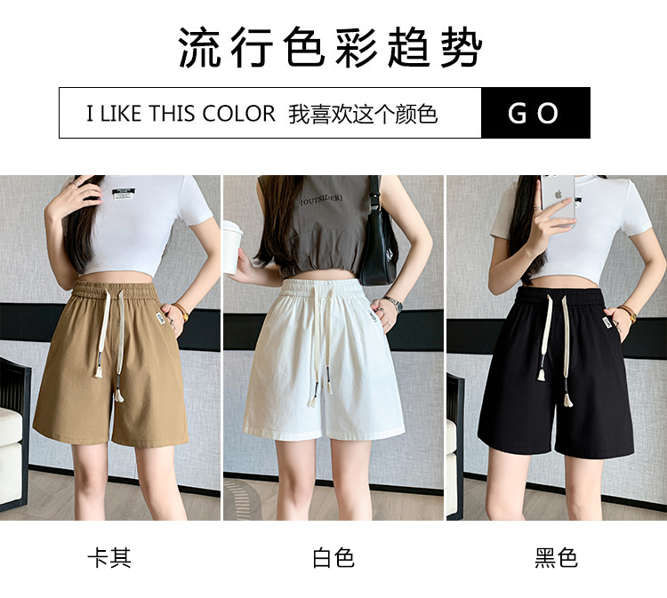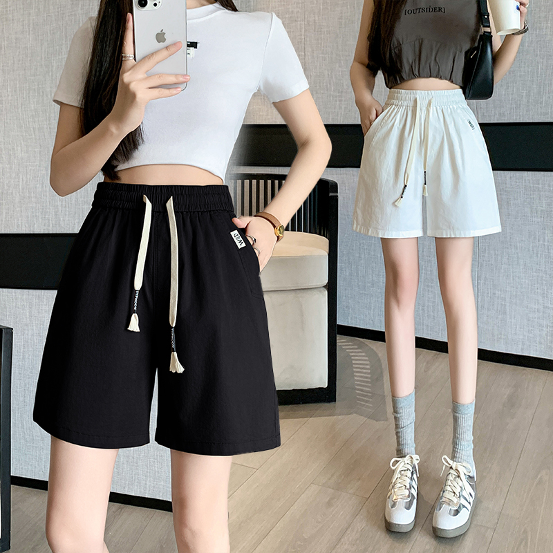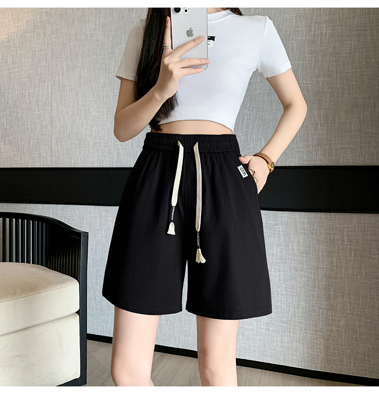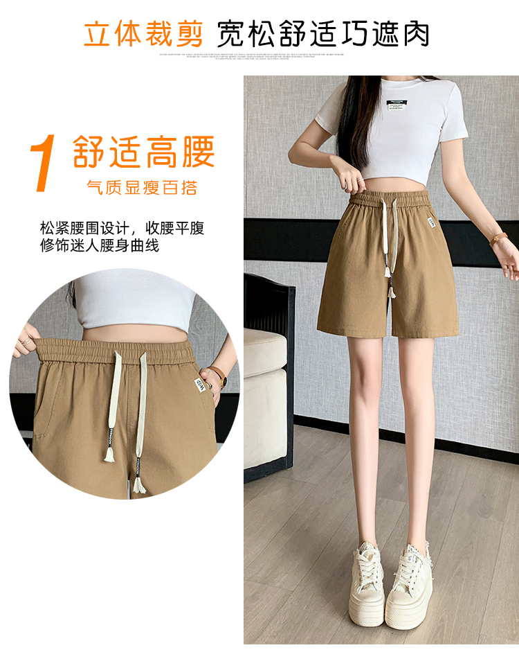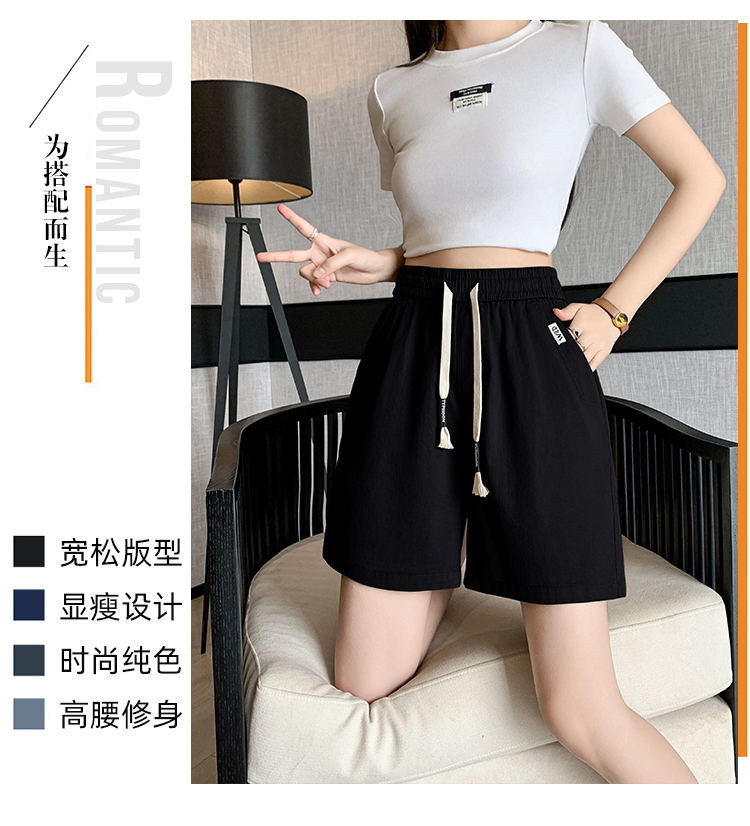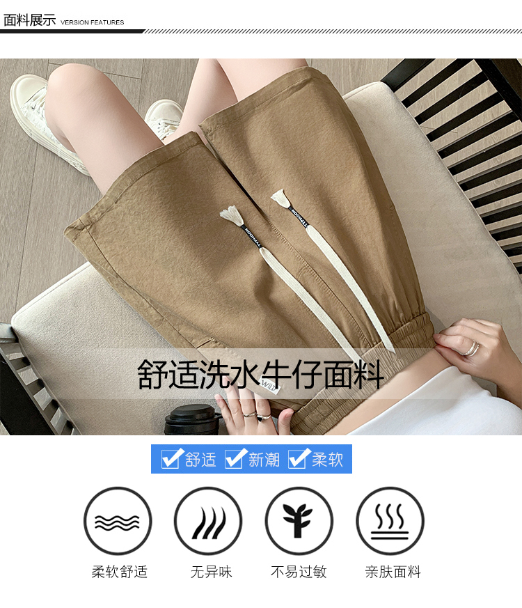 RY4066# 水洗棉抽绳牛仔五分裤女2026夏季百搭时尚高腰显瘦休闲宽松阔腿裤