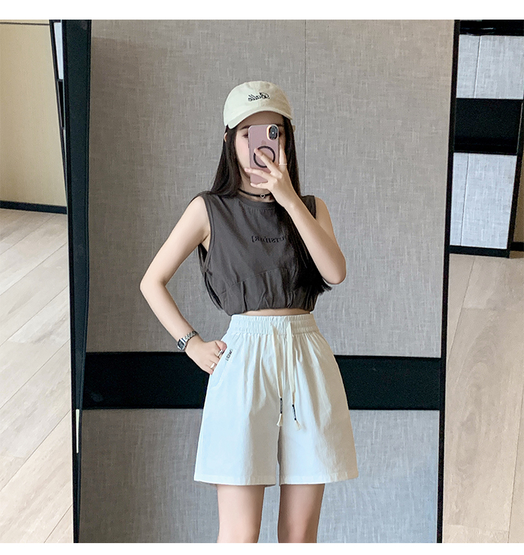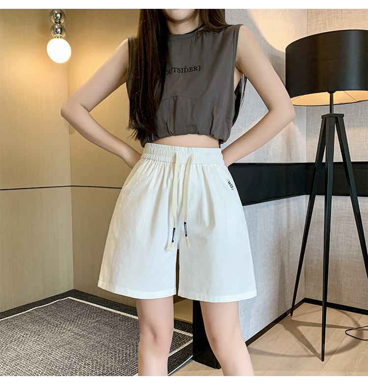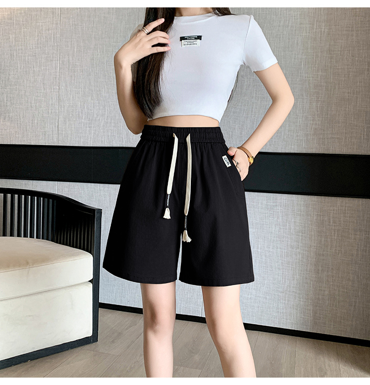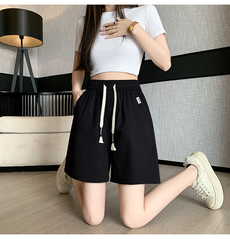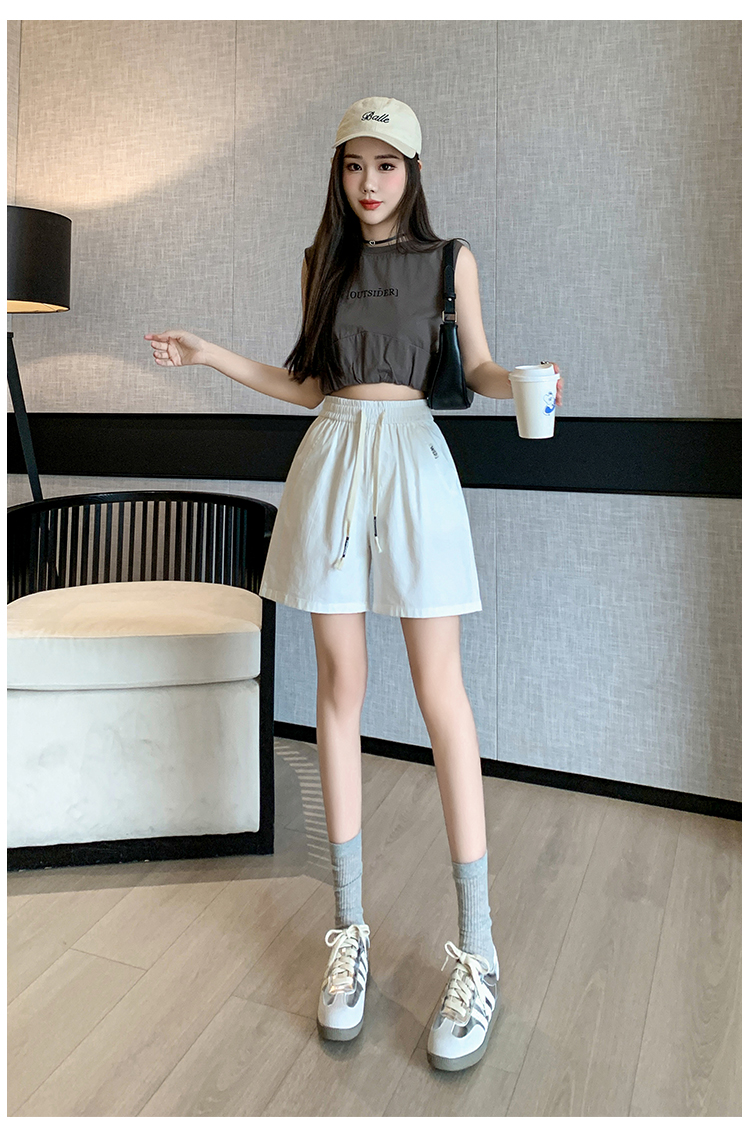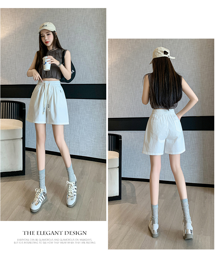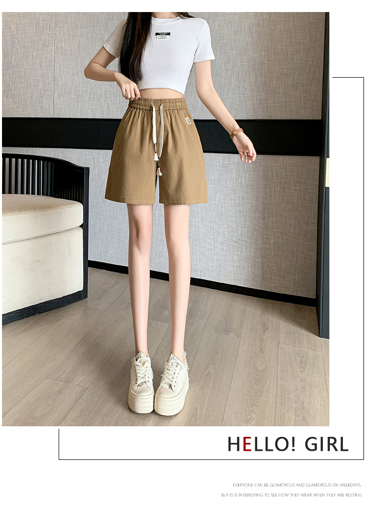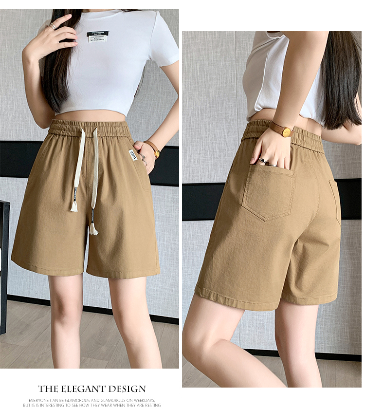 RY4066# 水洗棉抽绳牛仔五分裤女2026夏季百搭时尚高腰显瘦休闲宽松阔腿裤