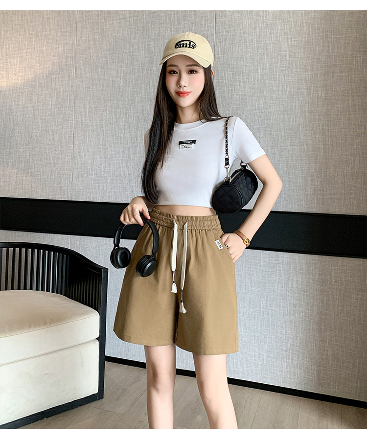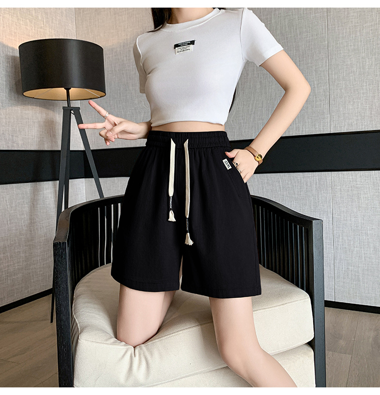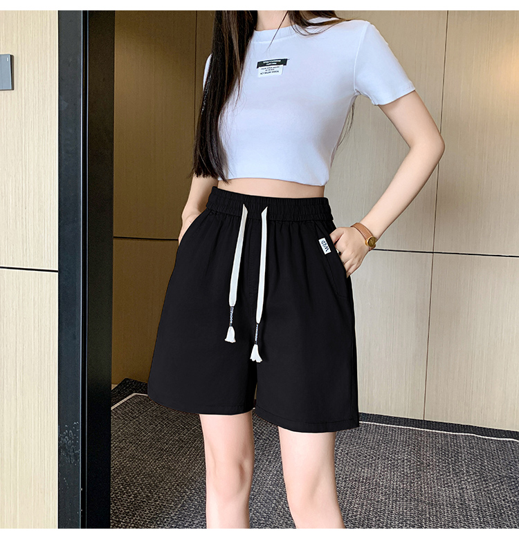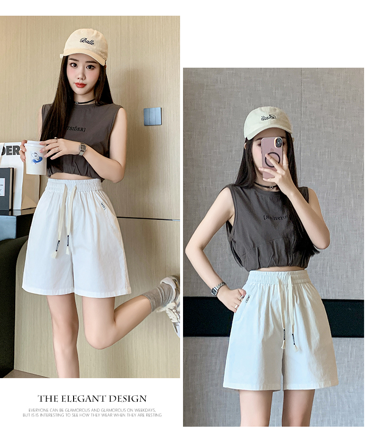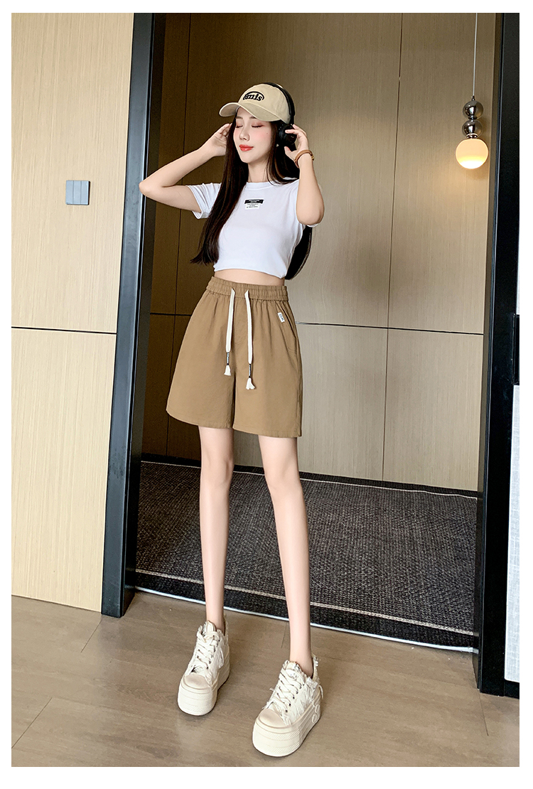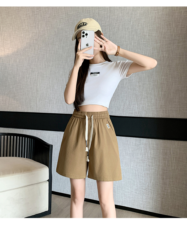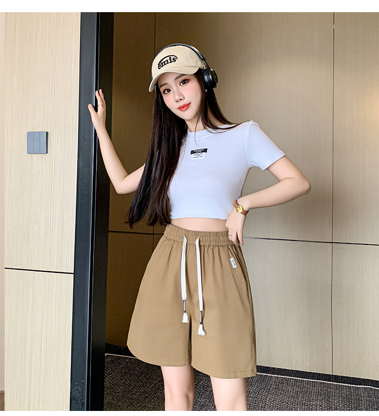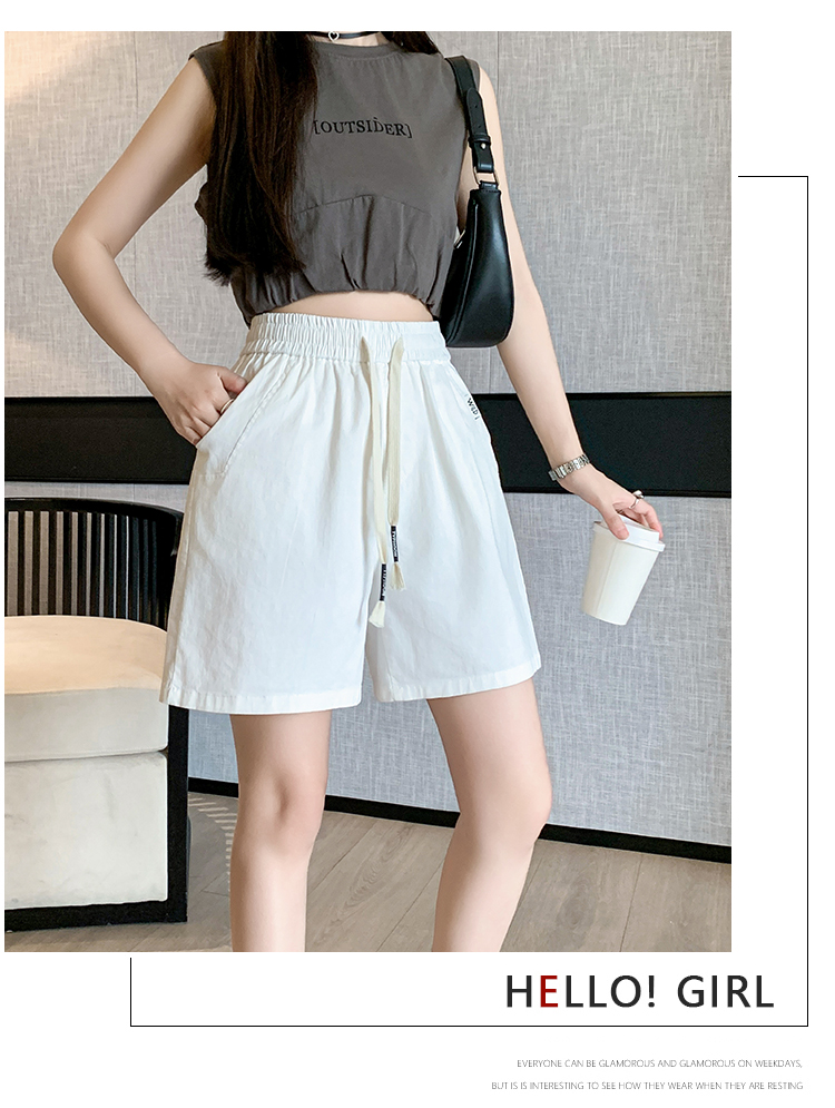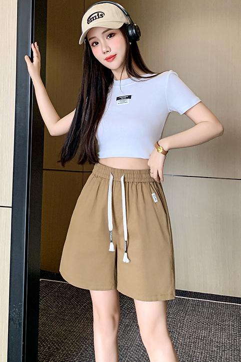 RY4066# 水洗棉抽绳牛仔五分裤女2026夏季百搭时尚高腰显瘦休闲宽松阔腿裤