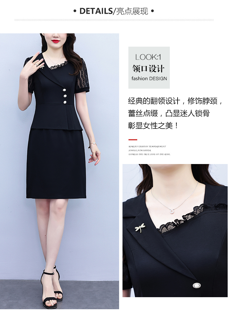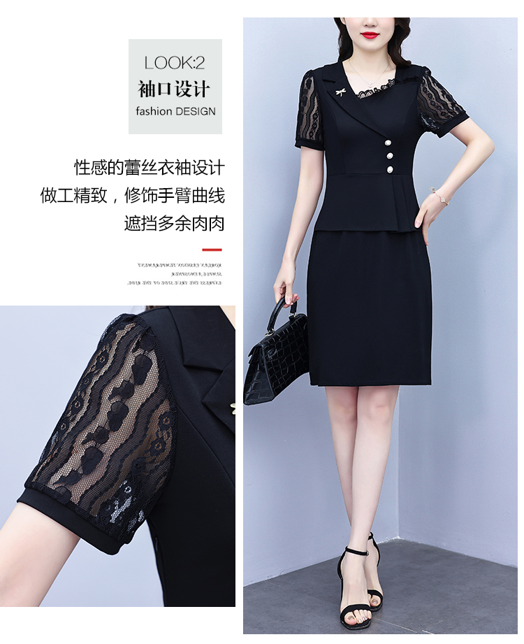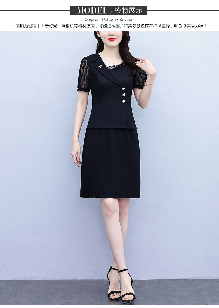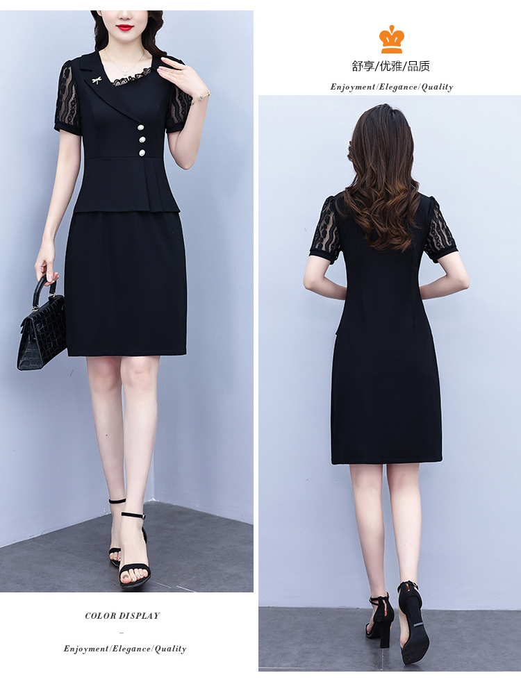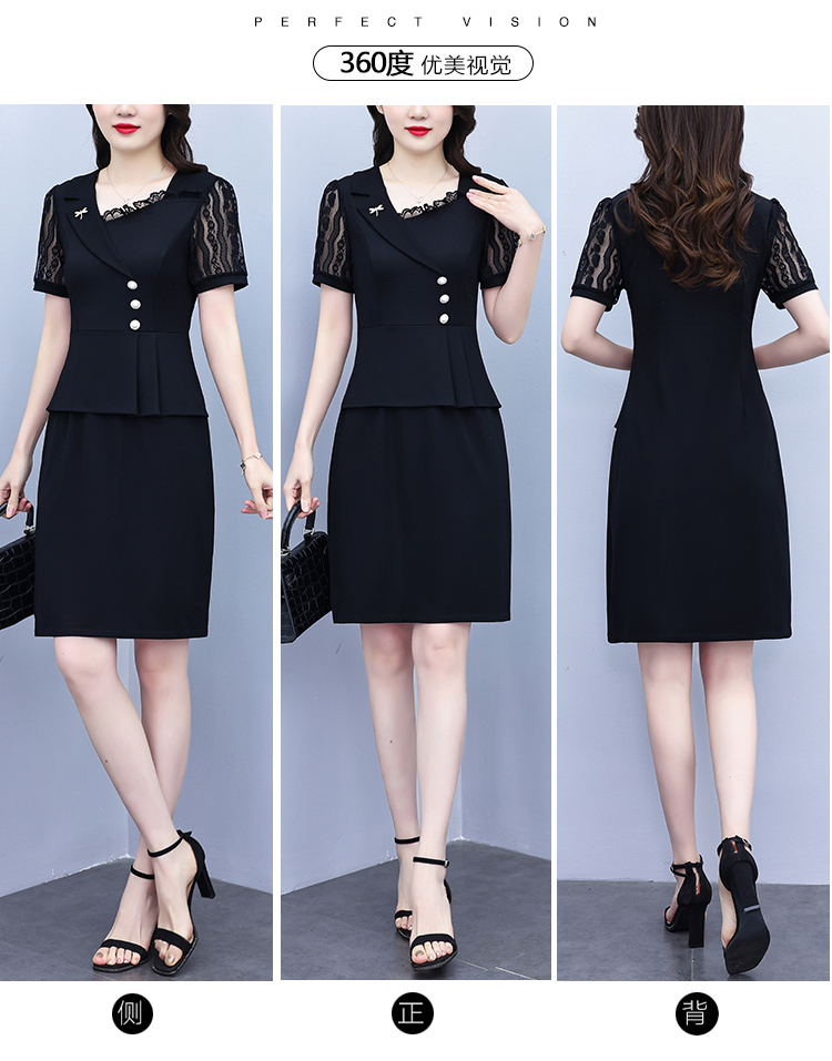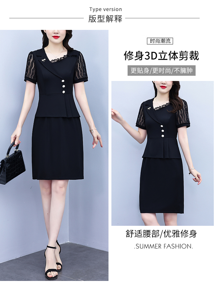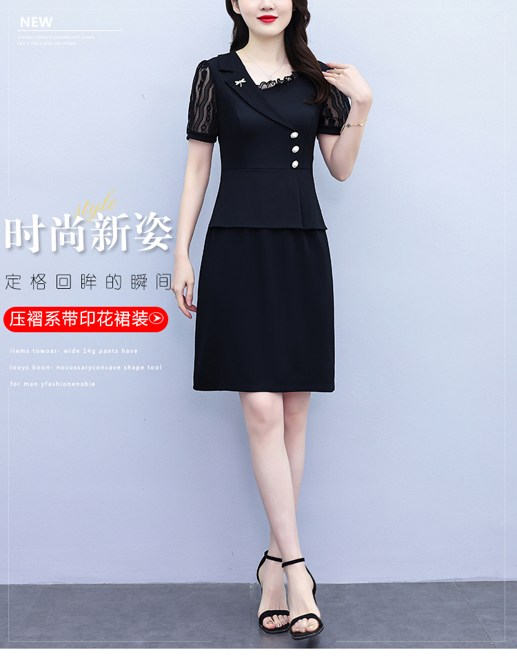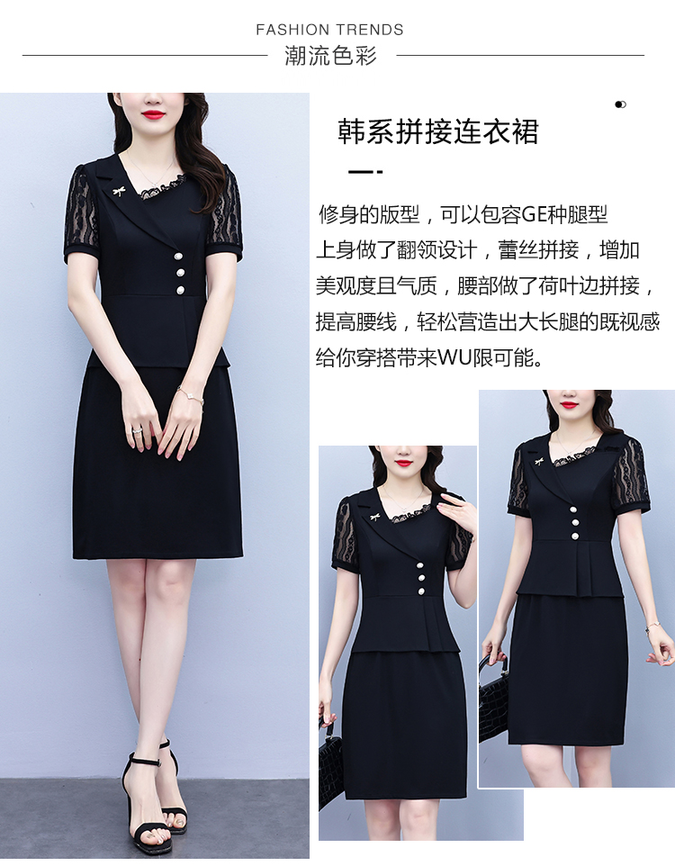 RY4077# 假两件套修身显瘦大码女装胖mm时尚洋气短袖夏季中年妈妈连衣裙