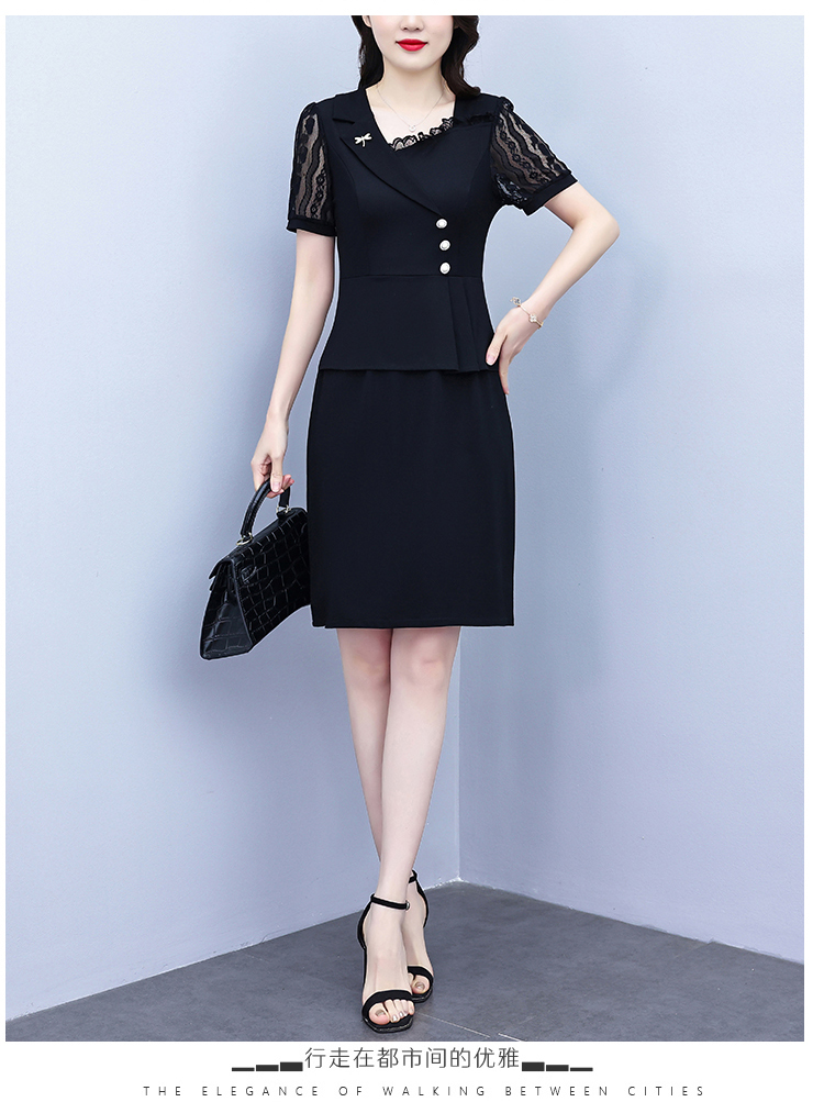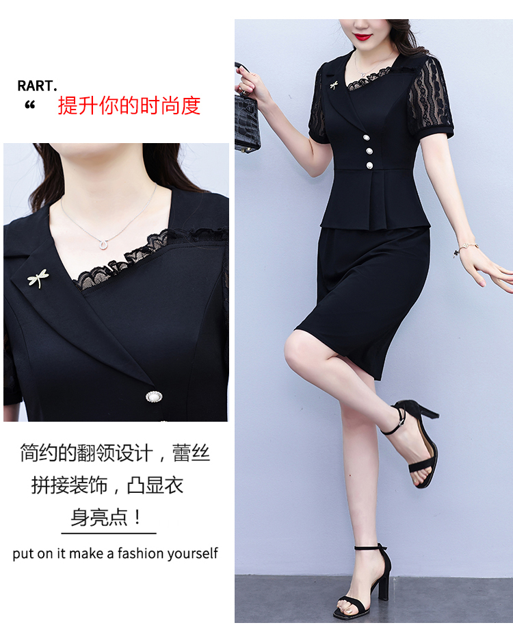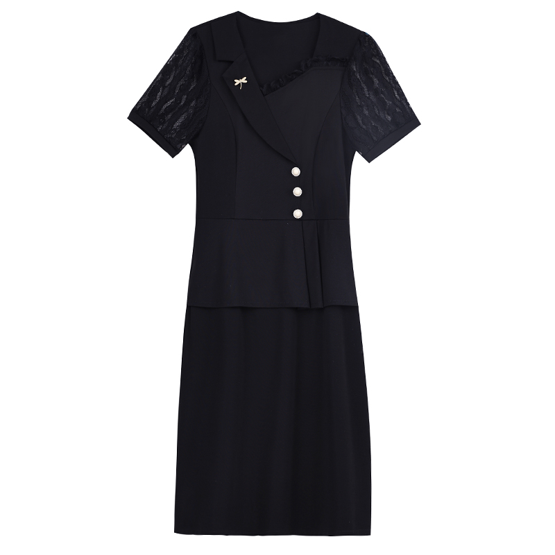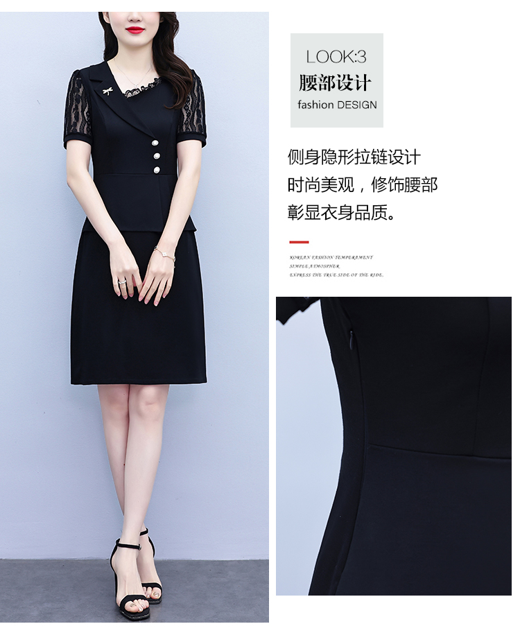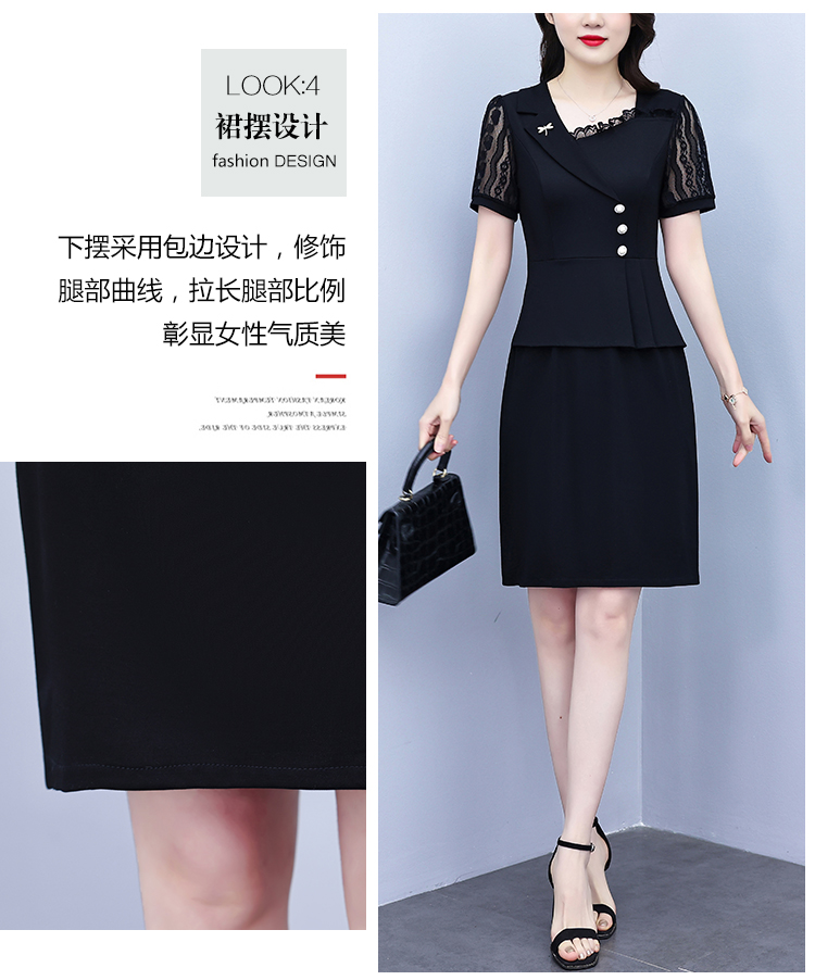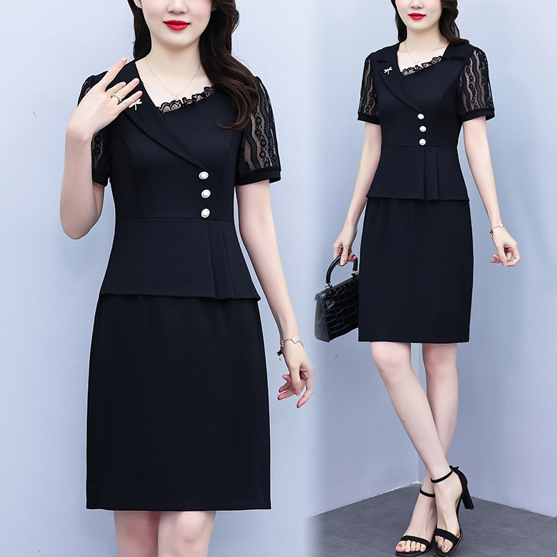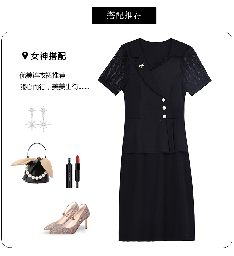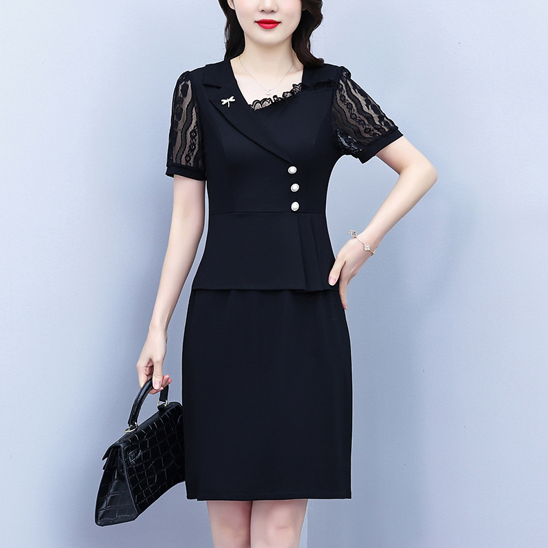RY4077# 假两件套修身显瘦大码女装胖mm时尚洋气短袖夏季中年妈妈连衣裙