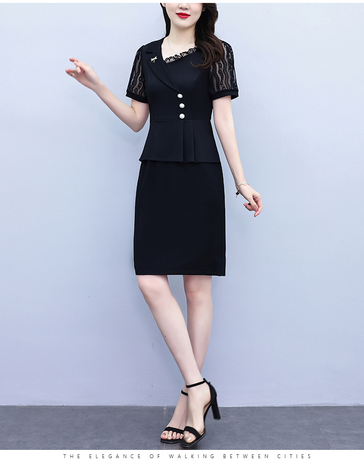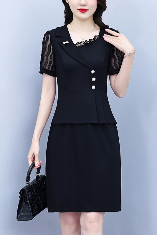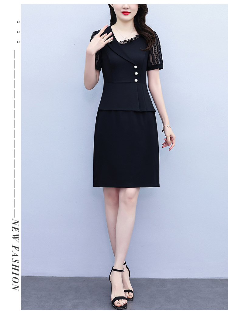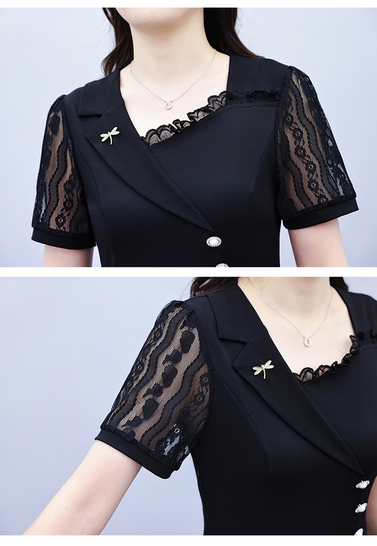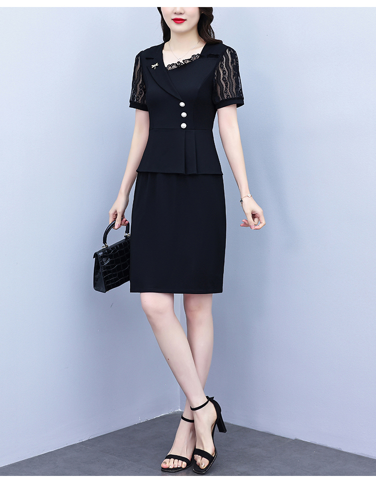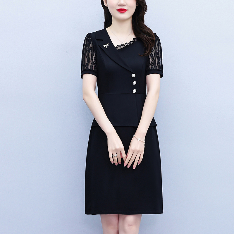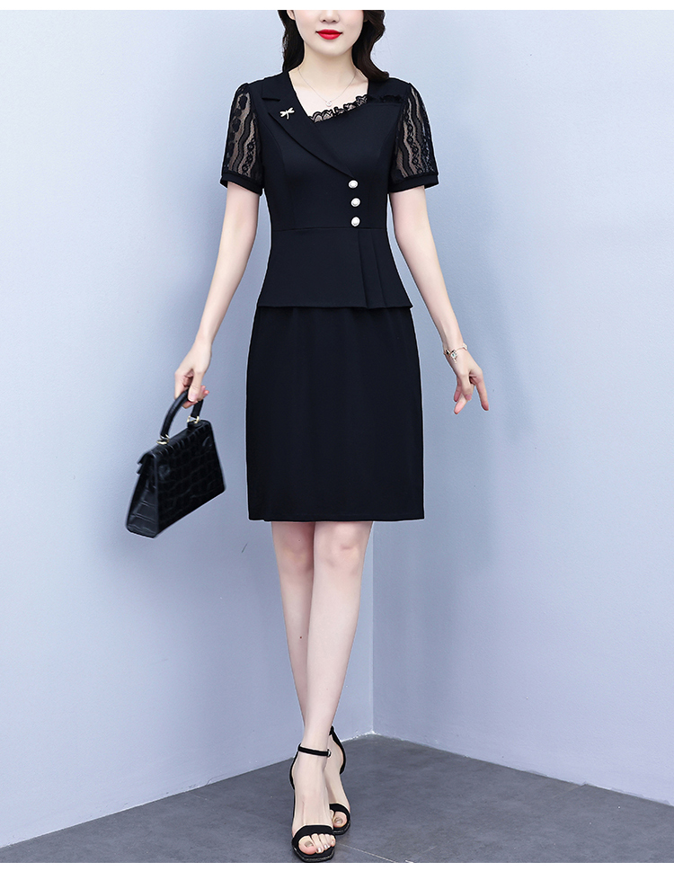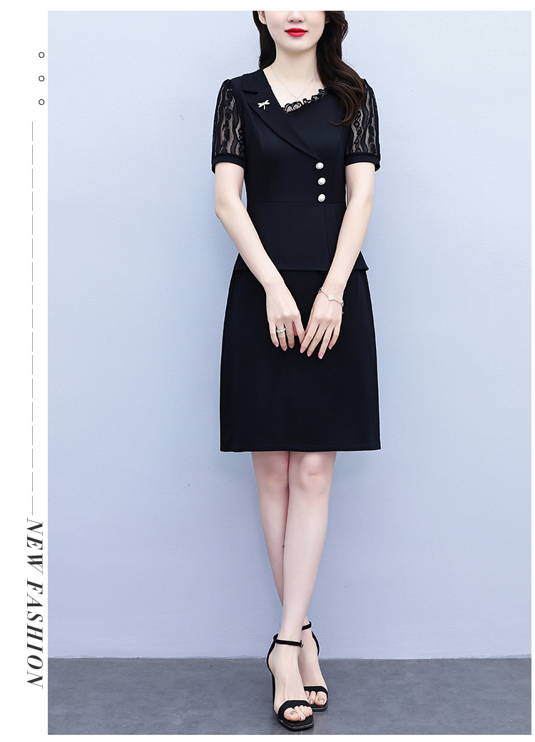 RY4077# 假两件套修身显瘦大码女装胖mm时尚洋气短袖夏季中年妈妈连衣裙