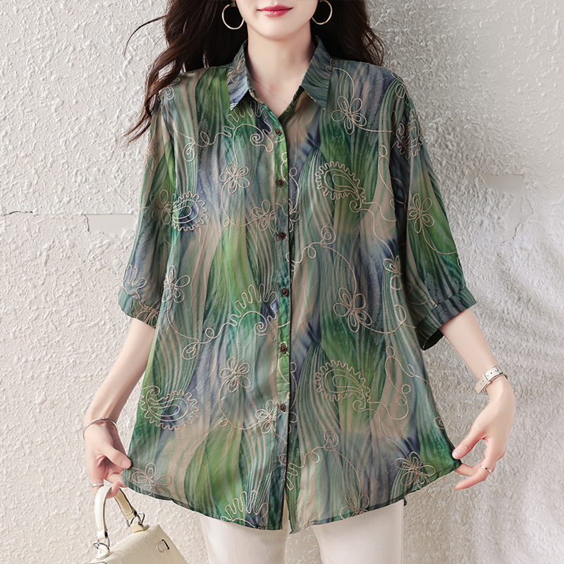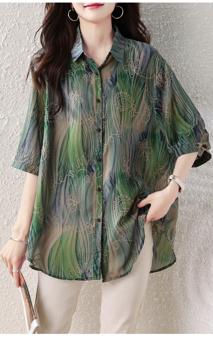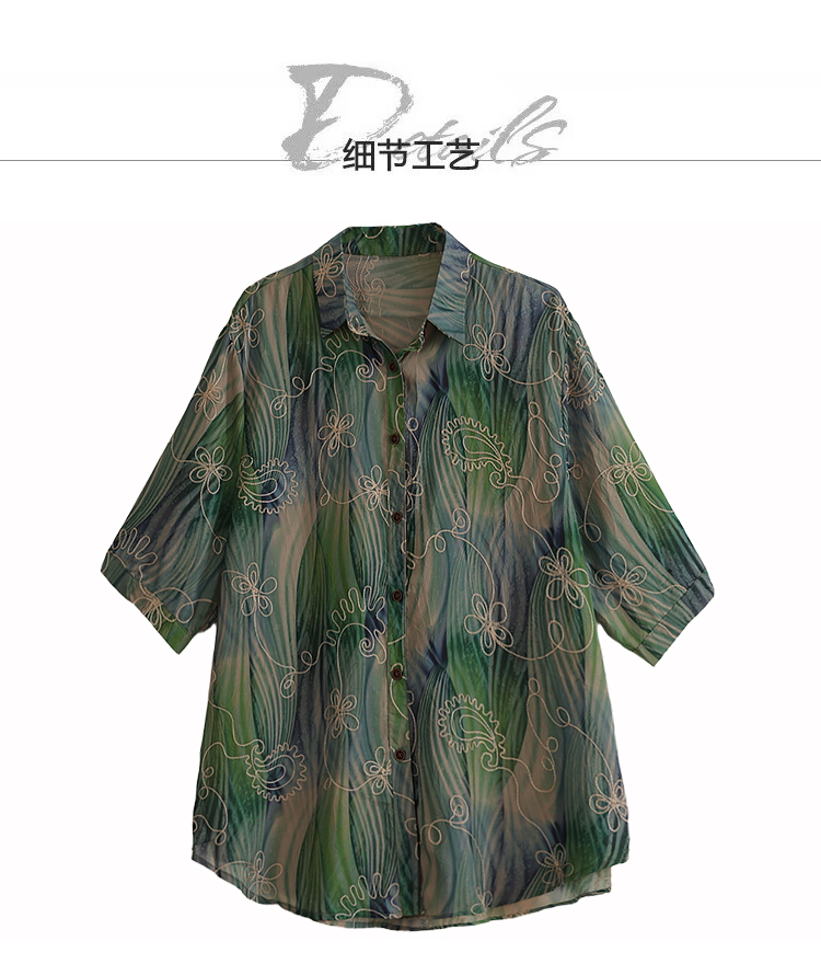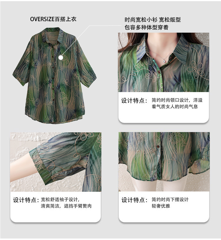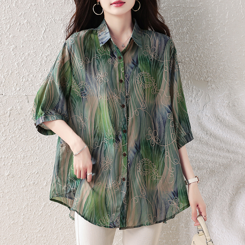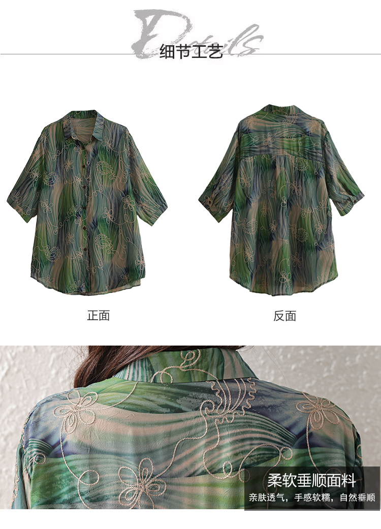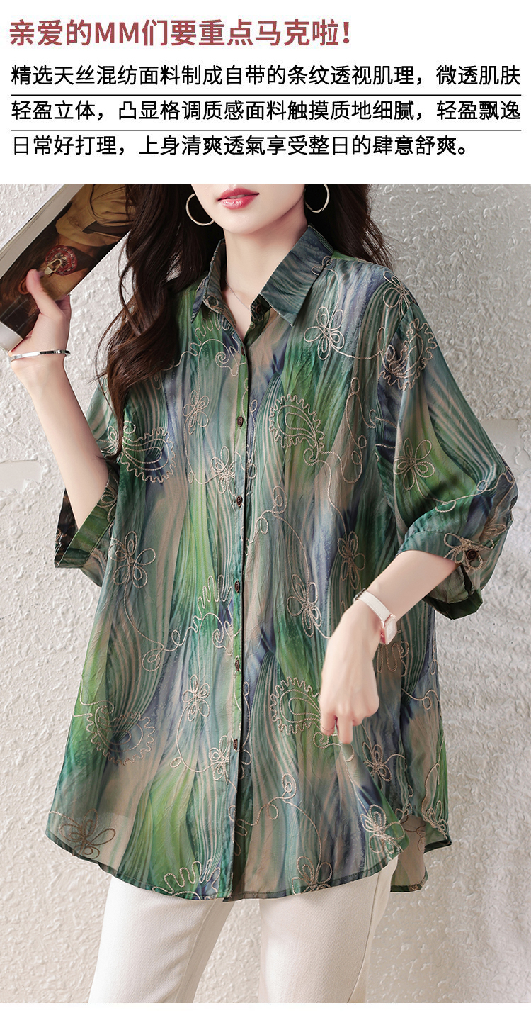 RY4097# 2026 夏季新款大码刺绣腰果花衬衫女胖 mm 遮肉显瘦中袖上衣
