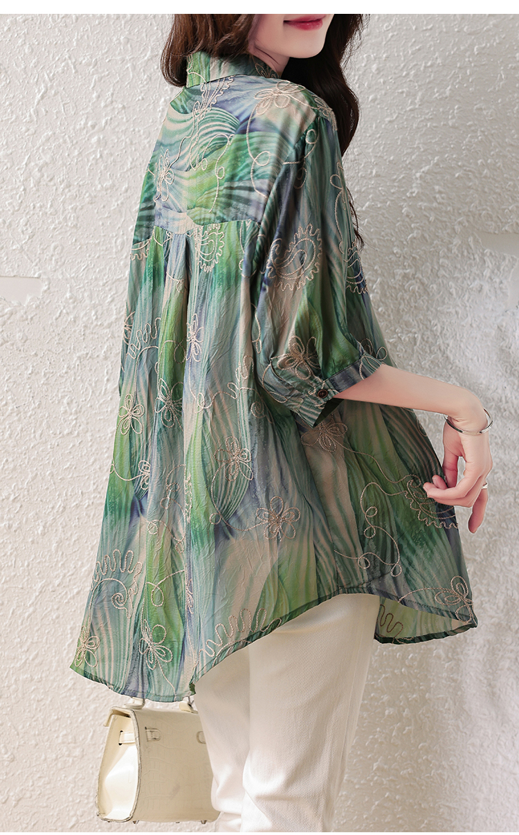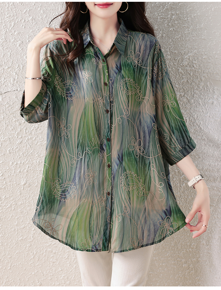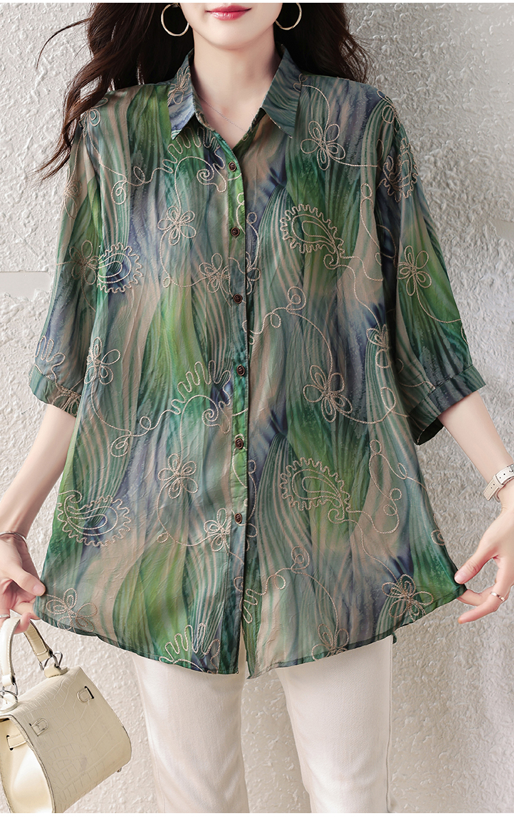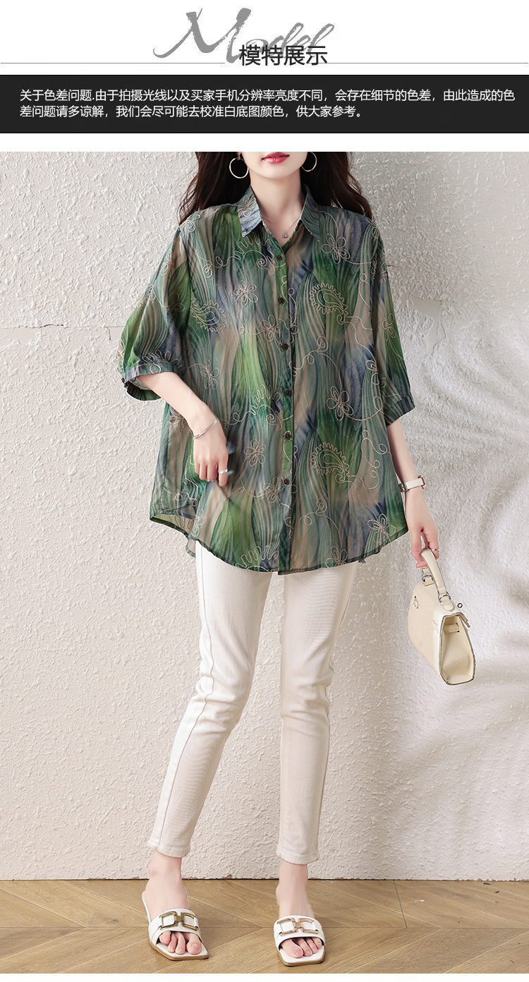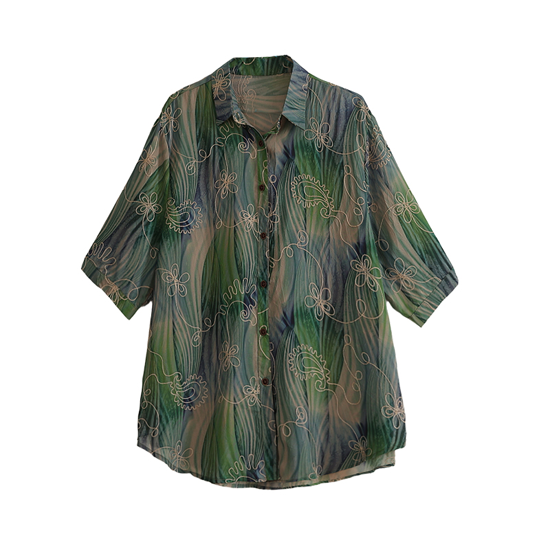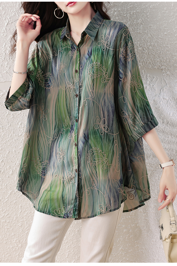 RY4097# 2026 夏季新款大码刺绣腰果花衬衫女胖 mm 遮肉显瘦中袖上衣
