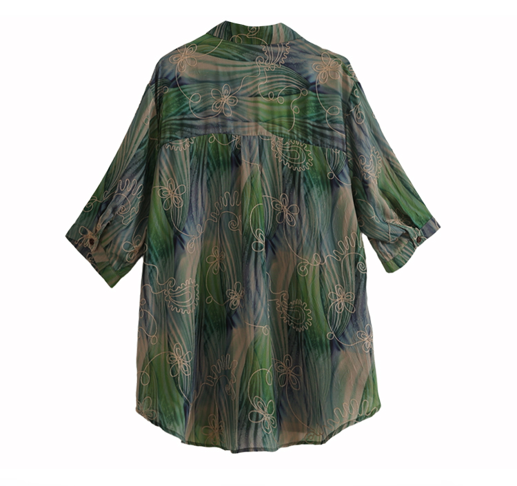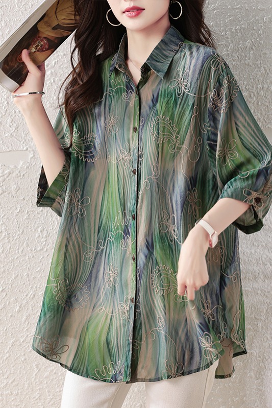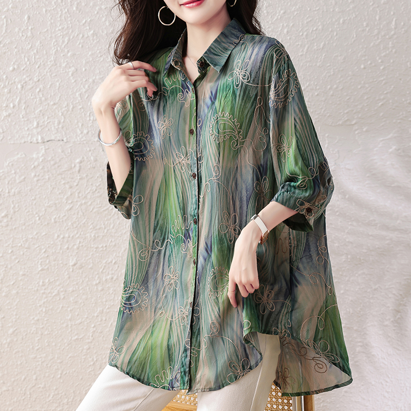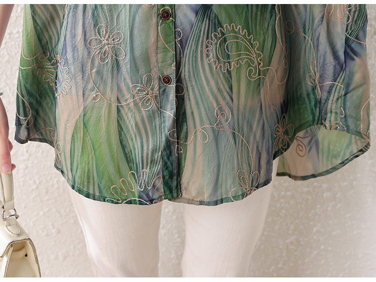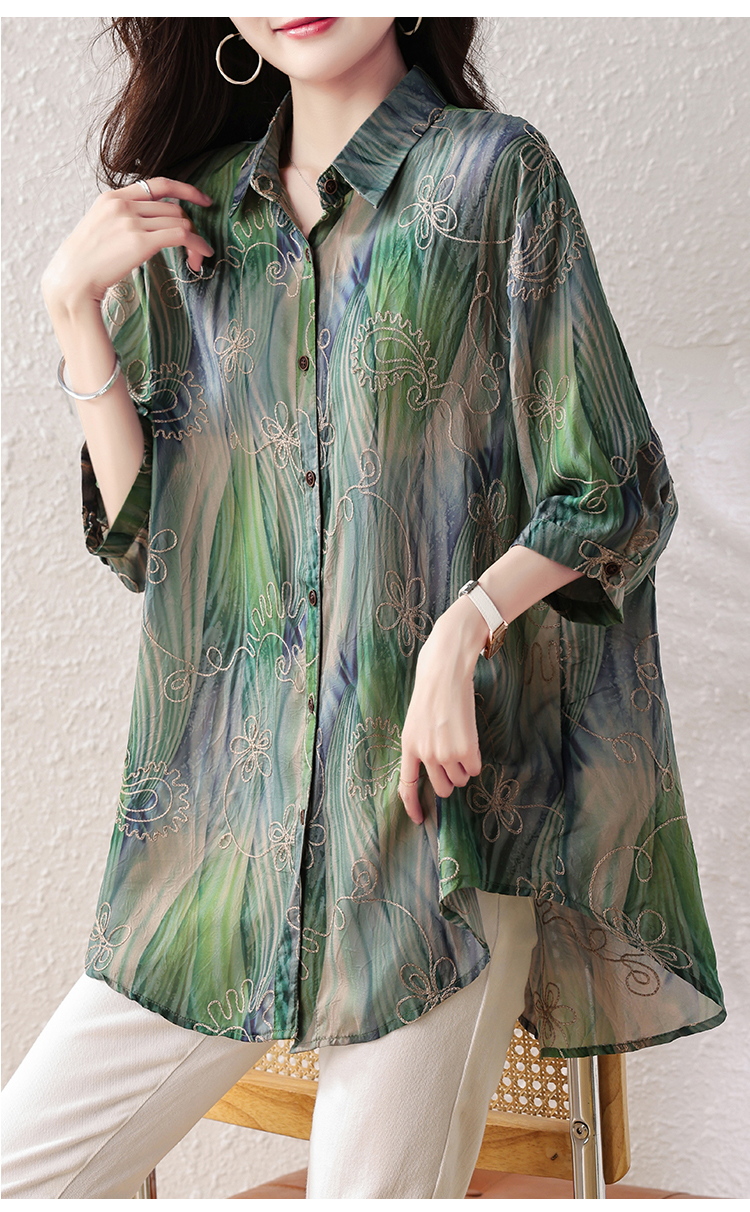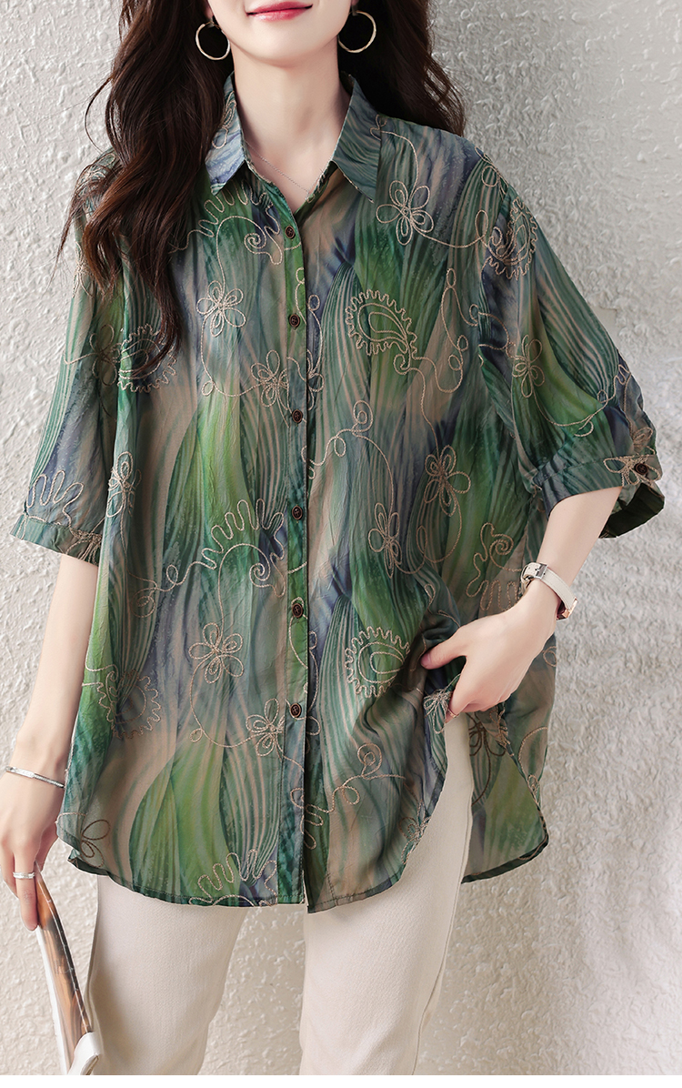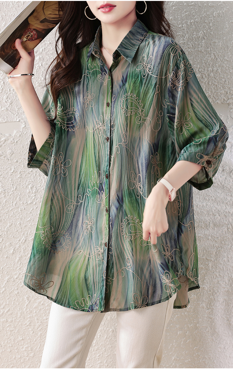 RY4097# 2026 夏季新款大码刺绣腰果花衬衫女胖 mm 遮肉显瘦中袖上衣