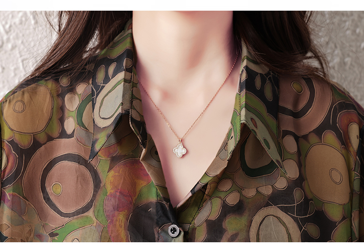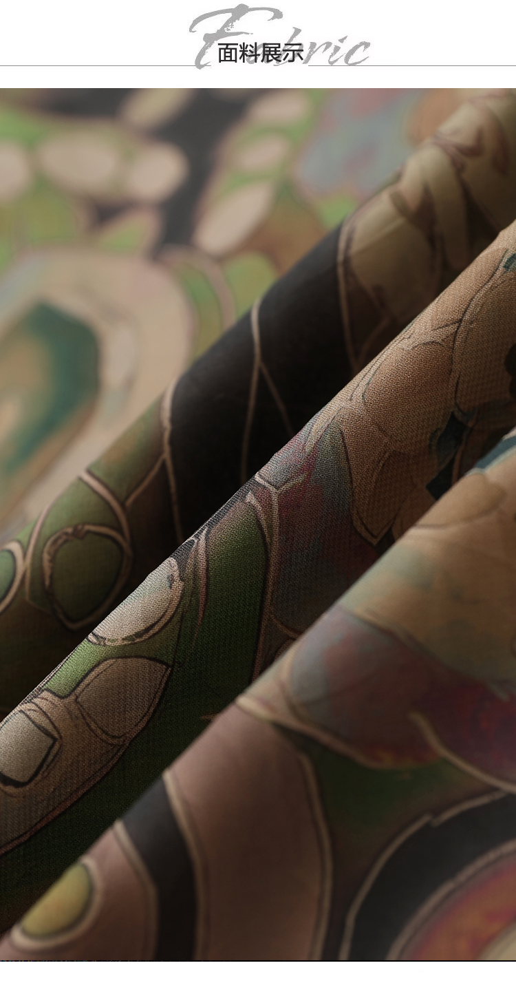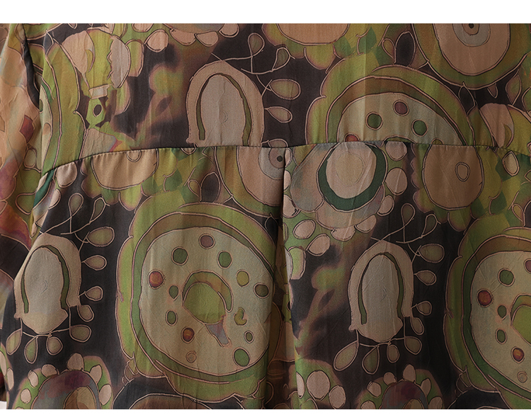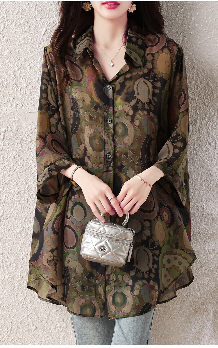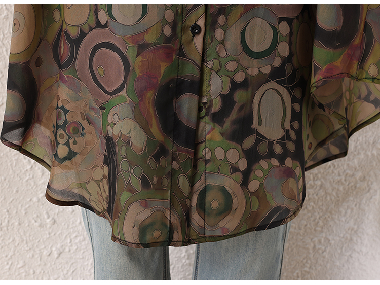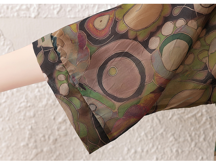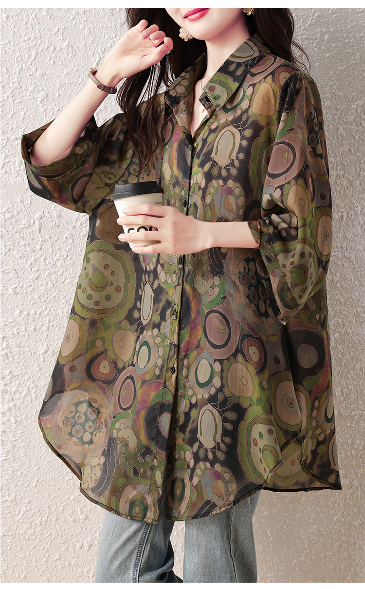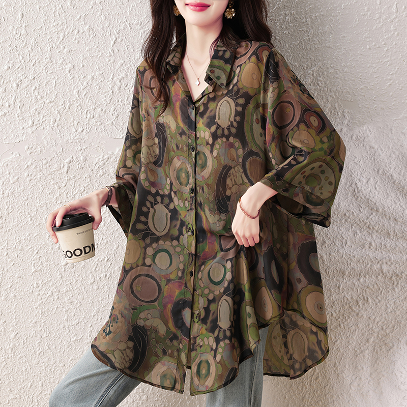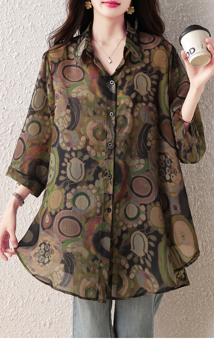 RY4102# 2026夏季新款大码雪纺衬衫女复古印花宽松遮肉显瘦中袖上衣