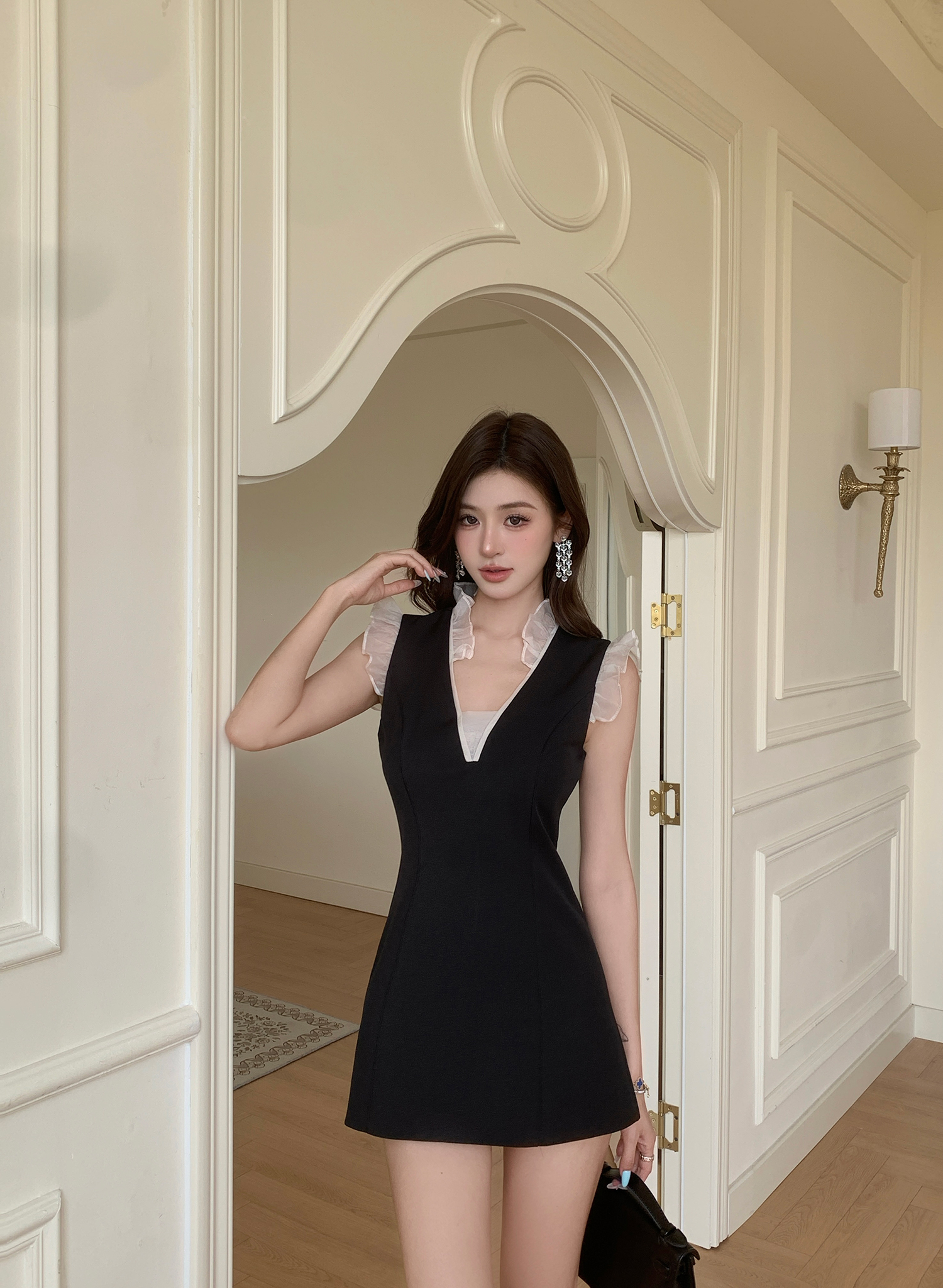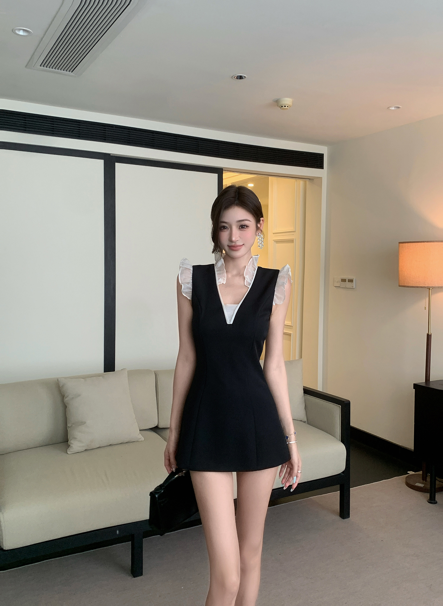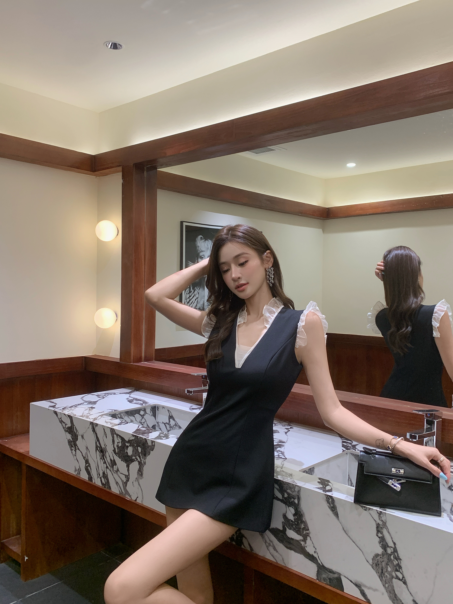 RY4129# 2026设计感小众时尚纯欲高级感休闲百搭超好看花边连衣裙显瘦短裙