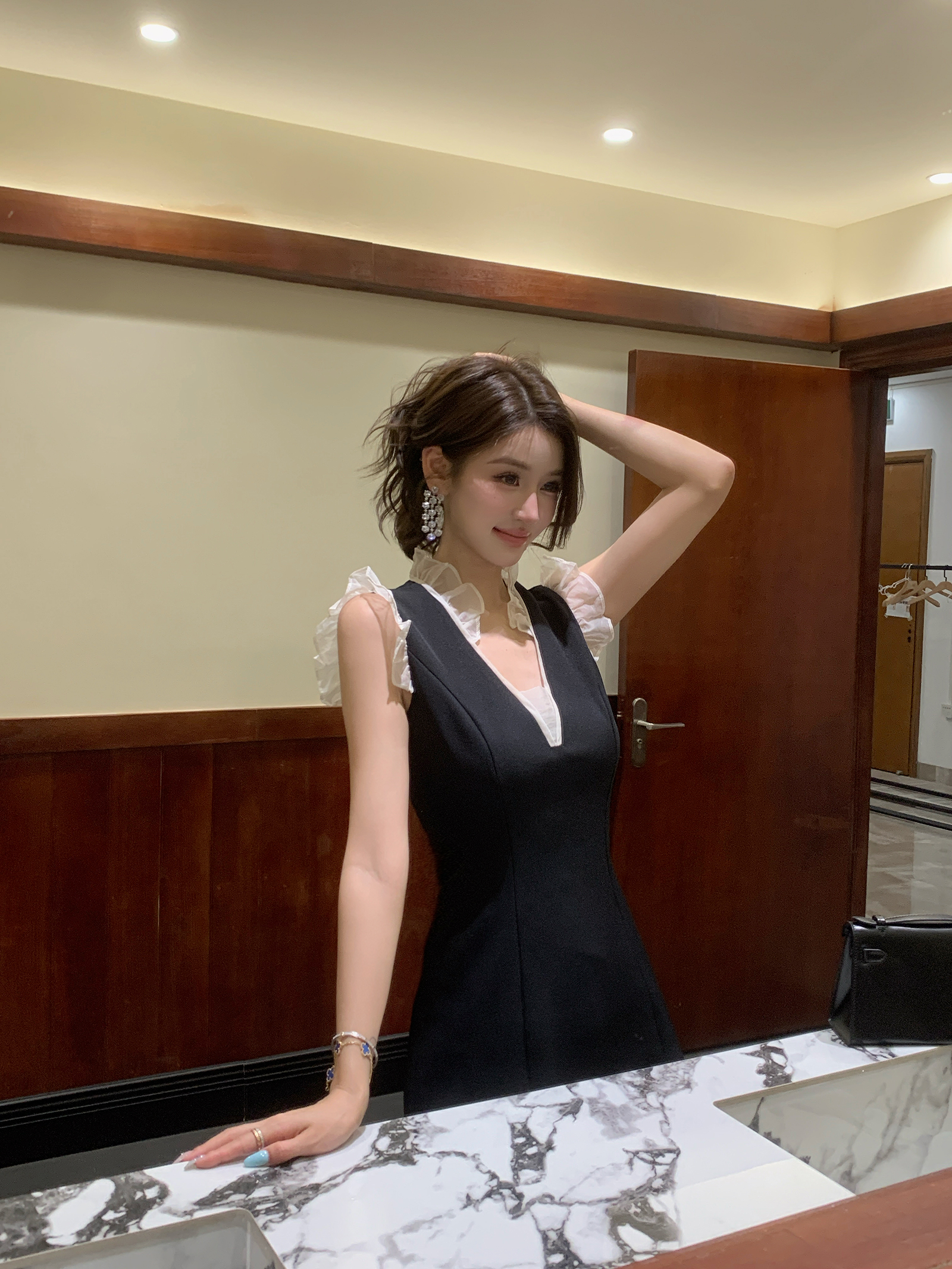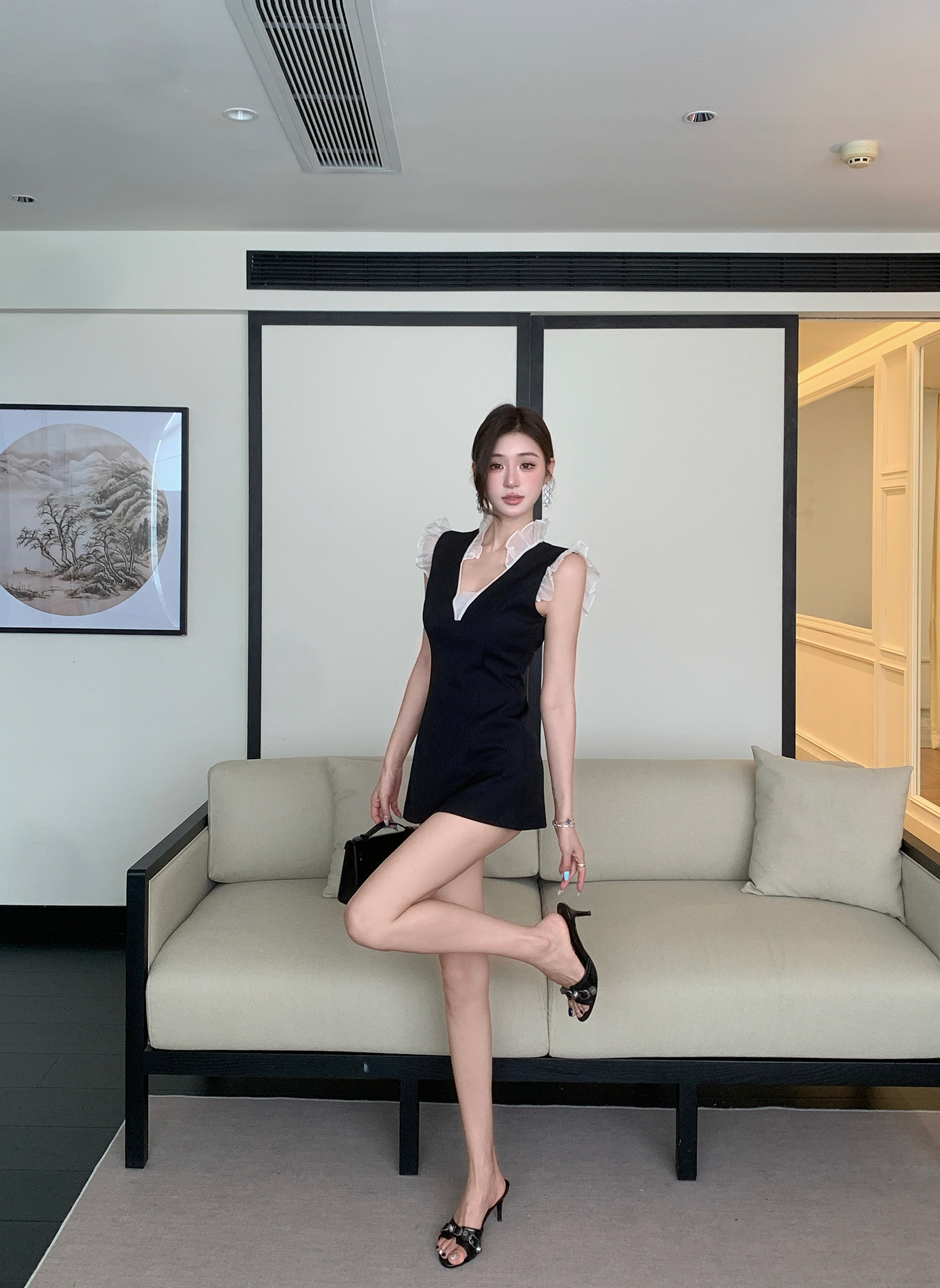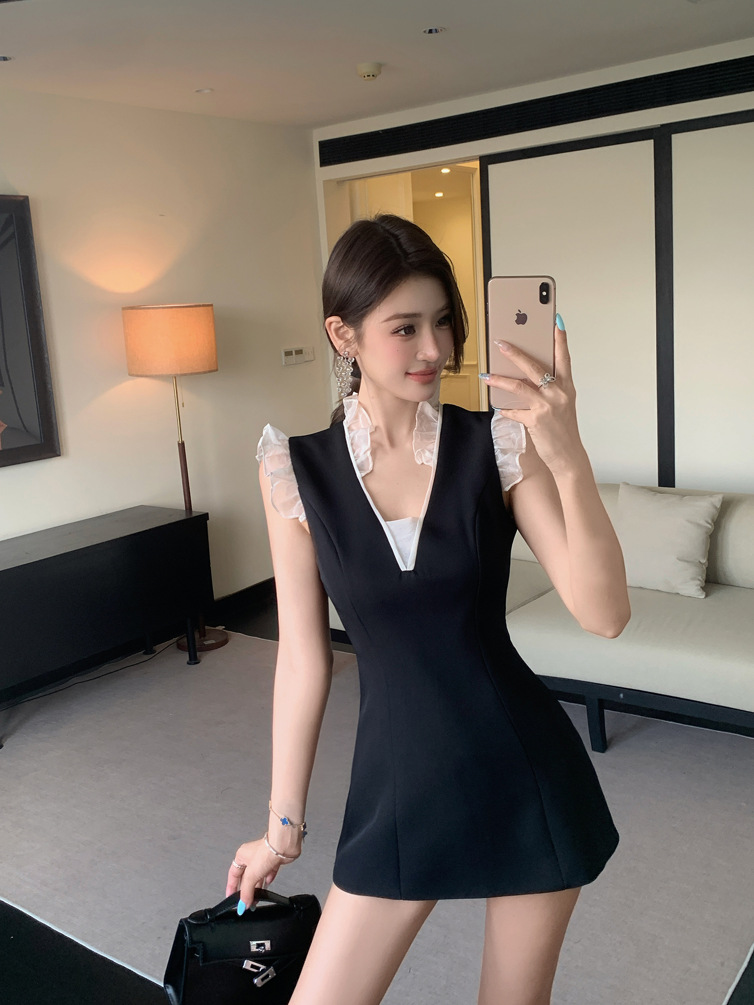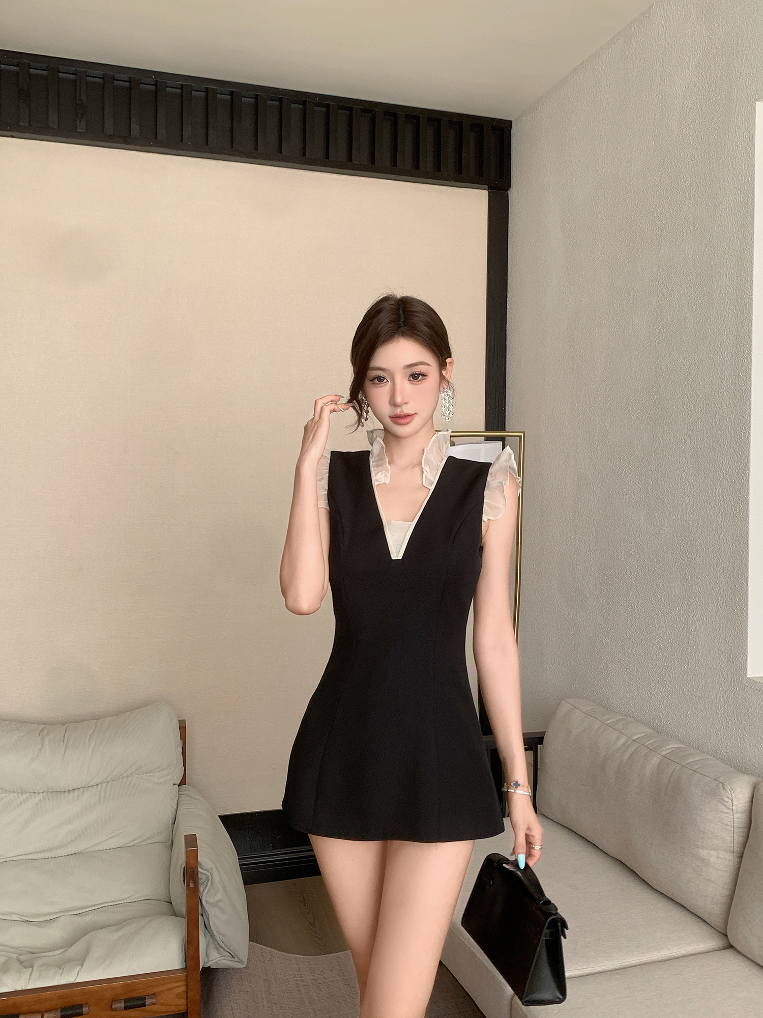 RY4129# 2026设计感小众时尚纯欲高级感休闲百搭超好看花边连衣裙显瘦短裙