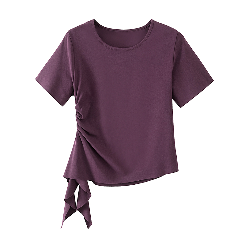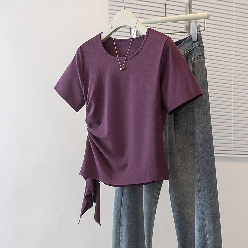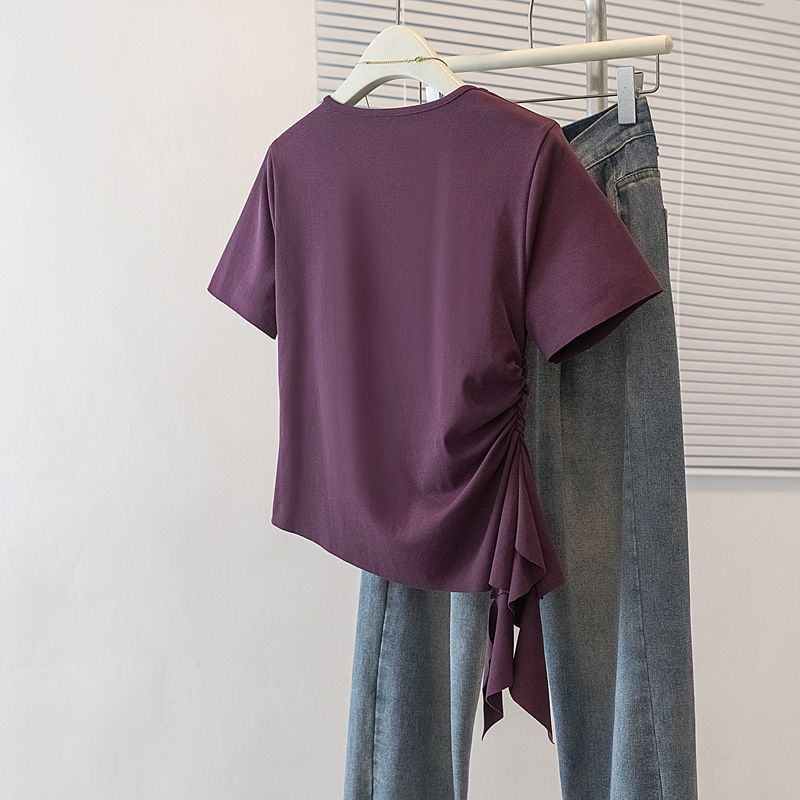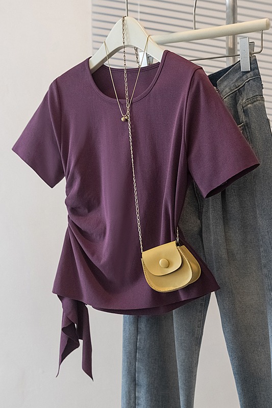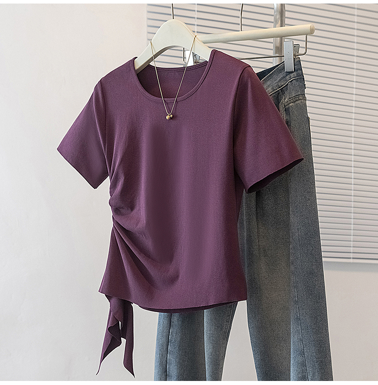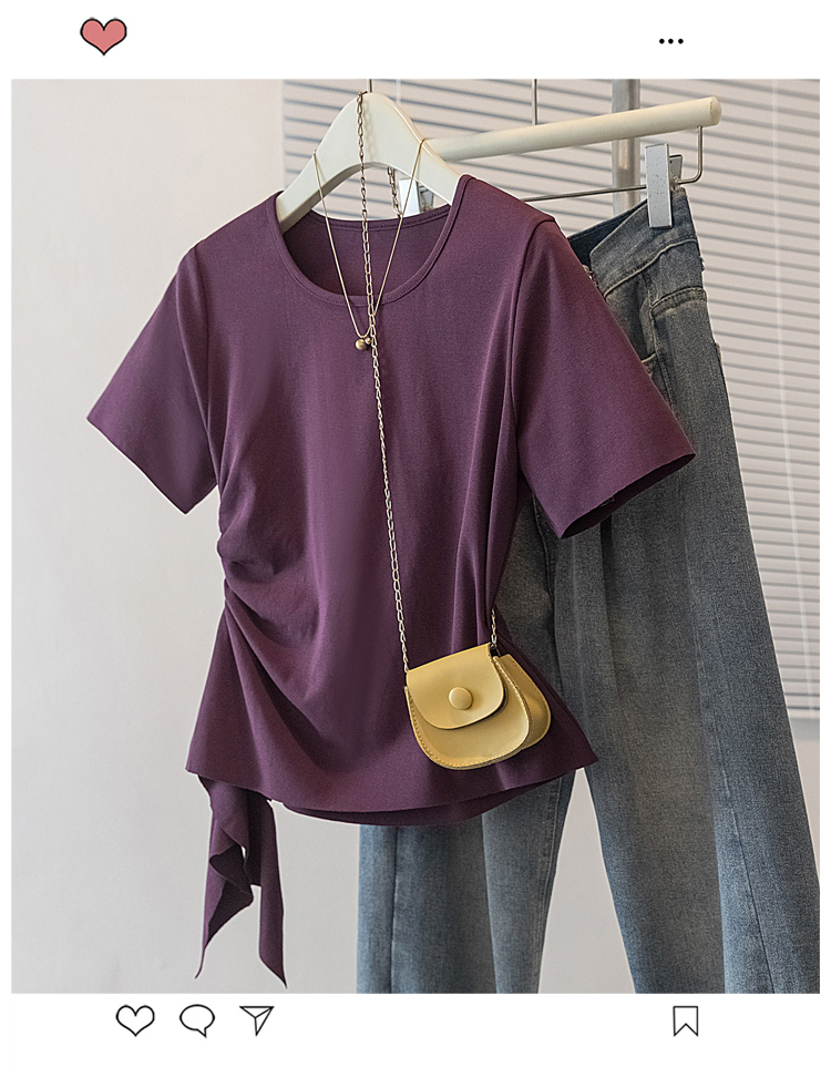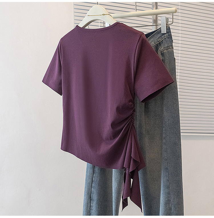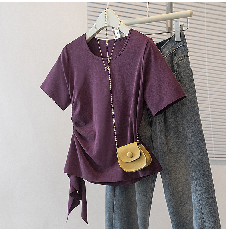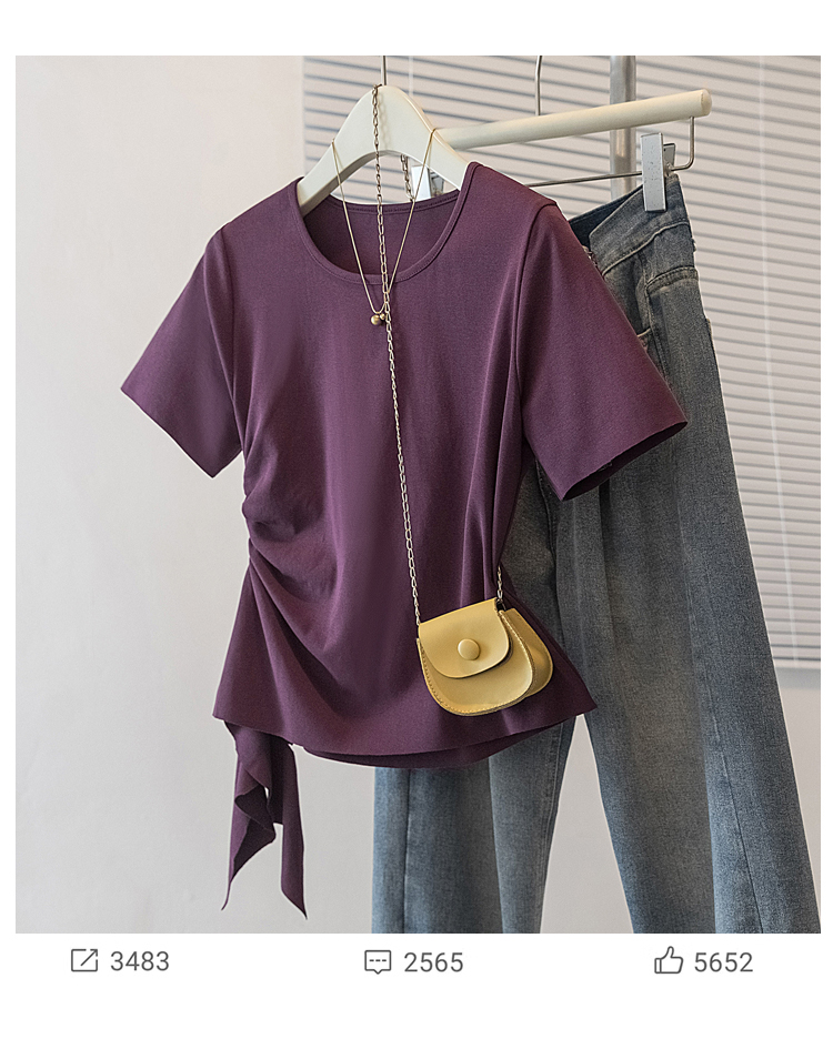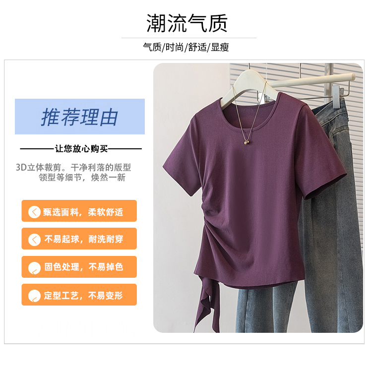 RY4132# 实拍大码短袖T恤夏季新款不规则掐腰显瘦小众设计感修身气质上衣