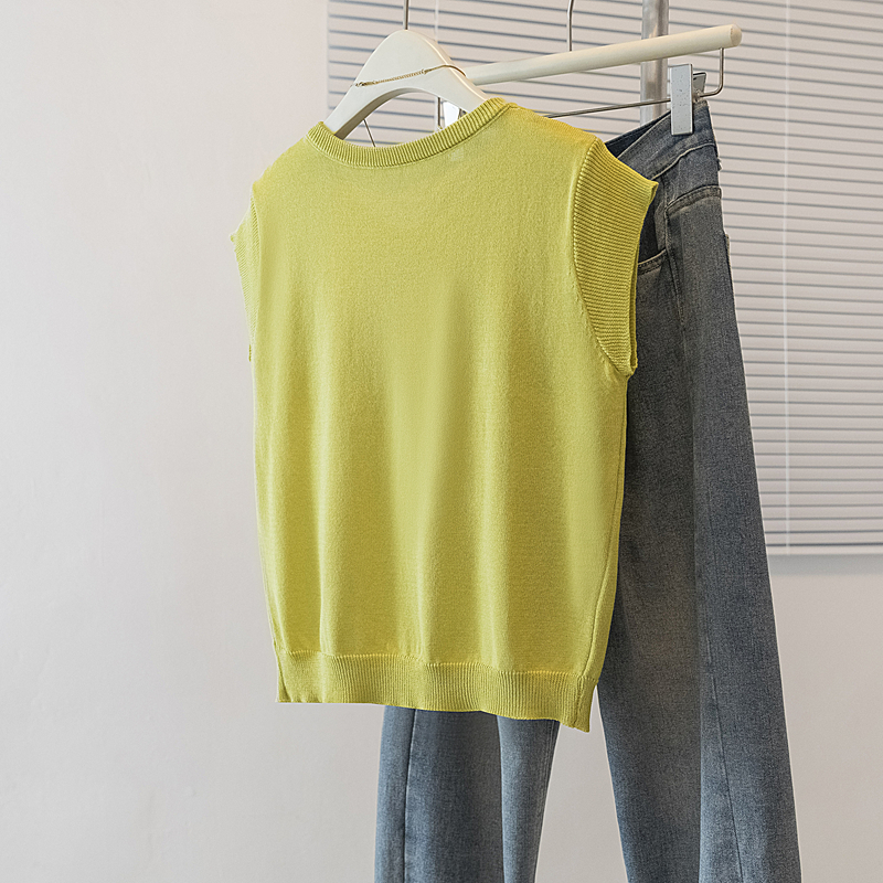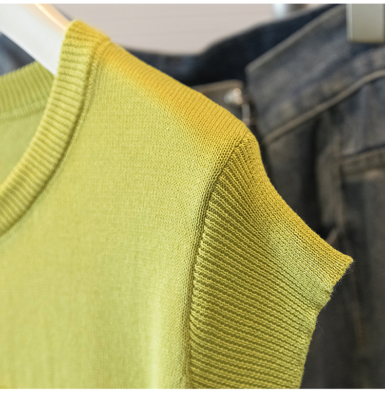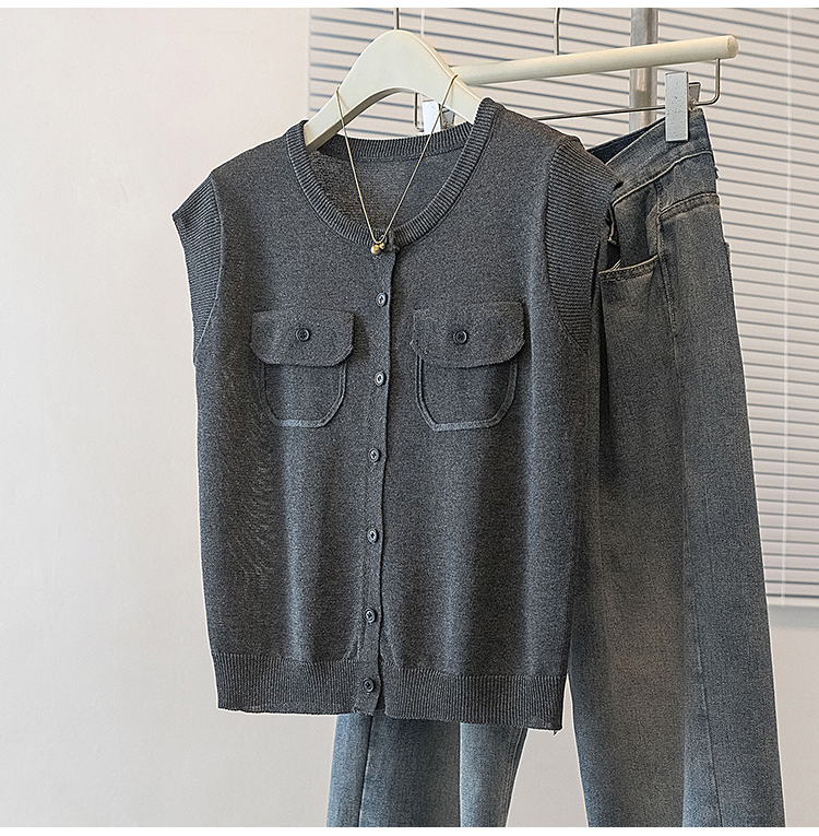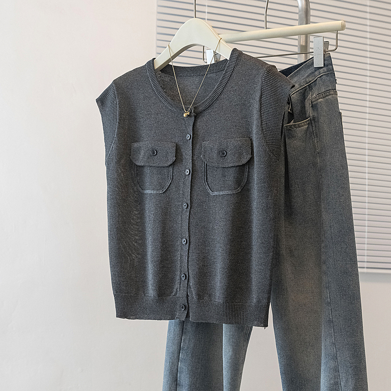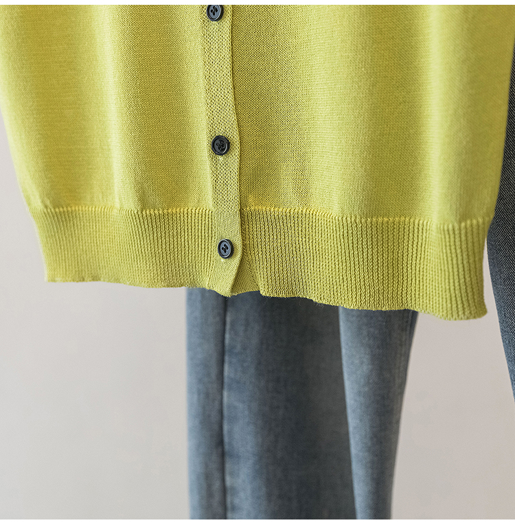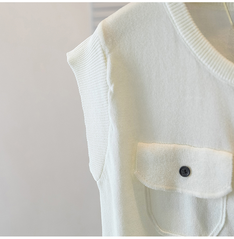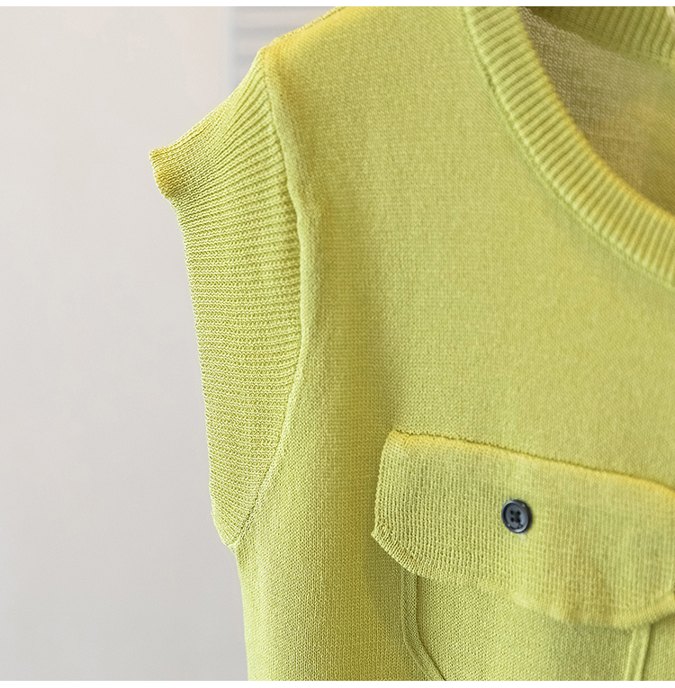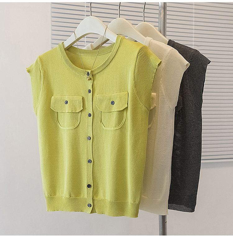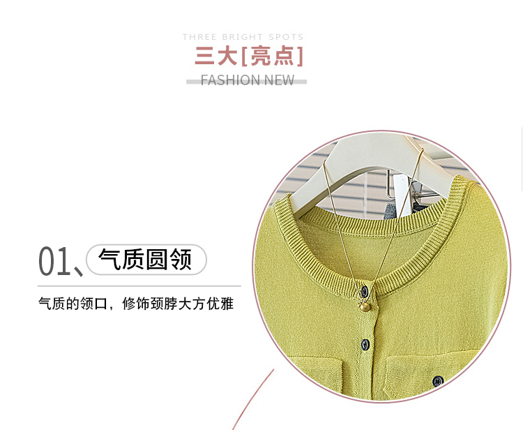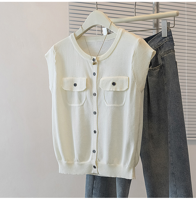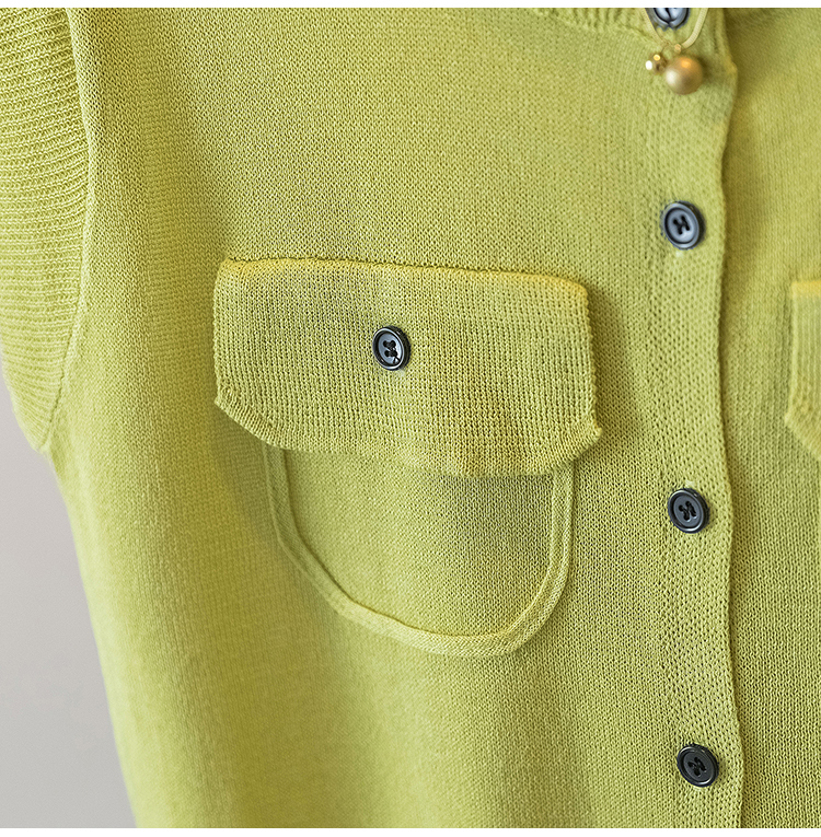 RY4133# 实拍大码短袖T恤韩系百搭小飞袖少女感圆领排扣双口袋针织开衫潮