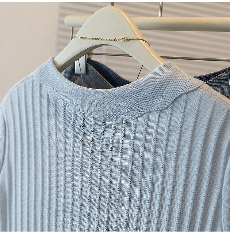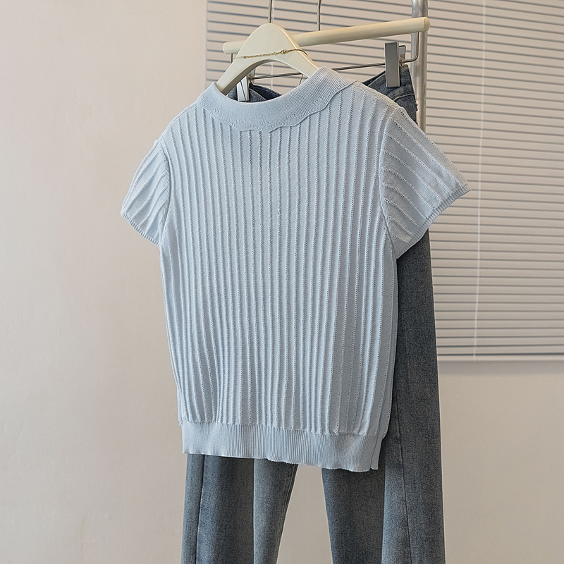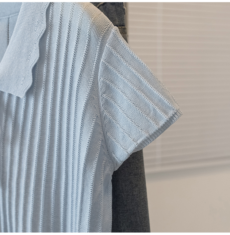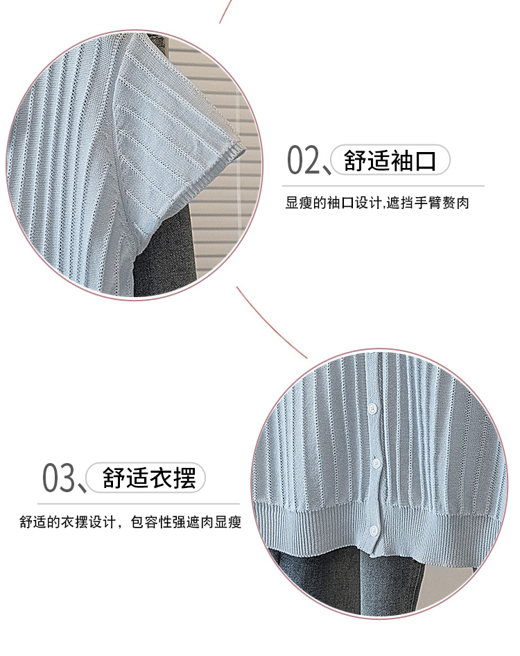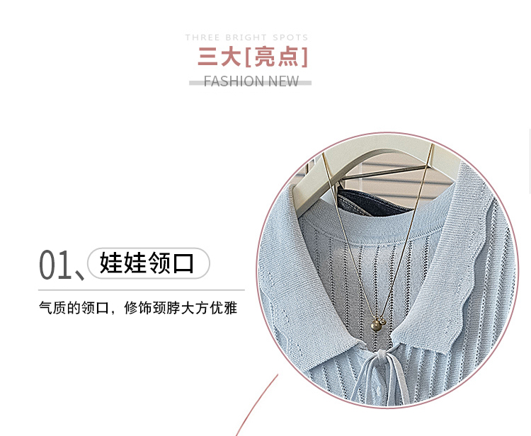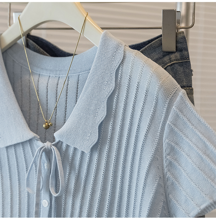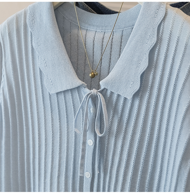 首页 > 女装批发-夏款 > 上衣 > RY4135# 实拍大码针织开衫短袖女26年夏季韩系花边翻领系带甜美单排扣上衣