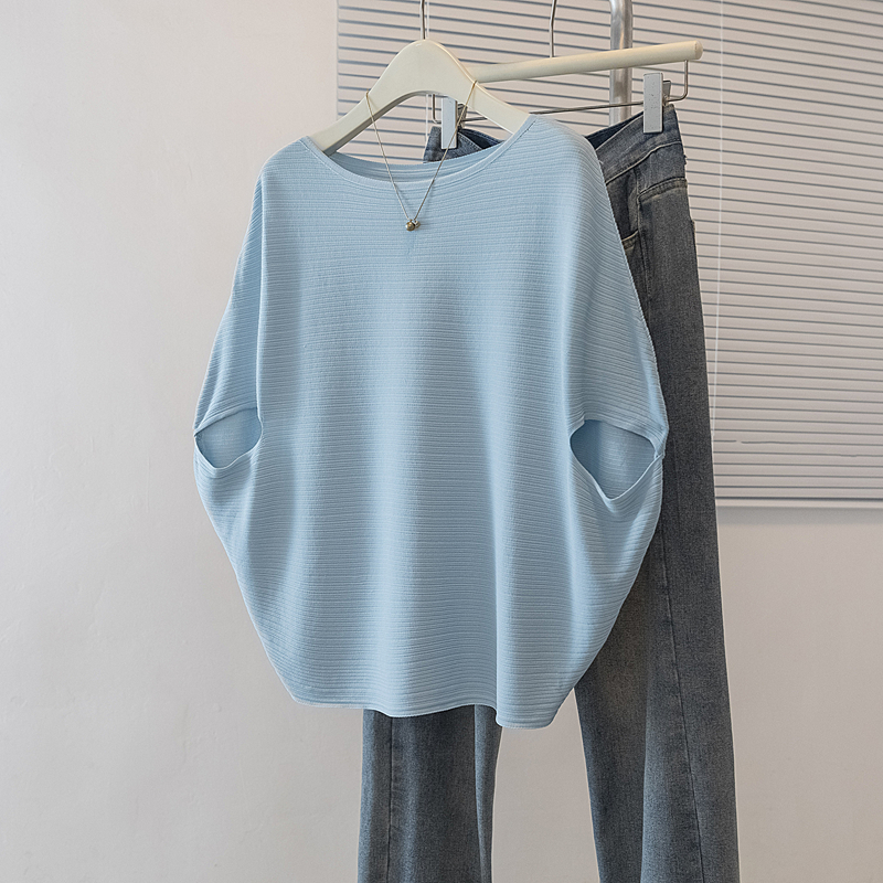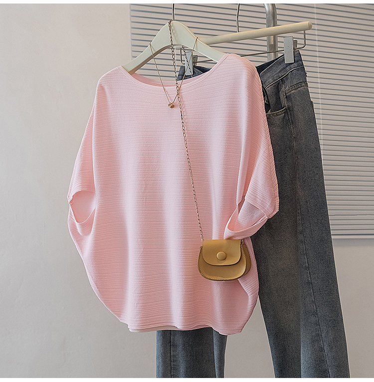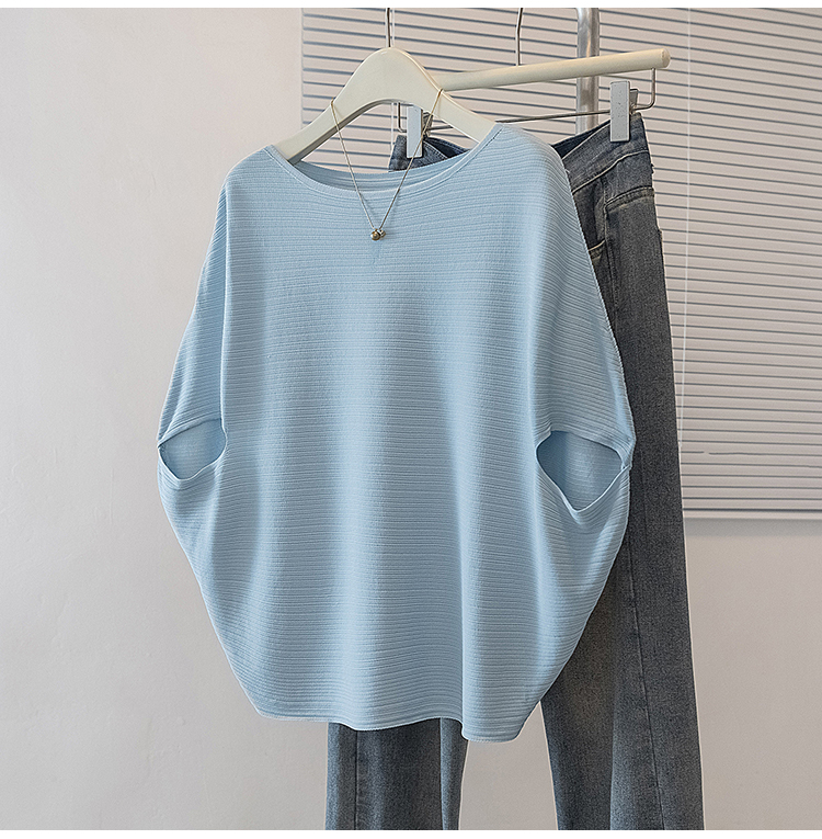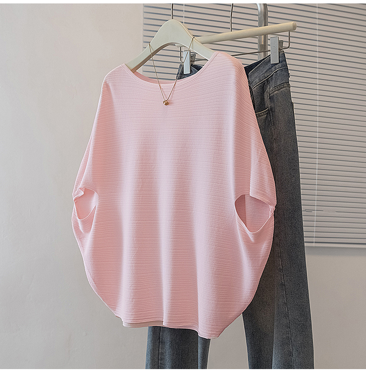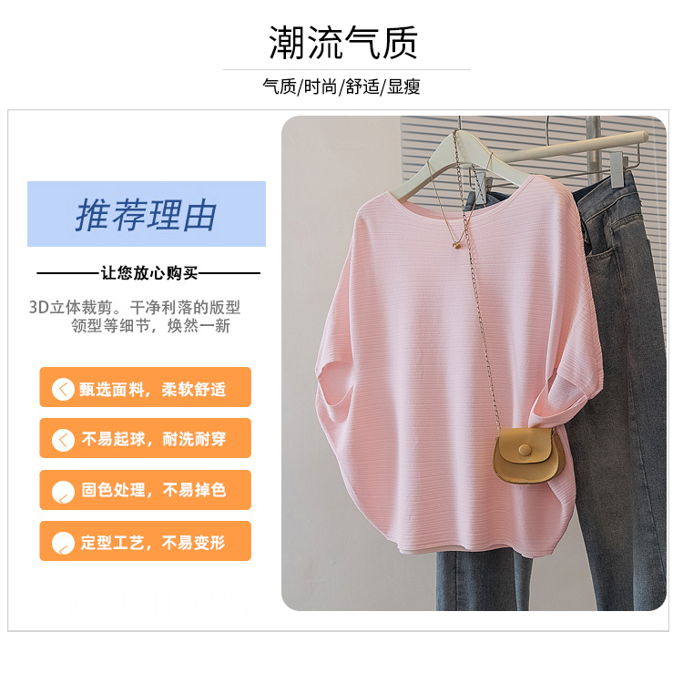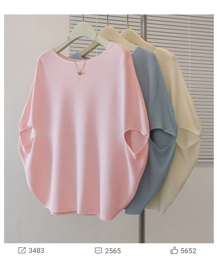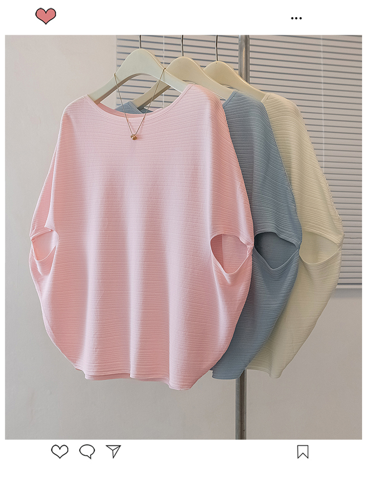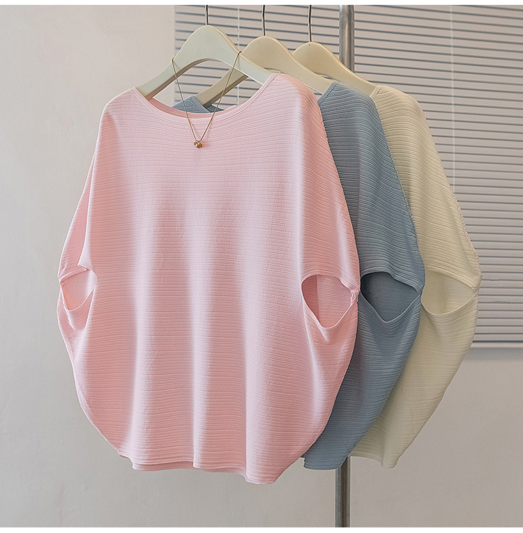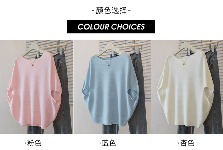 RY4136# 实拍大码正肩T恤女2026年夏季新款胖mm浅蓝色蝙蝠袖百搭显瘦上衣