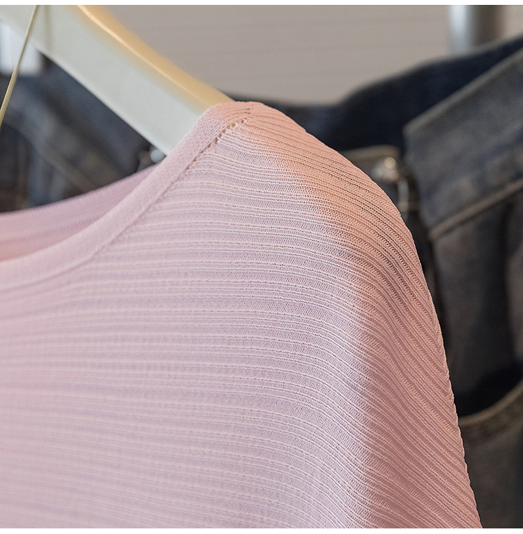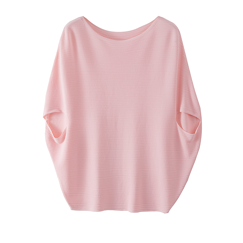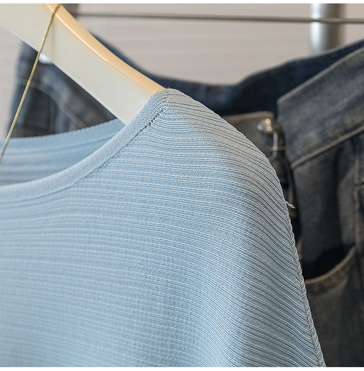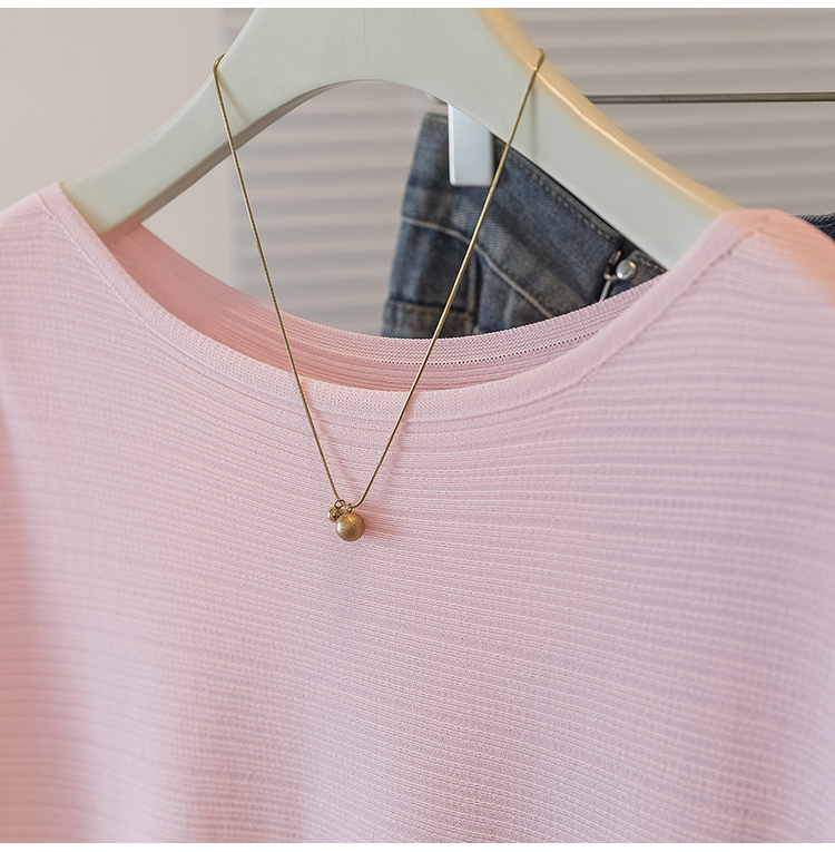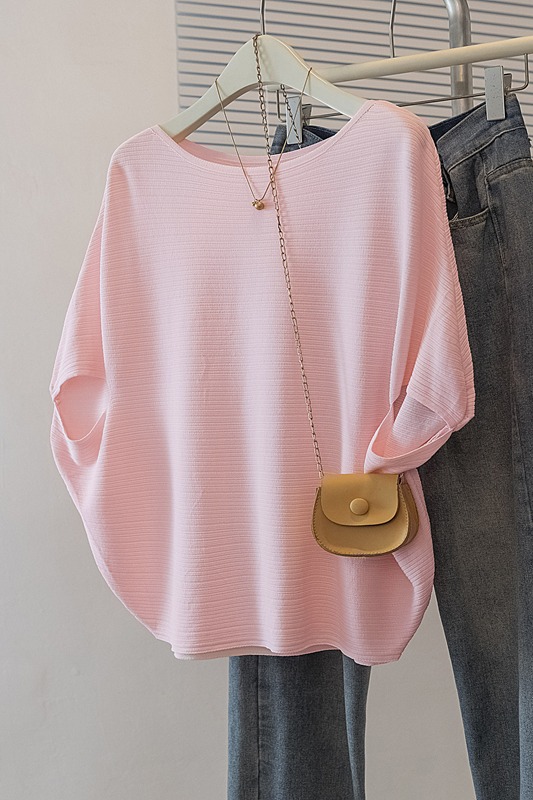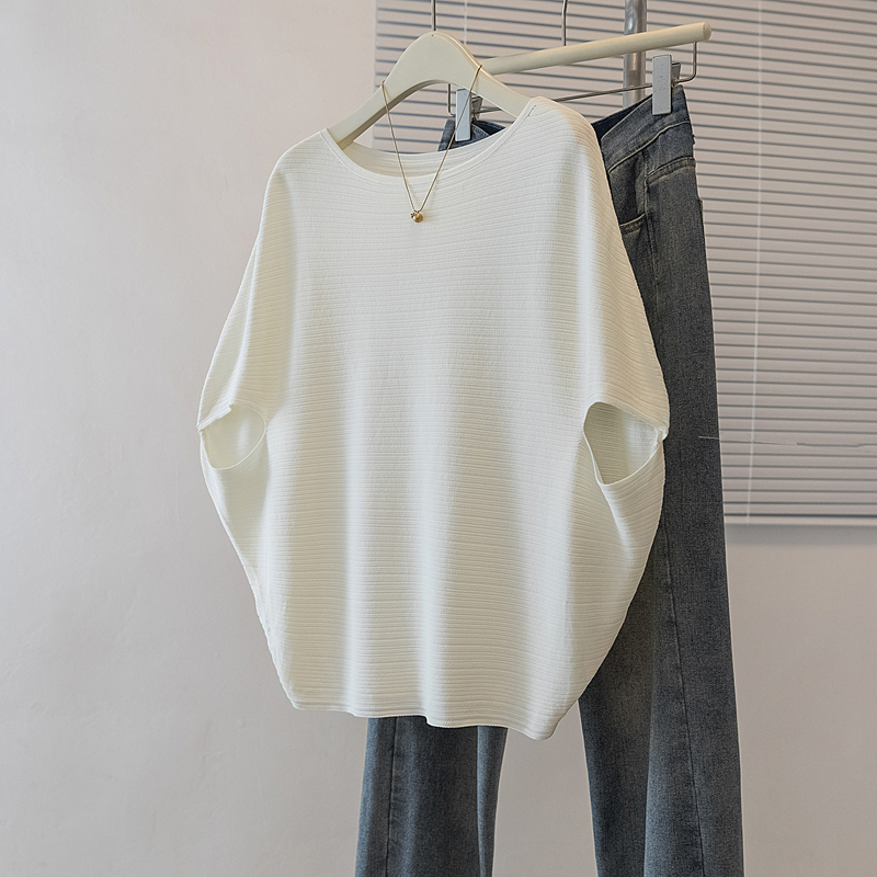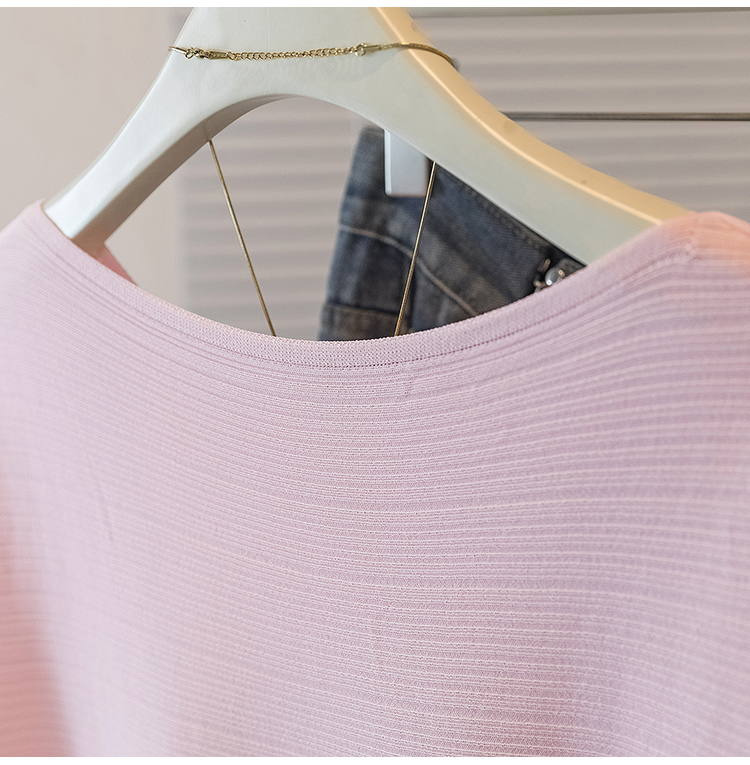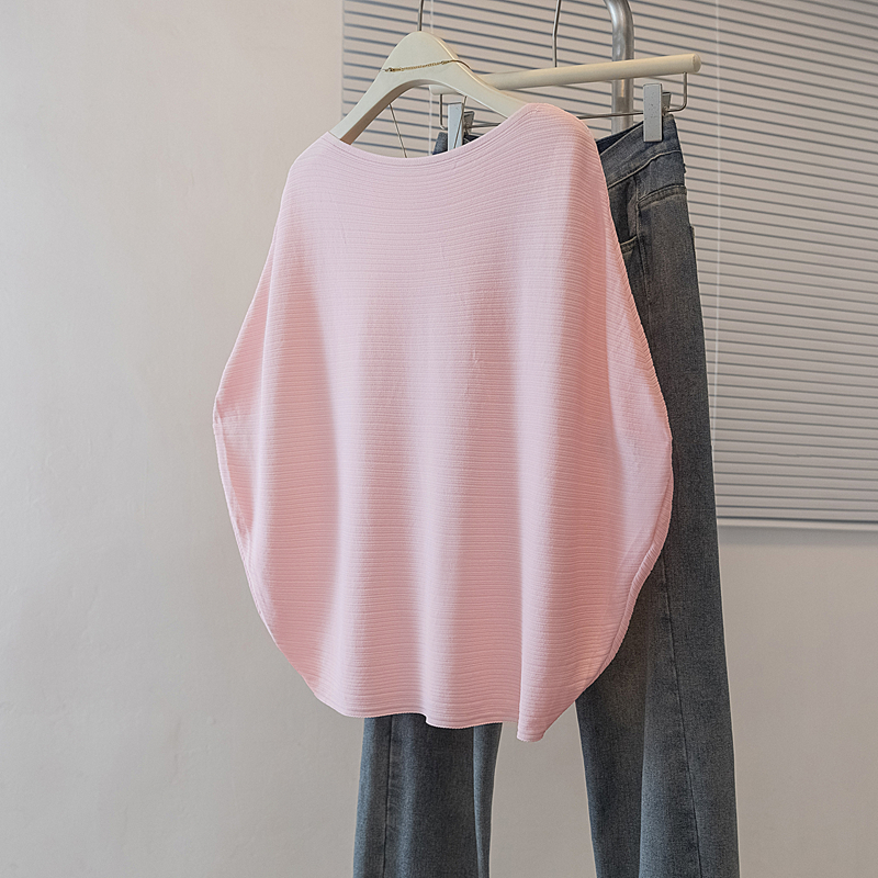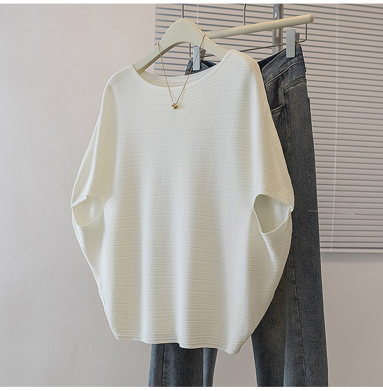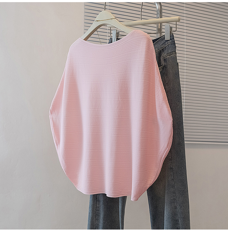 RY4136# 实拍大码正肩T恤女2026年夏季新款胖mm浅蓝色蝙蝠袖百搭显瘦上衣