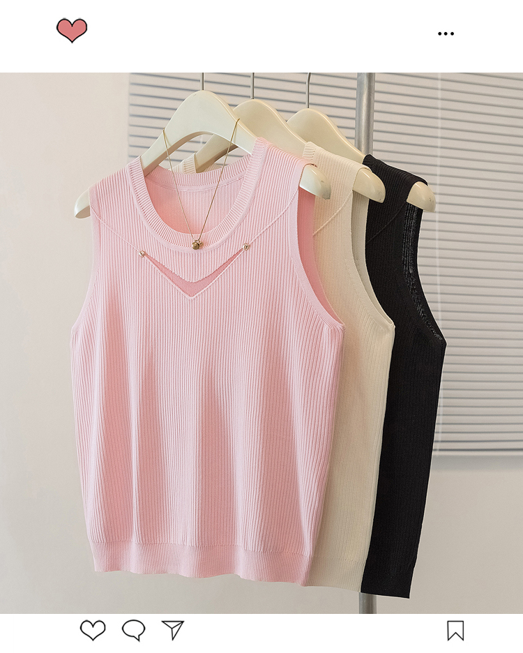 RY4142# 实拍大码针织背心女2026年夏季新款气质显瘦吊带外穿内搭无袖上衣