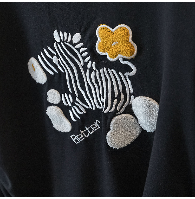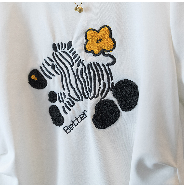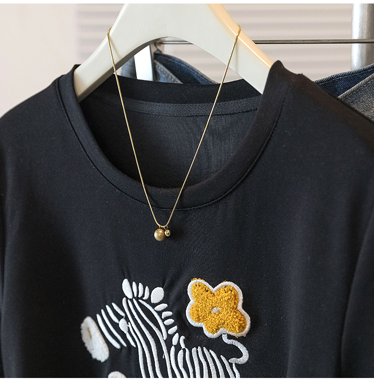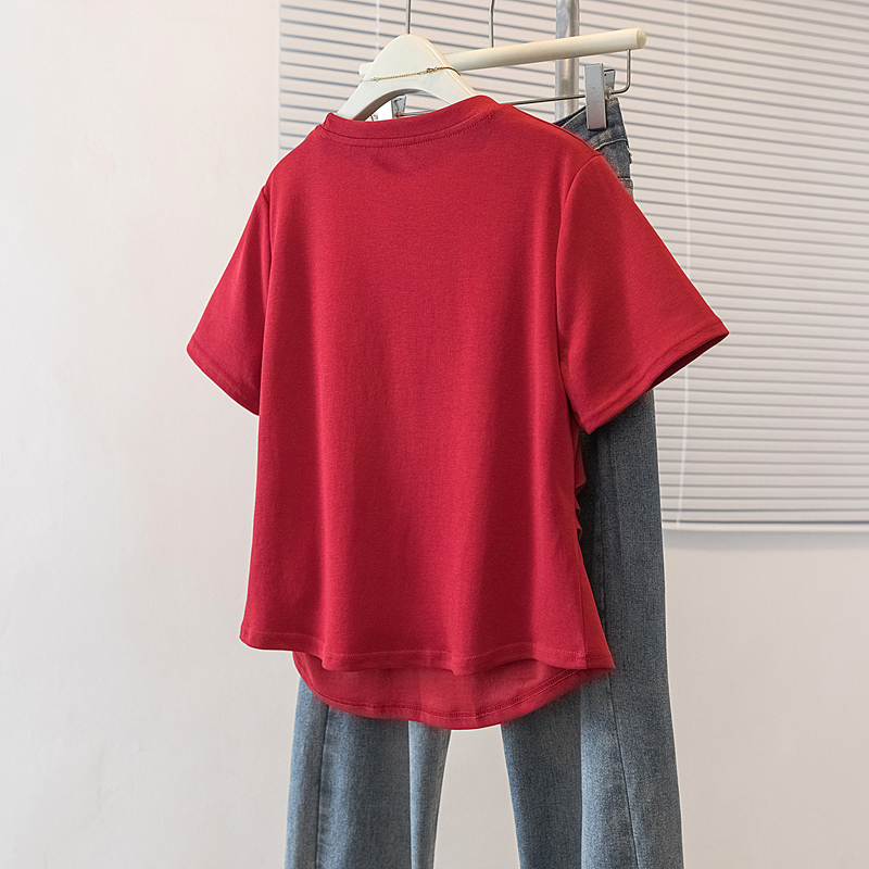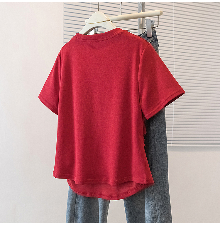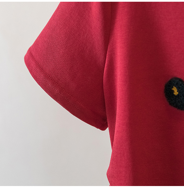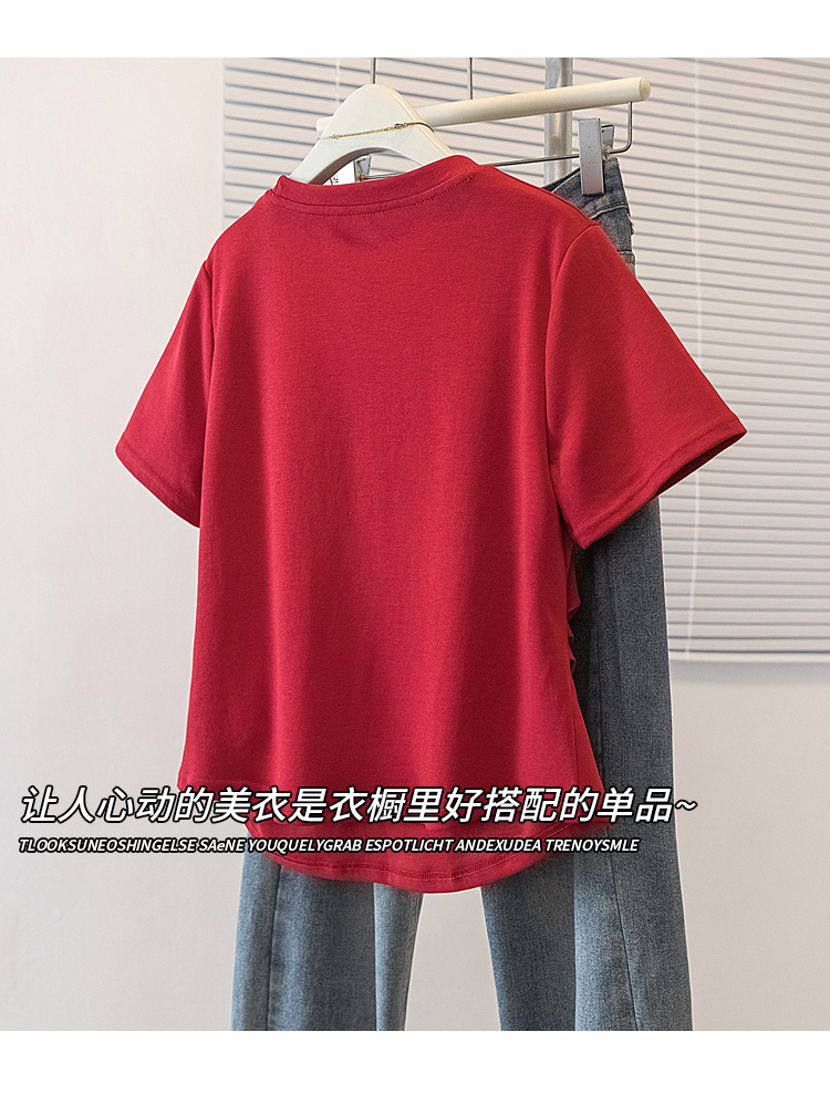 RY4144# 实拍大码女装刺绣斑马短袖T恤女2026夏季新款褶皱减龄百搭上衣潮