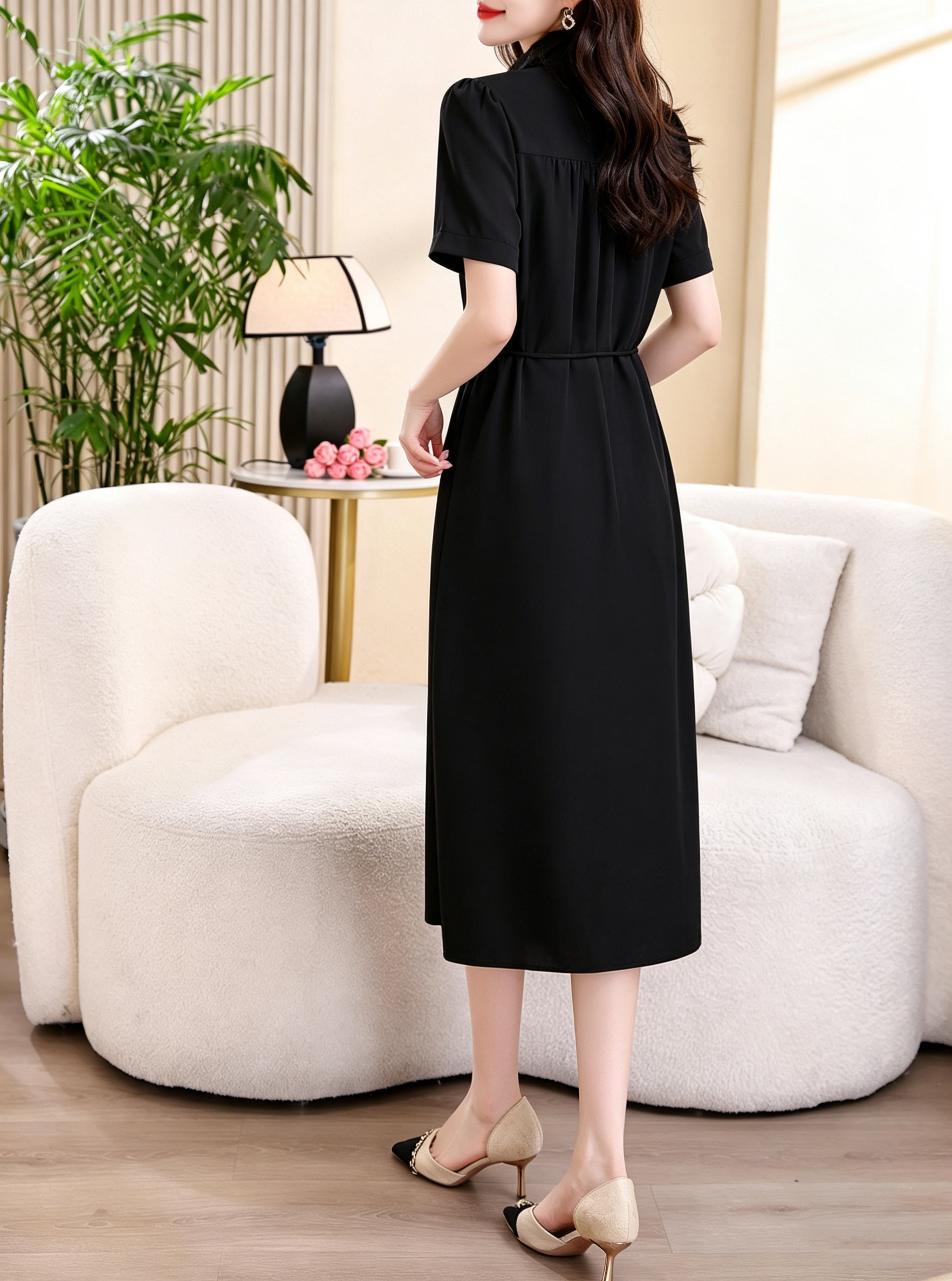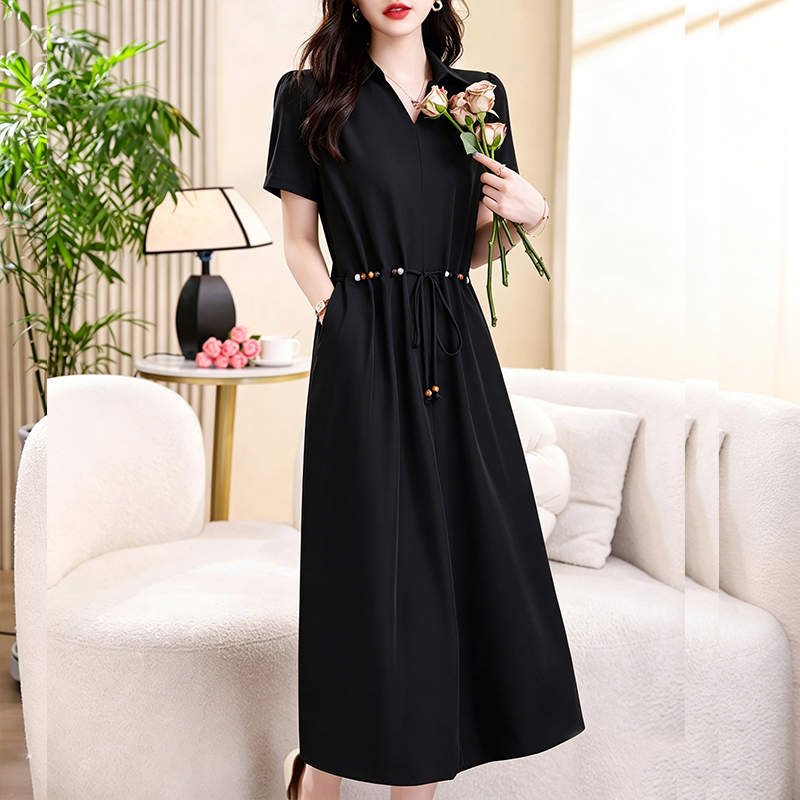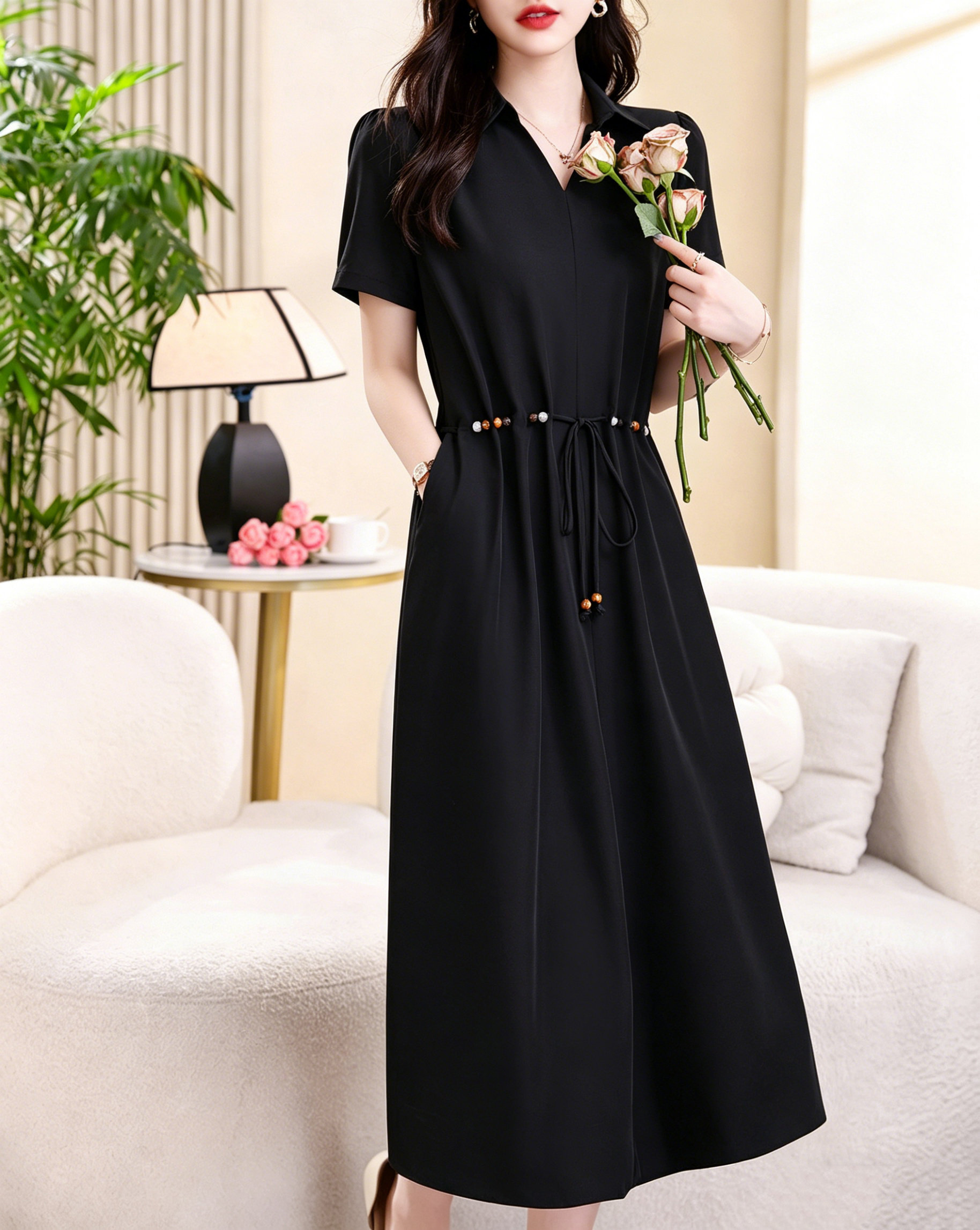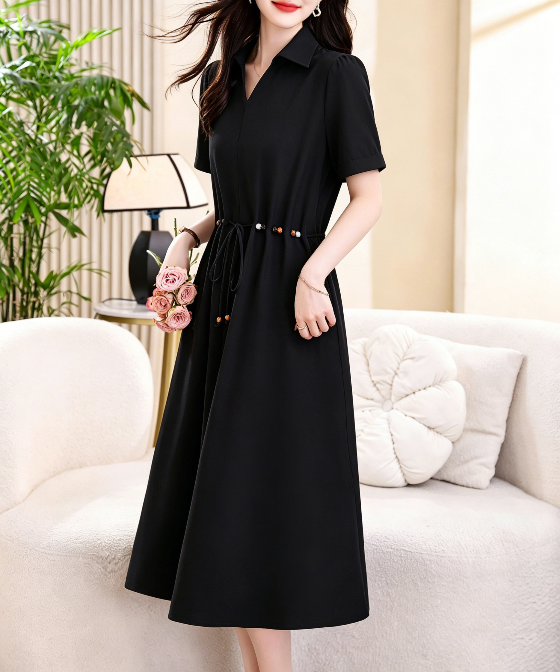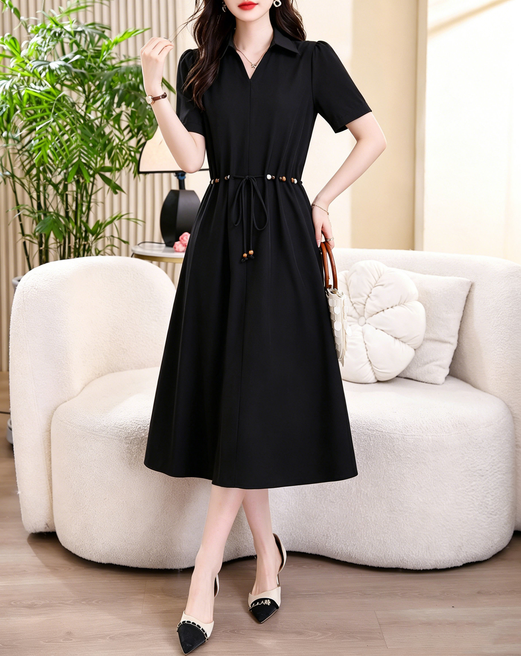 RY4159# 实拍2026夏季新款单层不透有拼接减龄透气V领花边系带短袖连衣裙