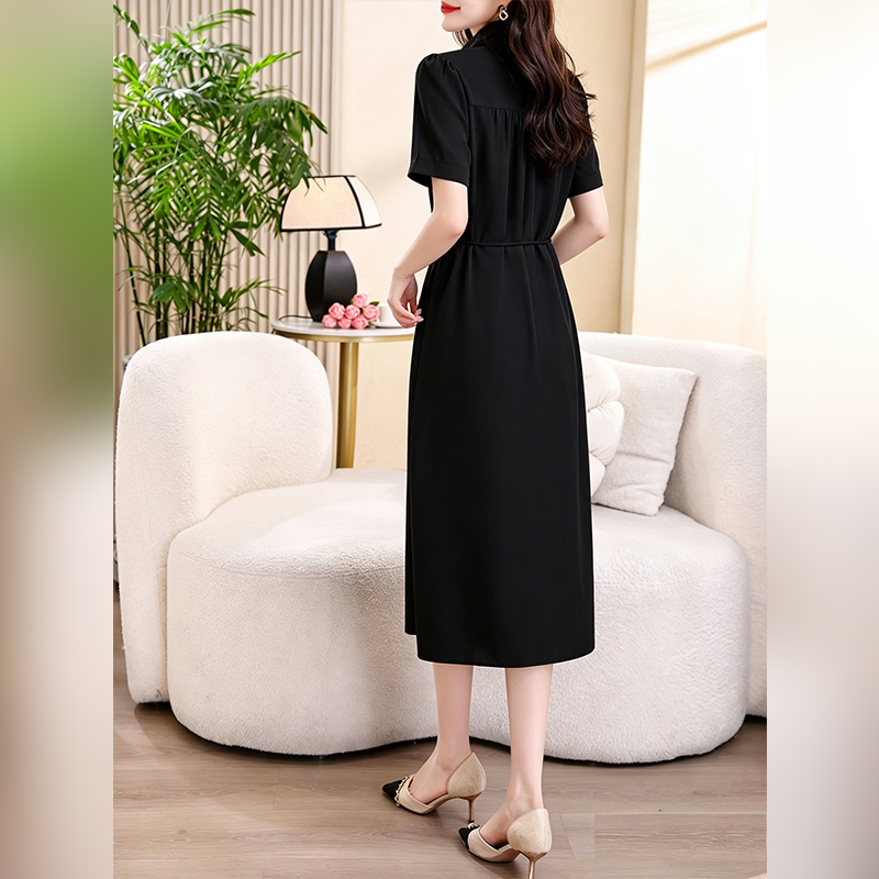 RY4156# 实拍温柔风褶皱雪纺连衣裙女夏季新款圆领泡泡袖宽松显瘦A字短...