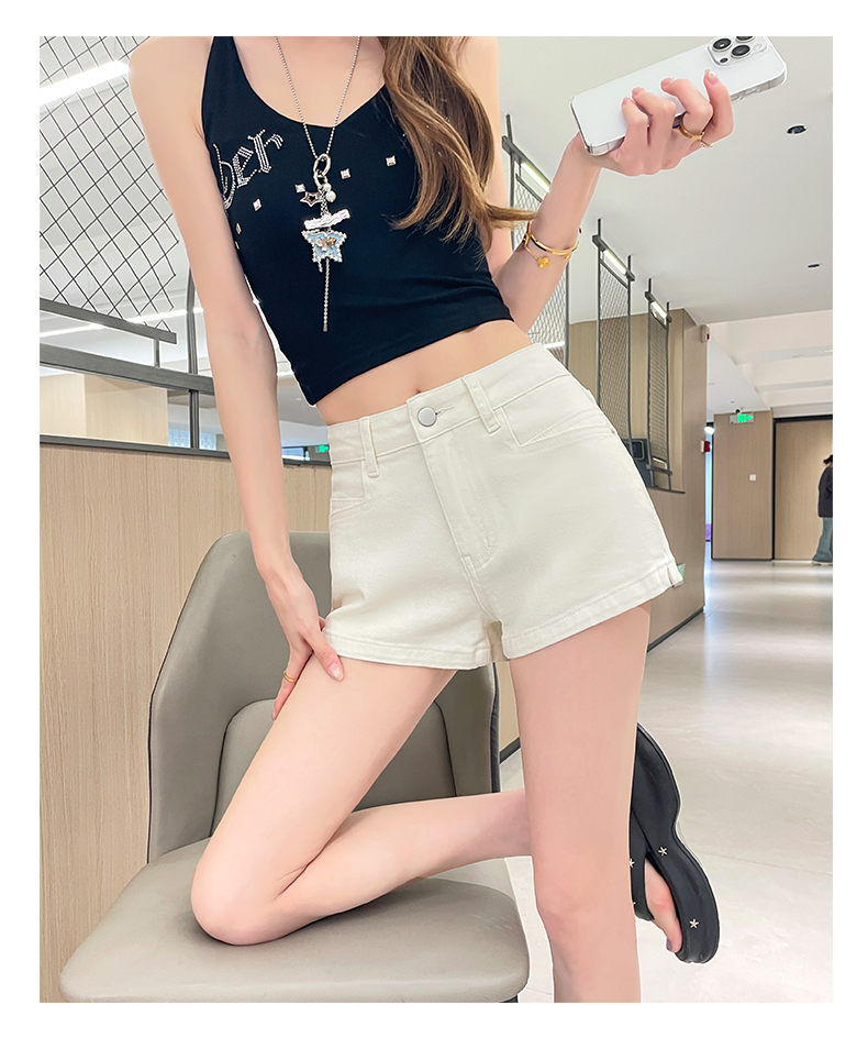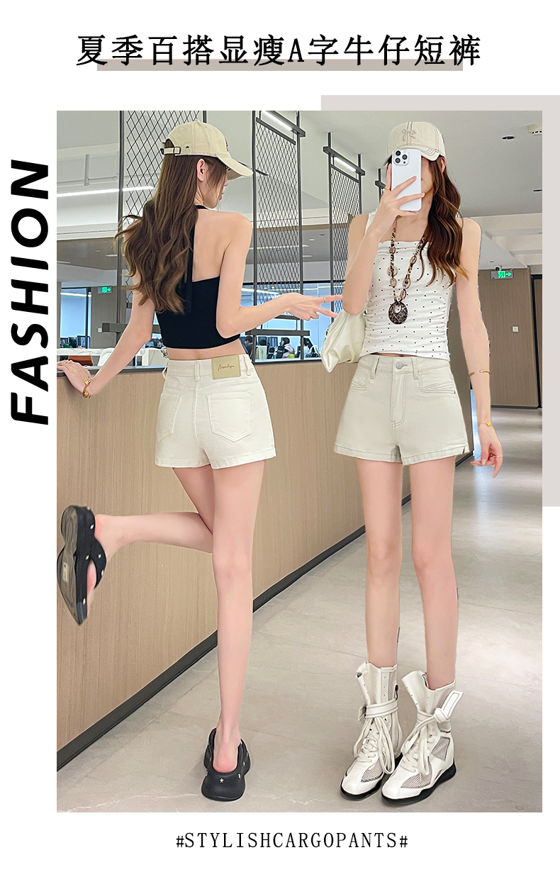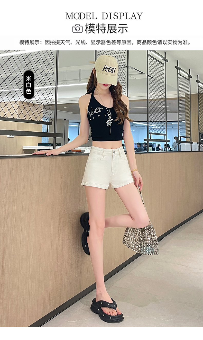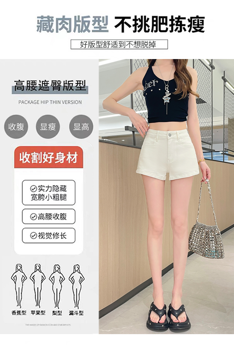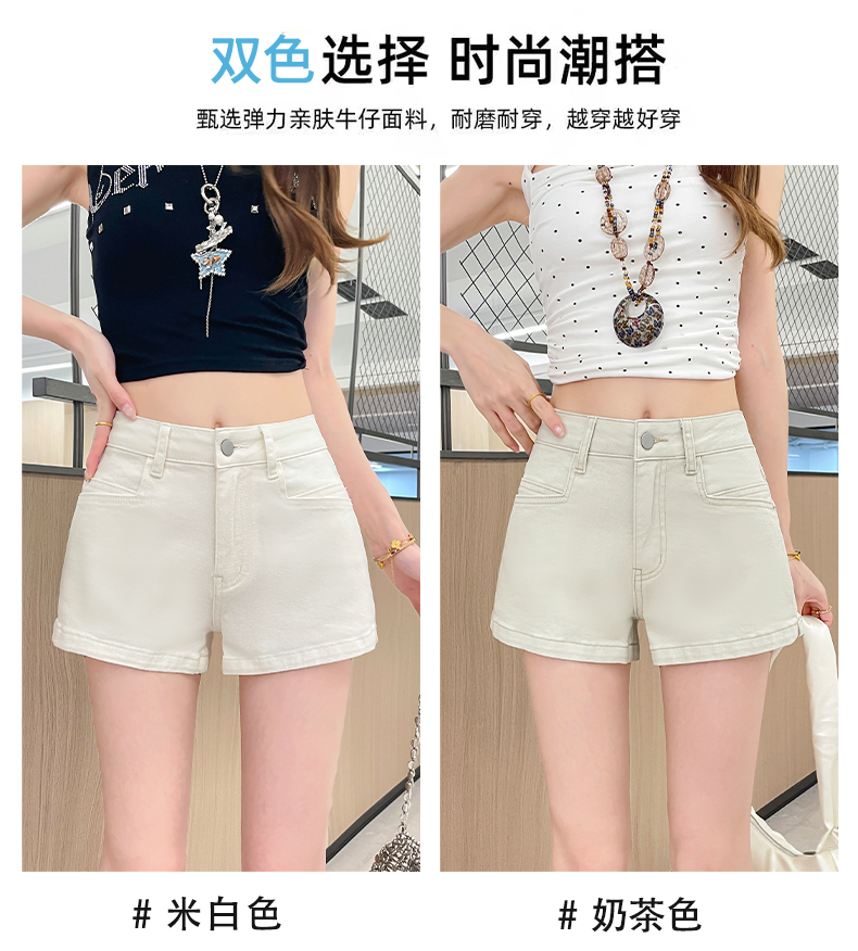 RY4165# 美式复古辣妹牛仔裤紧身显瘦短裤女夏季弹力高腰修身百搭包臀裤子