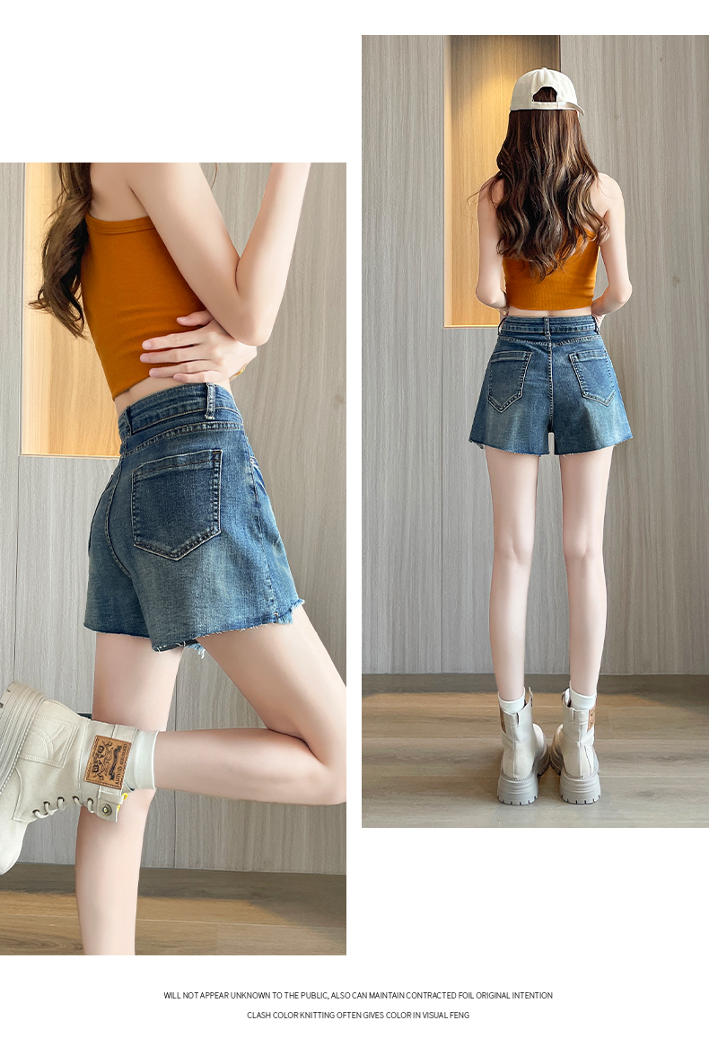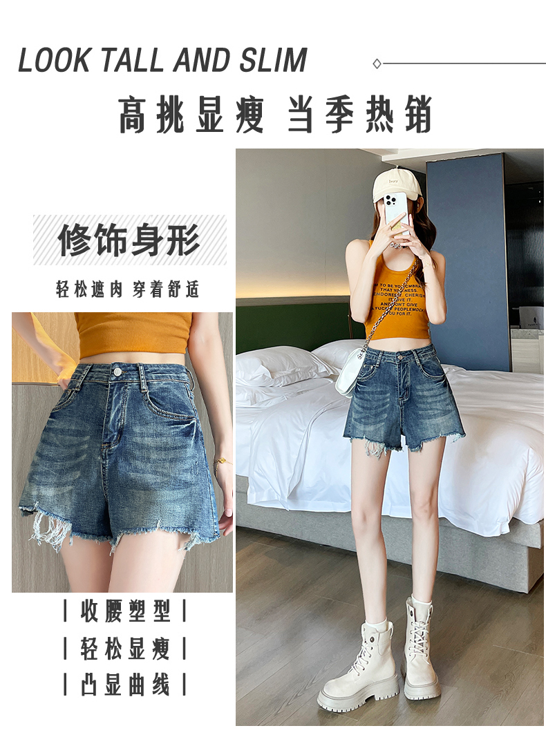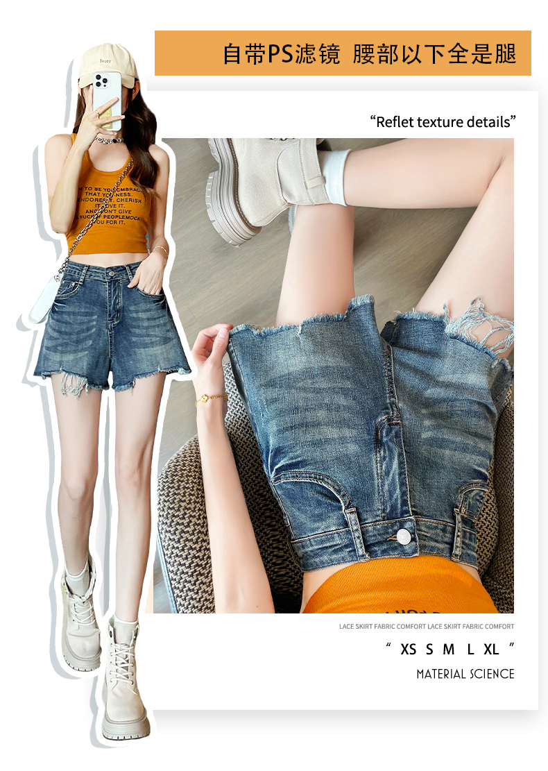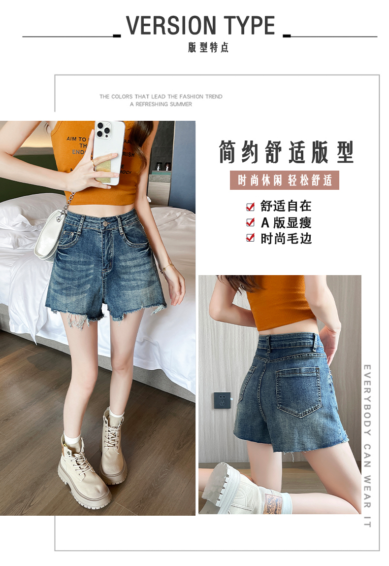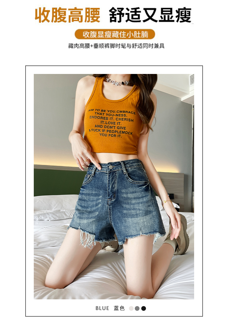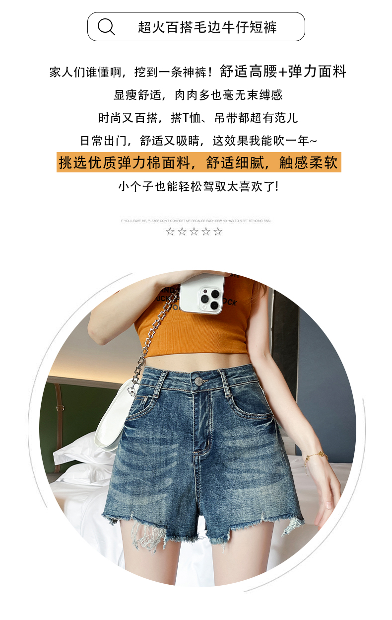 RY4168# 毛边牛仔短裤女夏2026新款高腰弹力显瘦小个子阔腿辣妹a字热裤子
