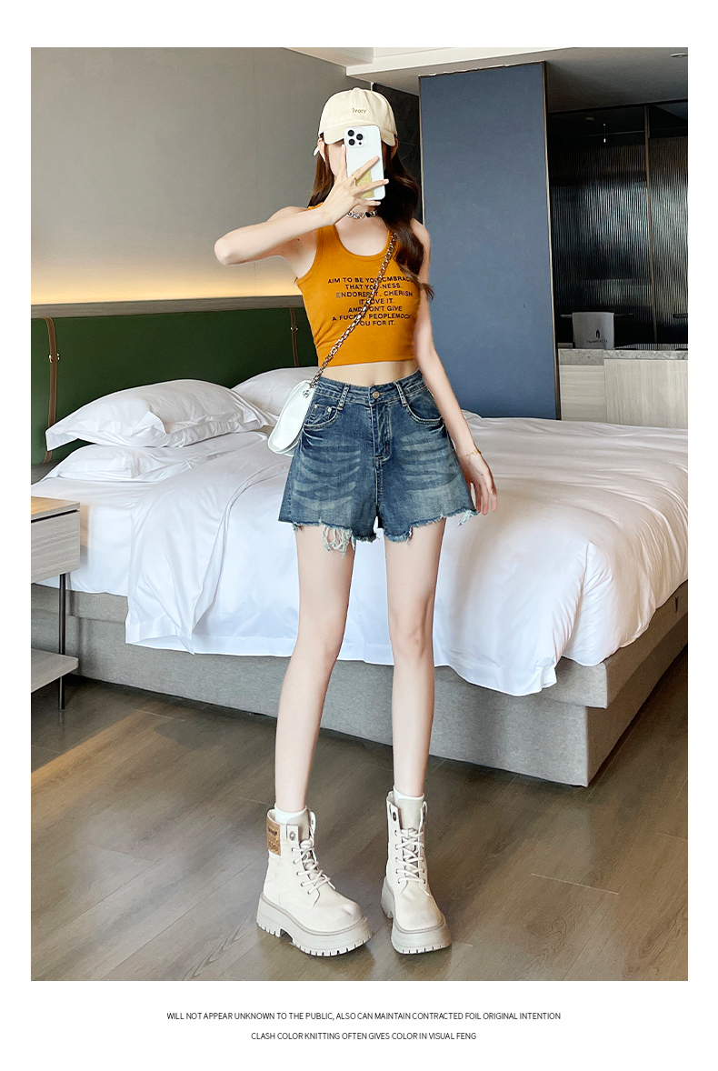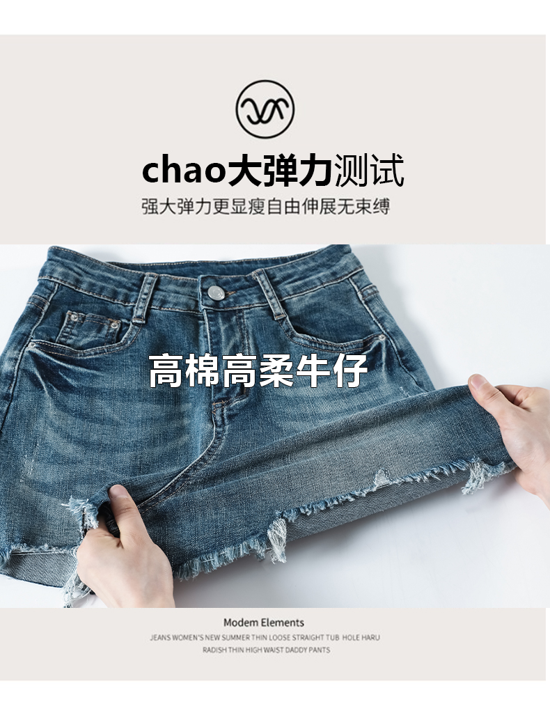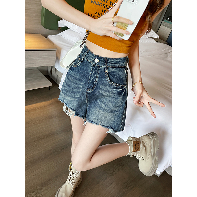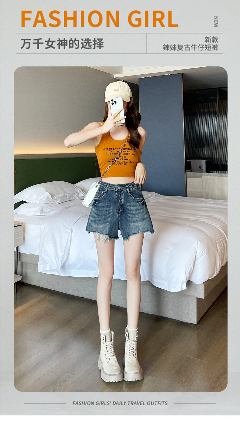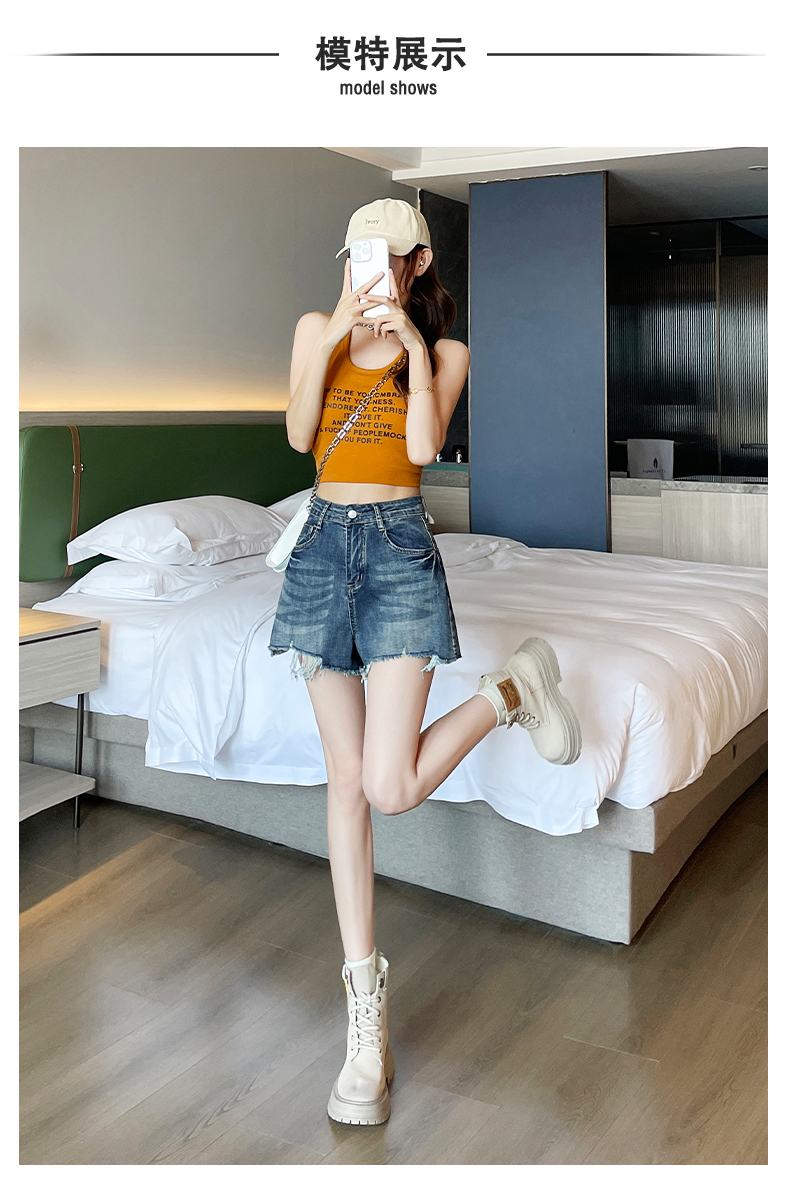 RY4168# 毛边牛仔短裤女夏2026新款高腰弹力显瘦小个子阔腿辣妹a字热裤子