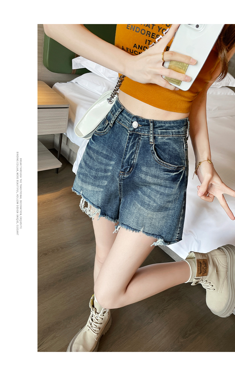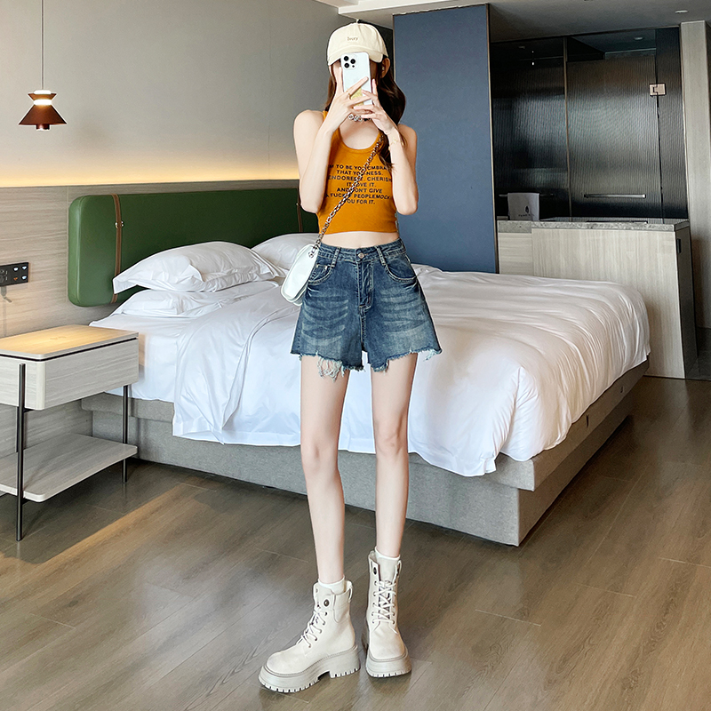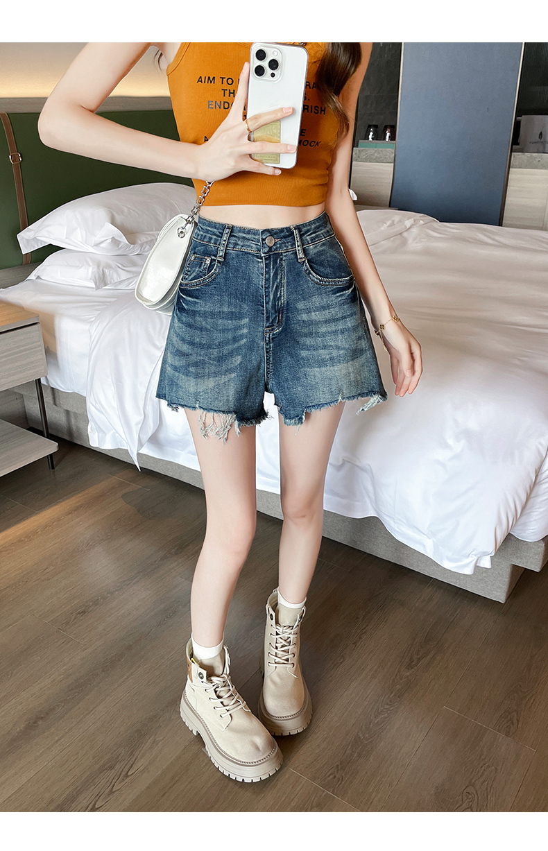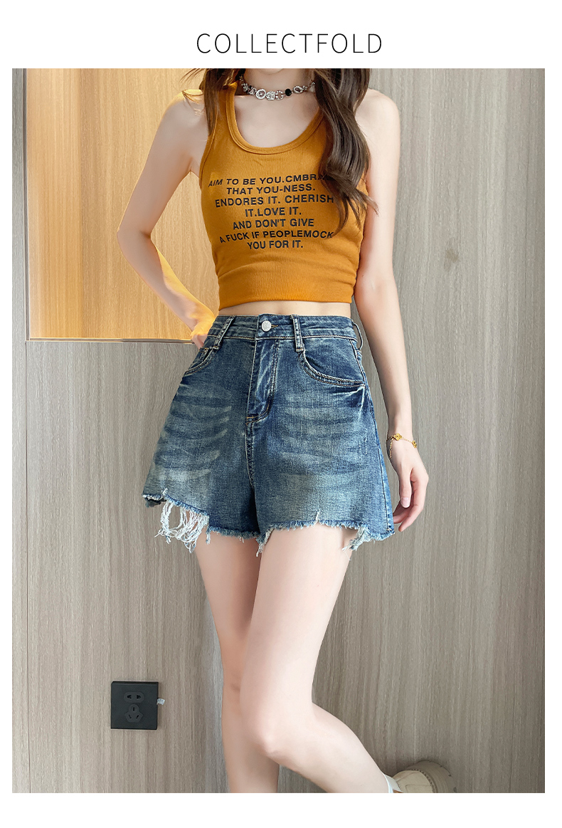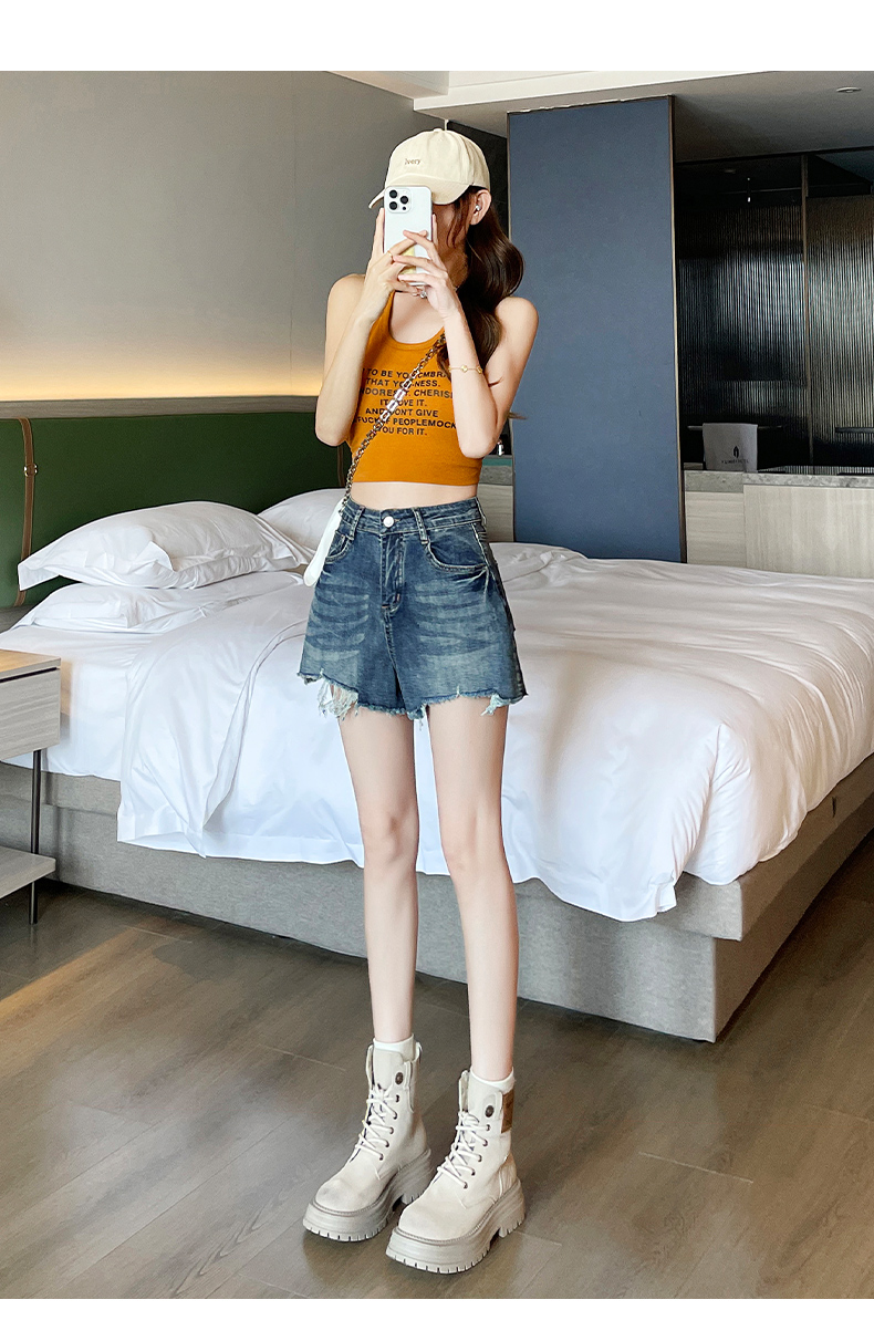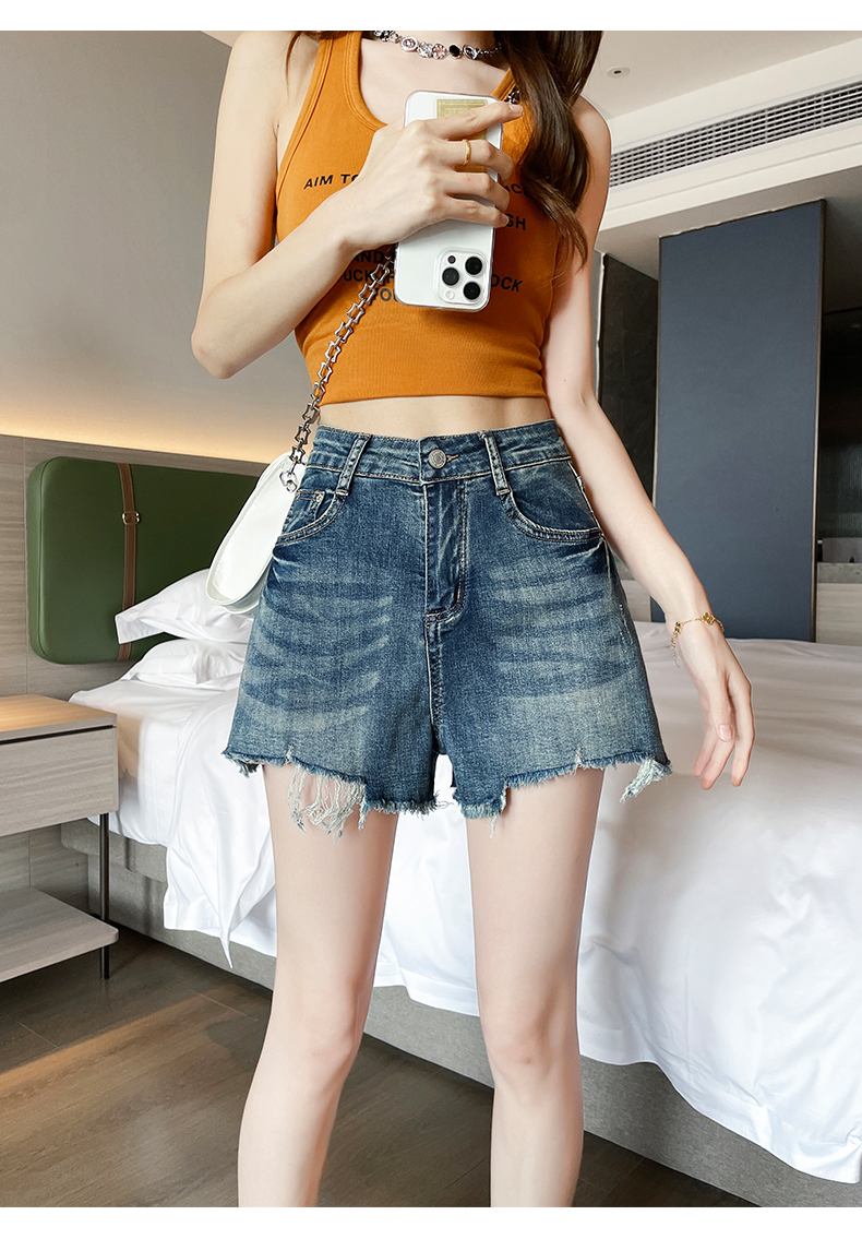 RY4168# 毛边牛仔短裤女夏2026新款高腰弹力显瘦小个子阔腿辣妹a字热裤子