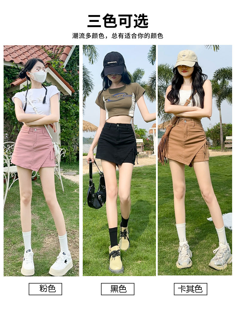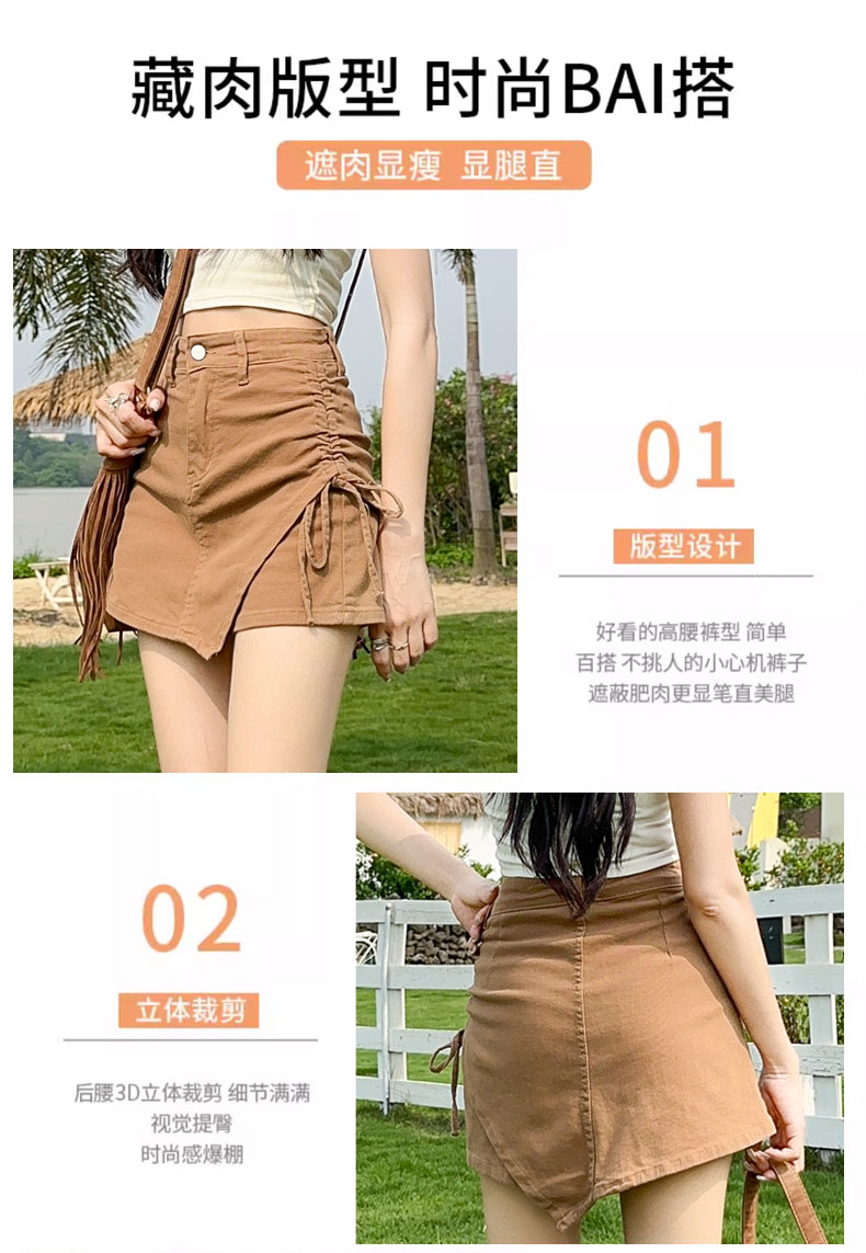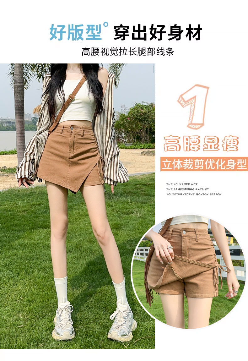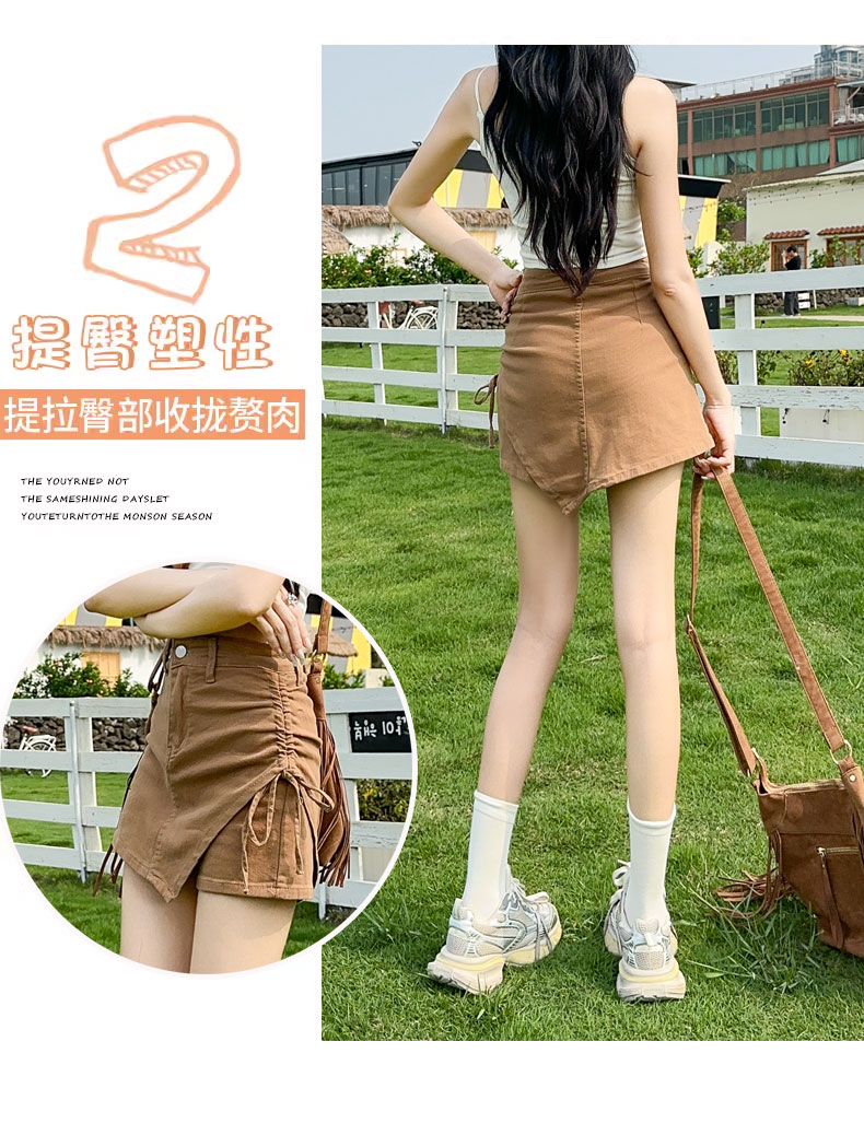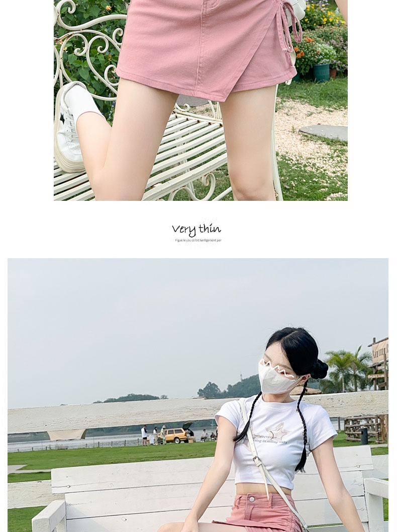 RY4169# 粉色牛仔短裙女夏季薄款不规则半身裙2026抽绳超A甜辣裙裤裤裙子