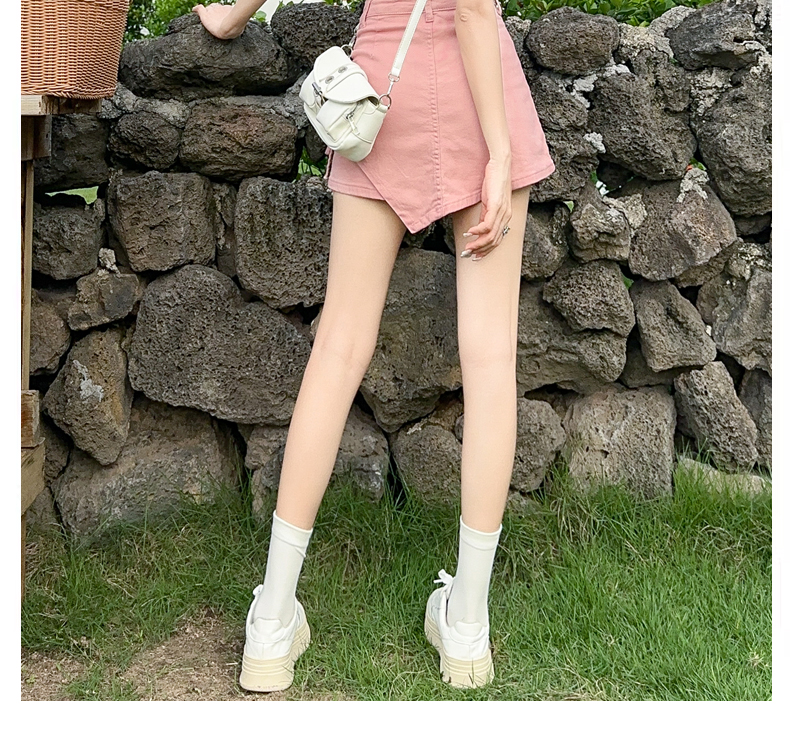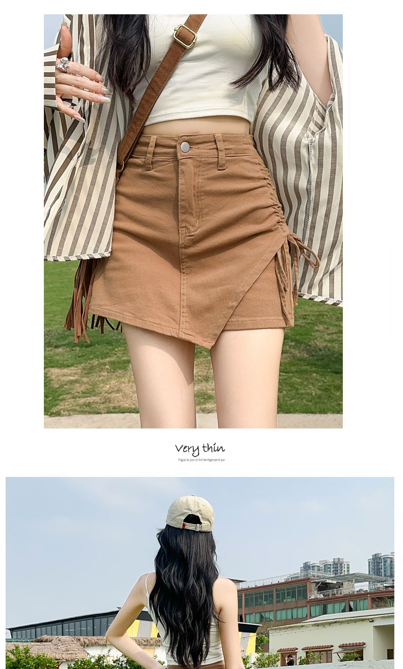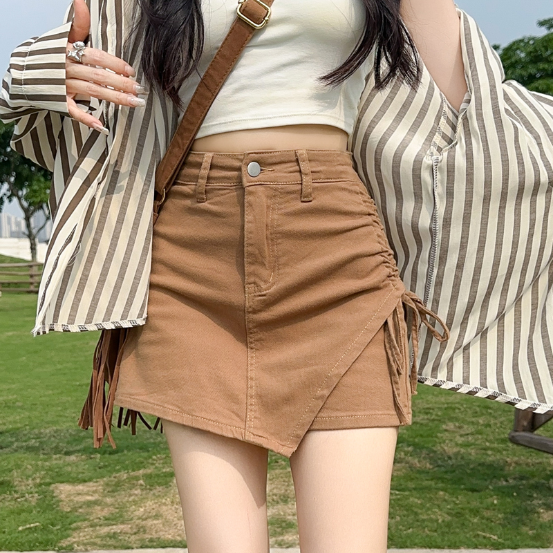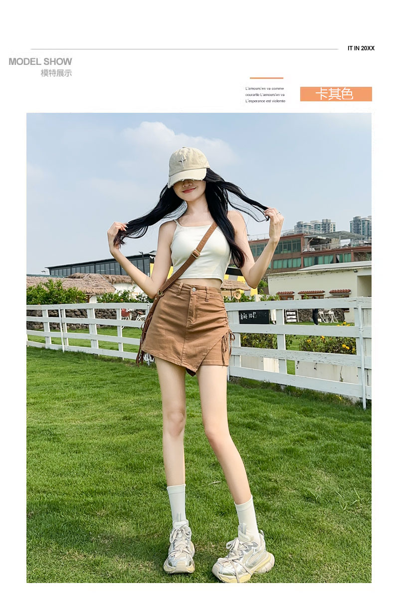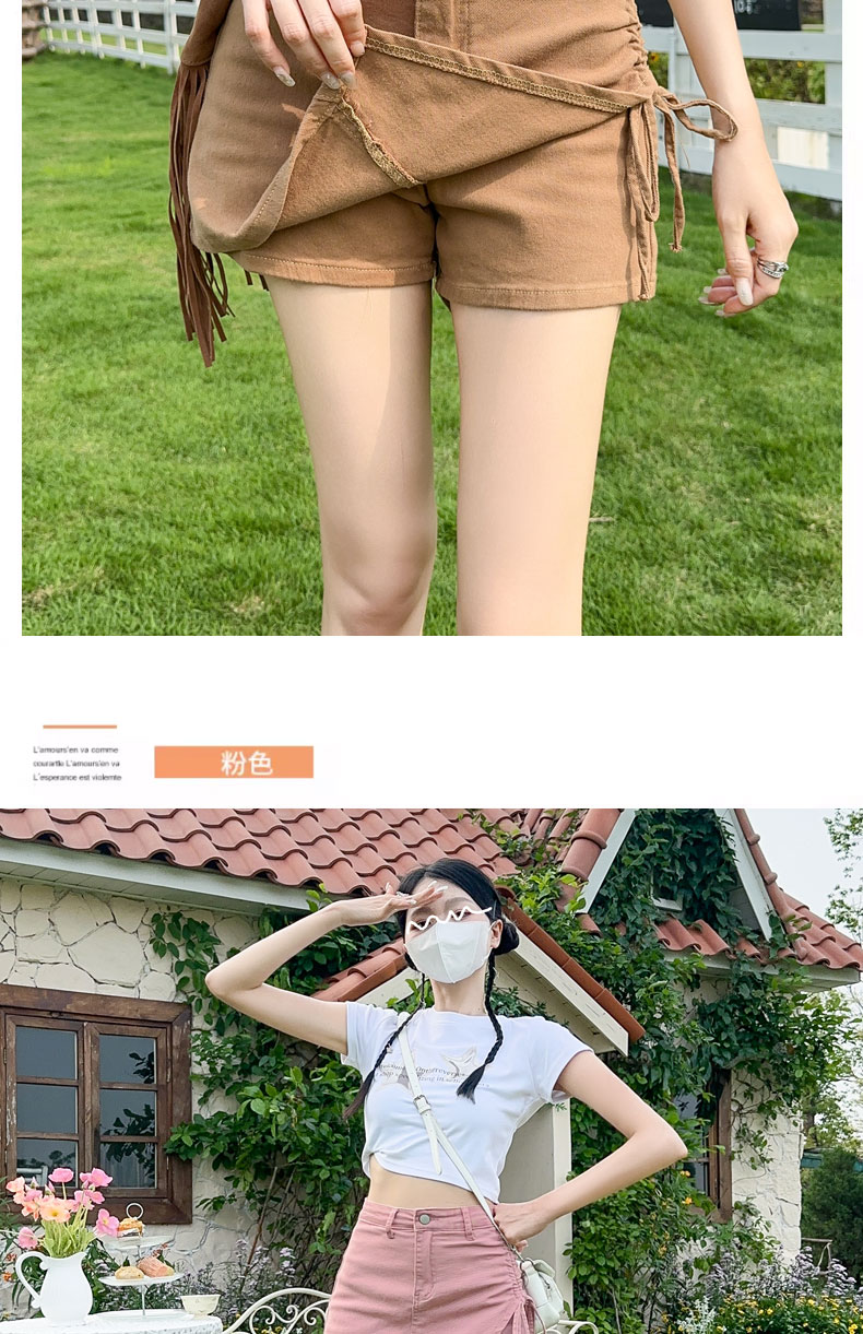 RY4169# 粉色牛仔短裙女夏季薄款不规则半身裙2026抽绳超A甜辣裙裤裤裙子