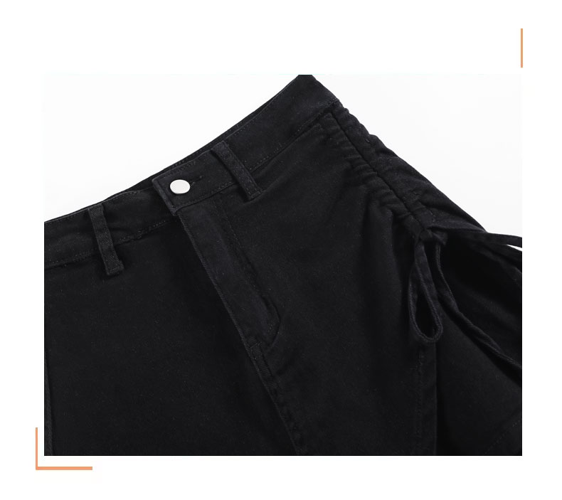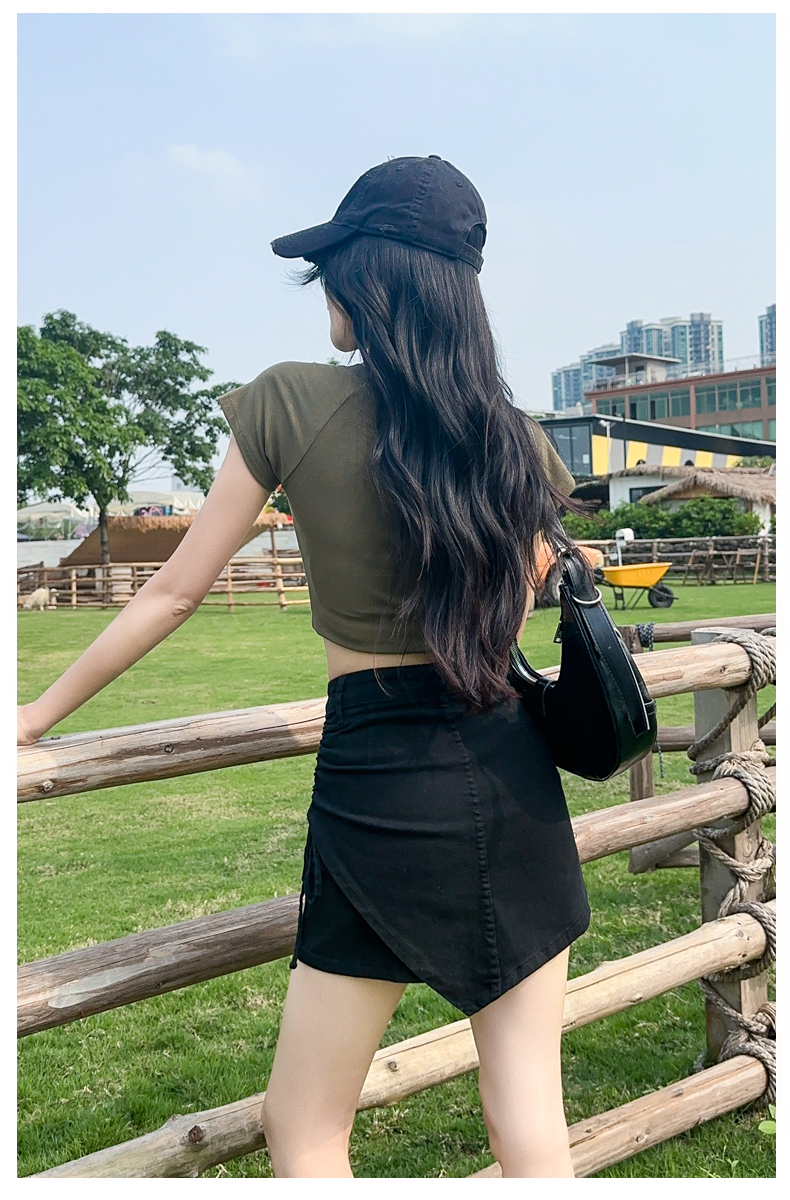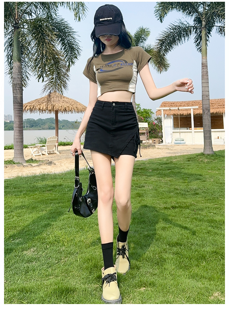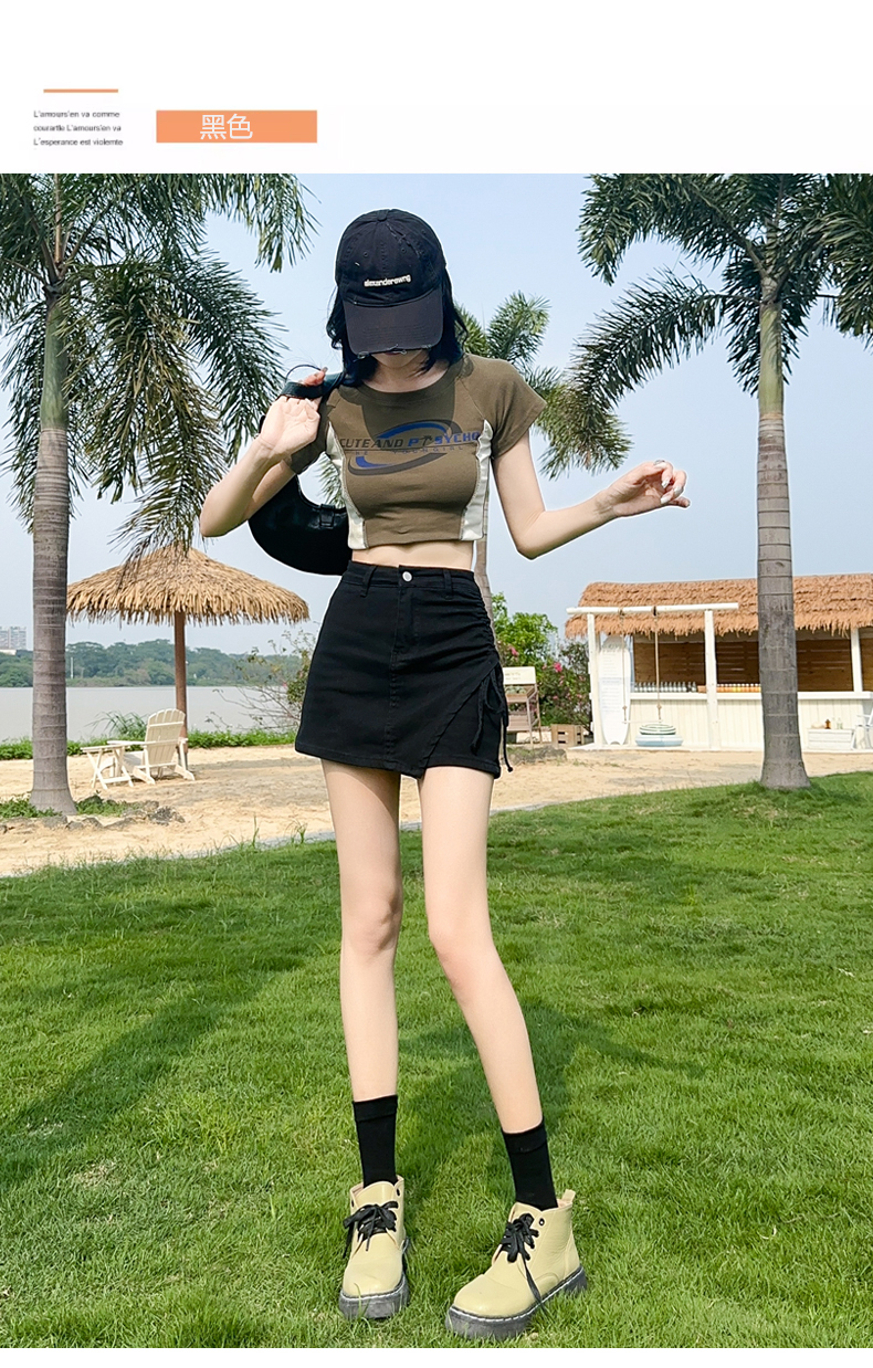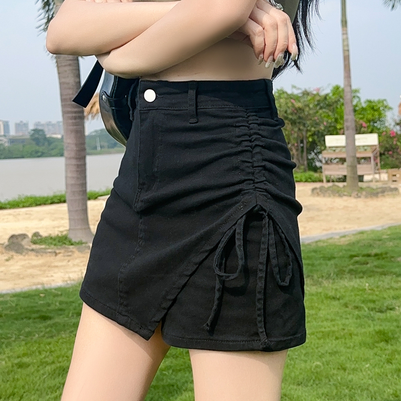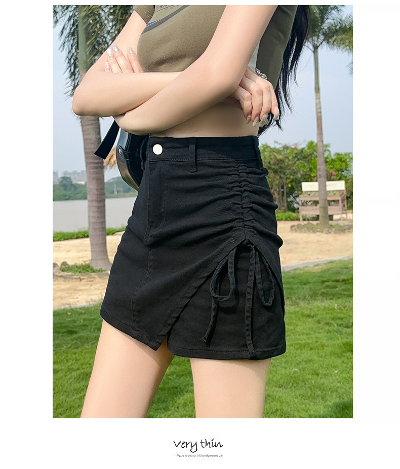 RY4166# 黑色牛仔短裙女夏2026今年流行新款辣妹不规则弹力工装裙裤...