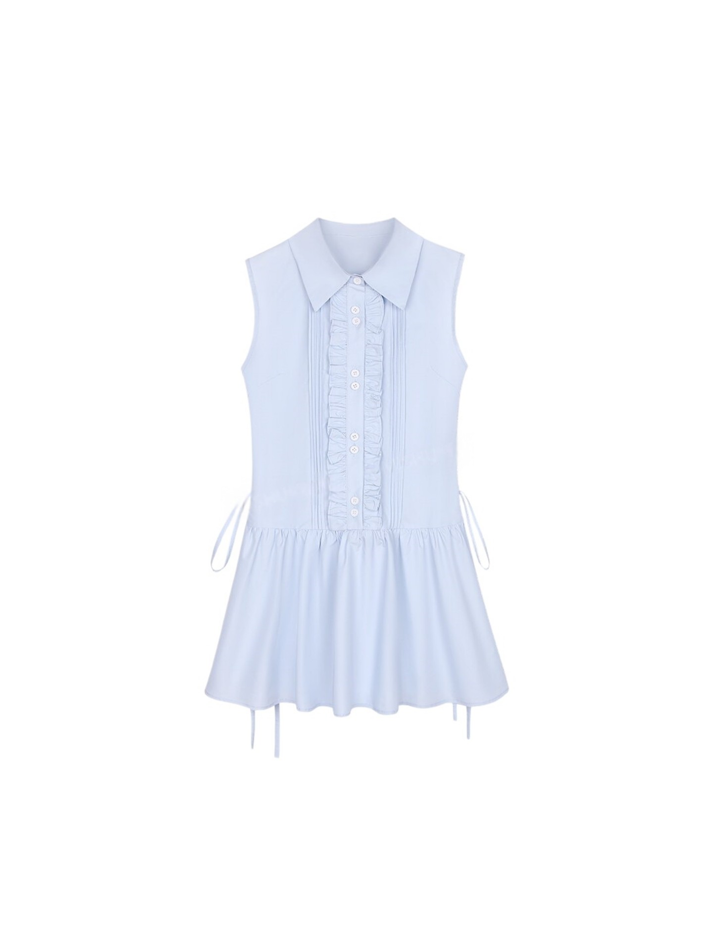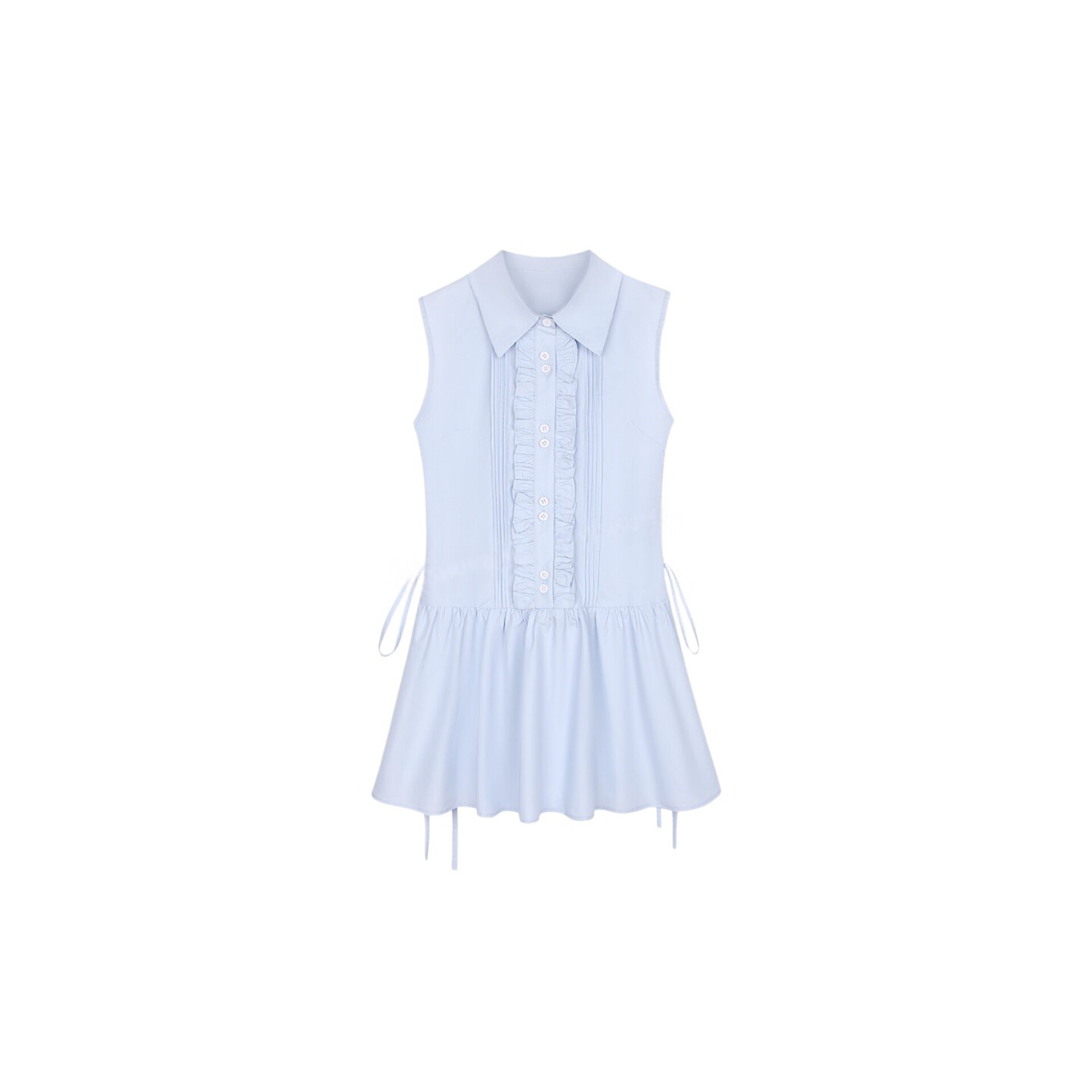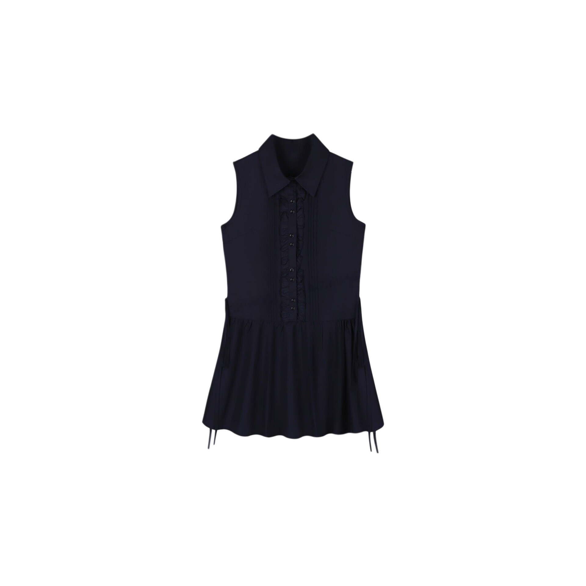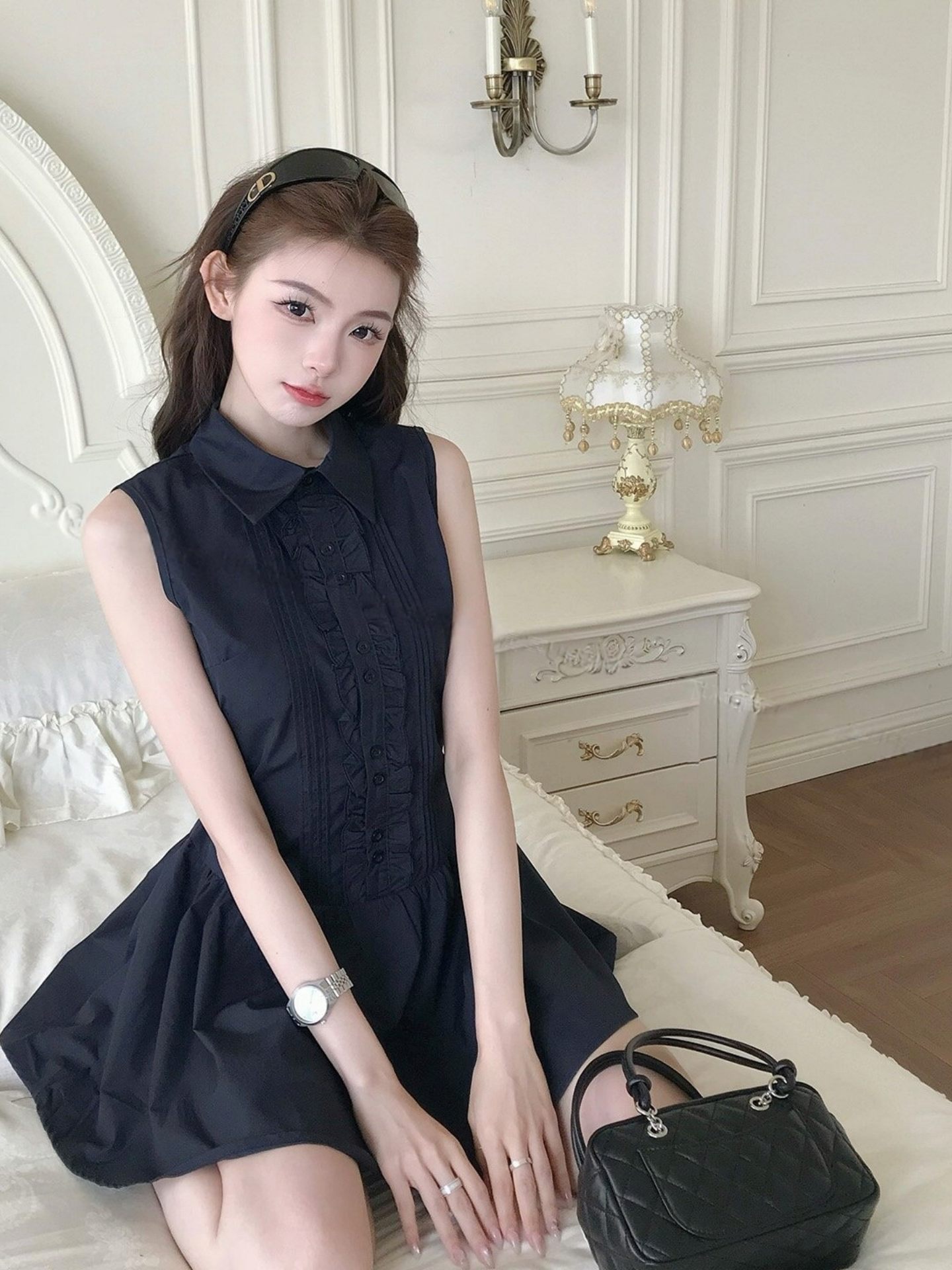 RY4181# 特别漂亮掐腰小裙子女夏小个子连衣裙polo领法式无袖背心娃娃短裙