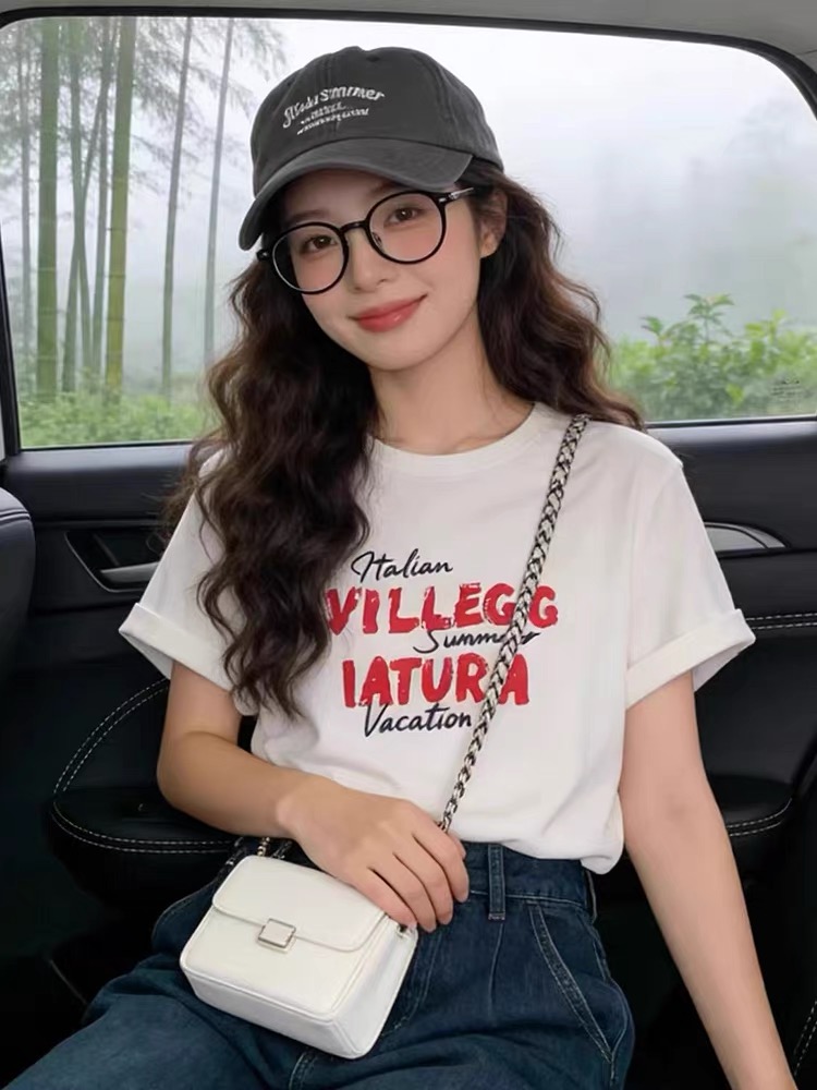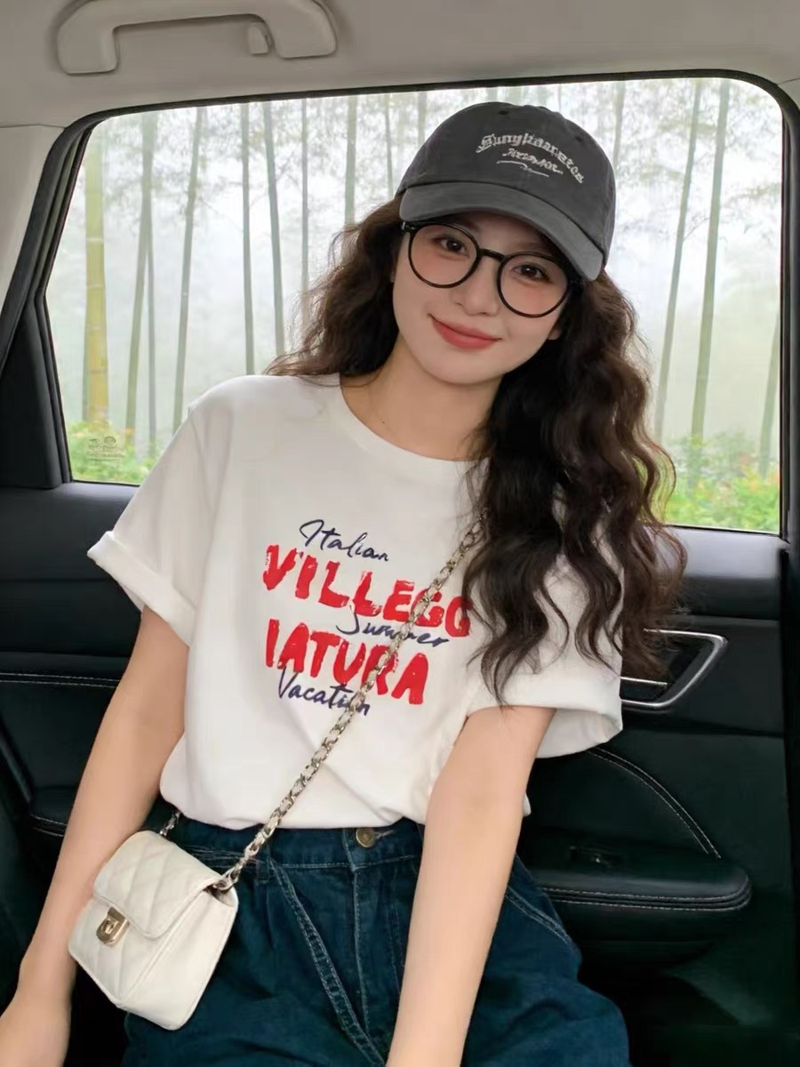 RY4187# 2026夏季新款 韩版220克纯棉印花短袖T恤女