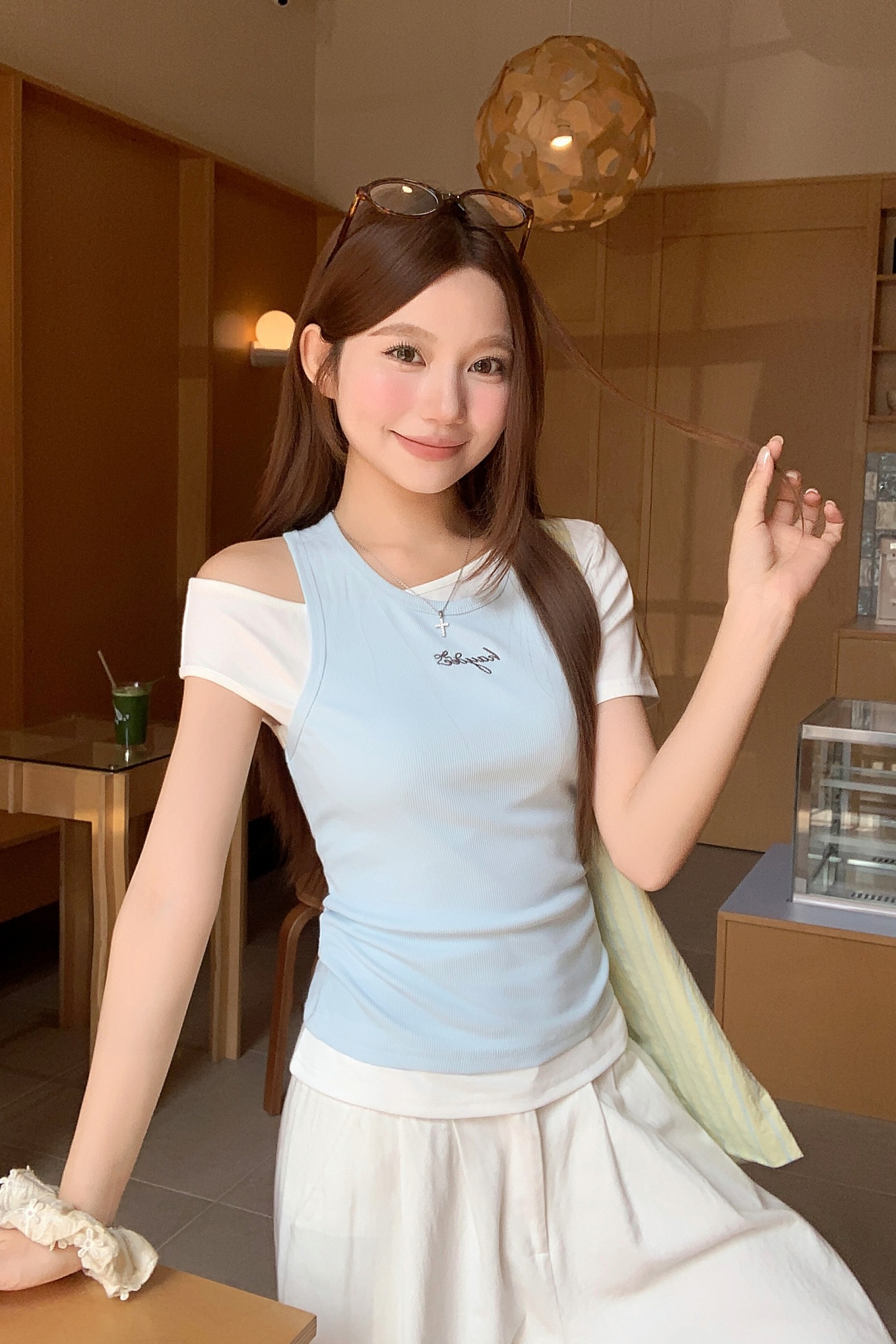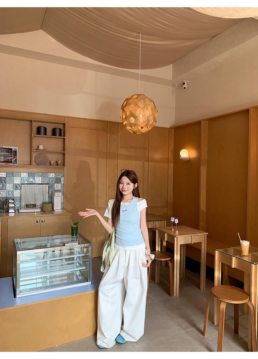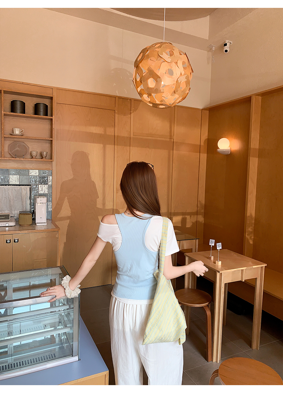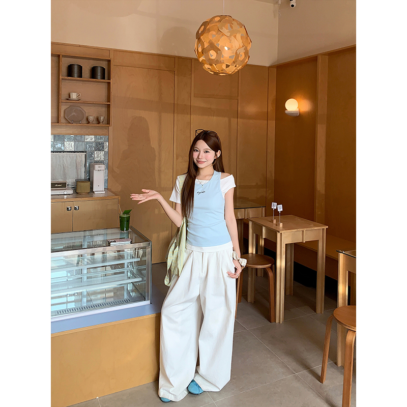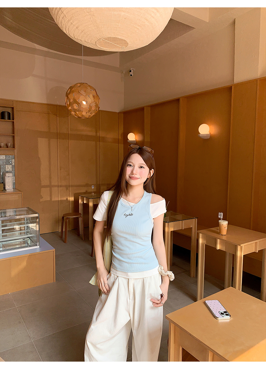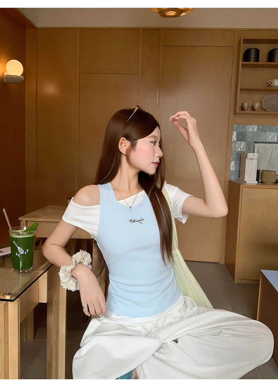 RY4268# 纯欲风真两件露肩t恤女夏季新款韩系修身显瘦辣妹短袖上衣两件套