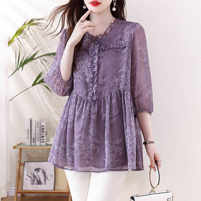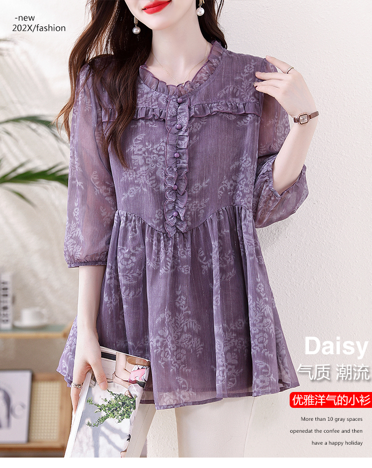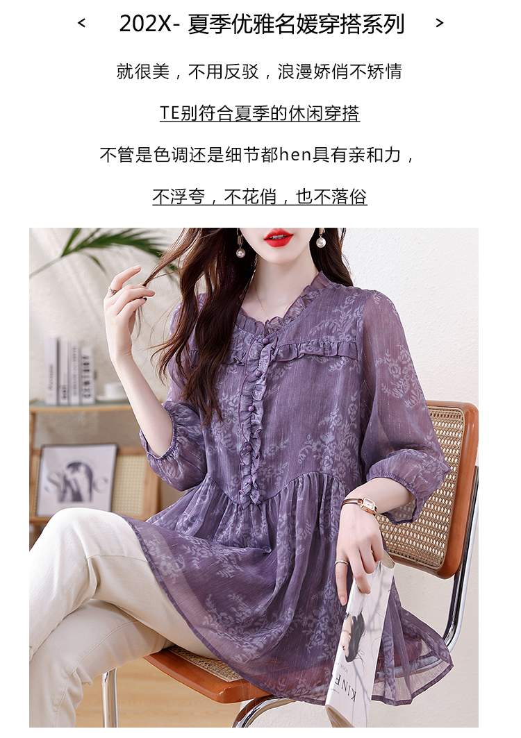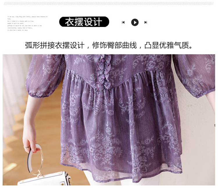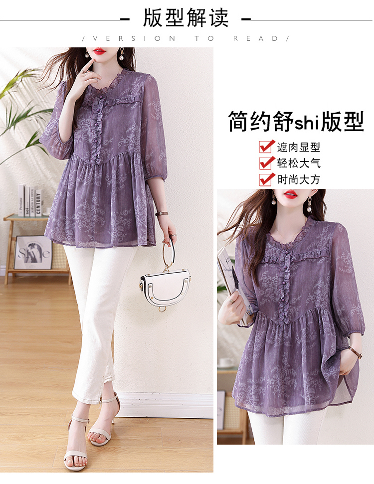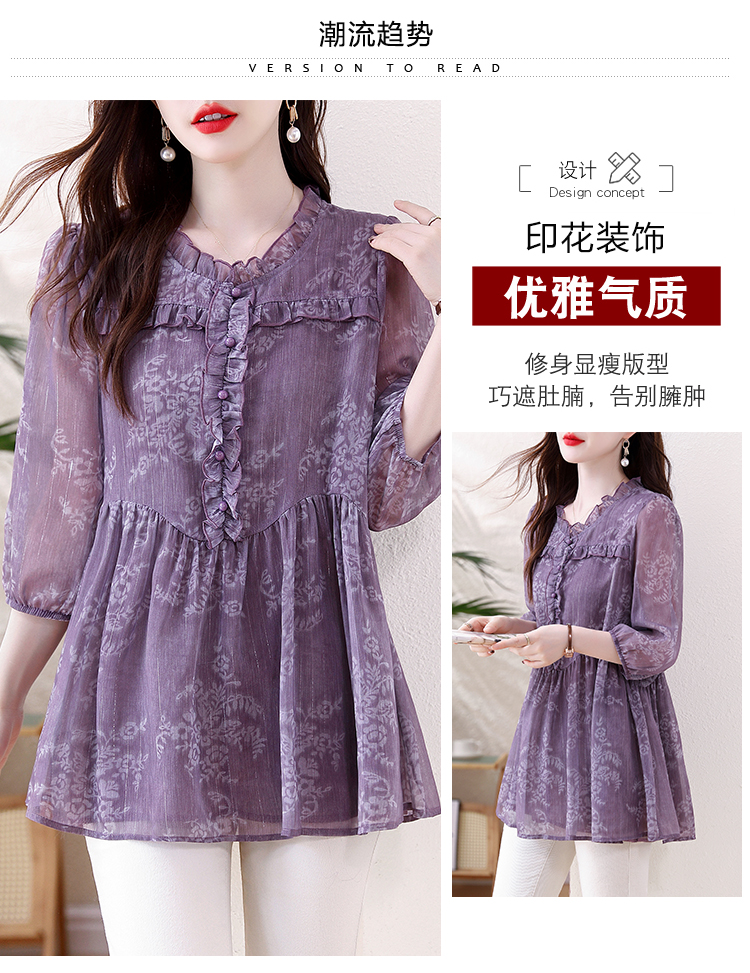 MY14221#大码女装印花洋气时髦花边收腰减龄显瘦遮肚胖MM短袖上衣