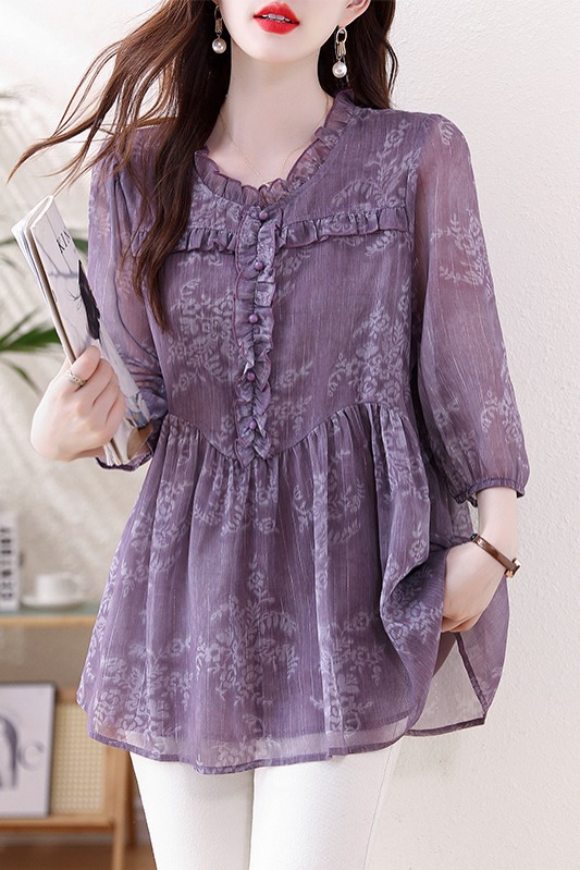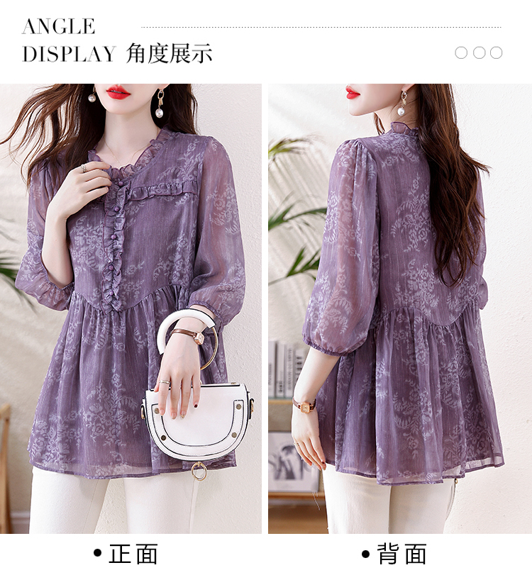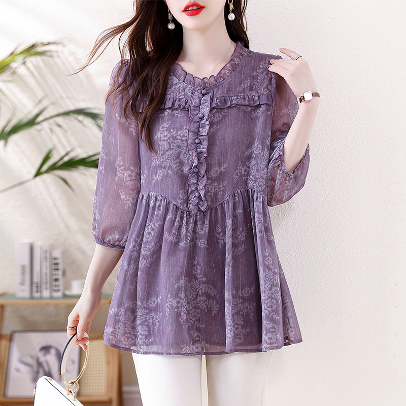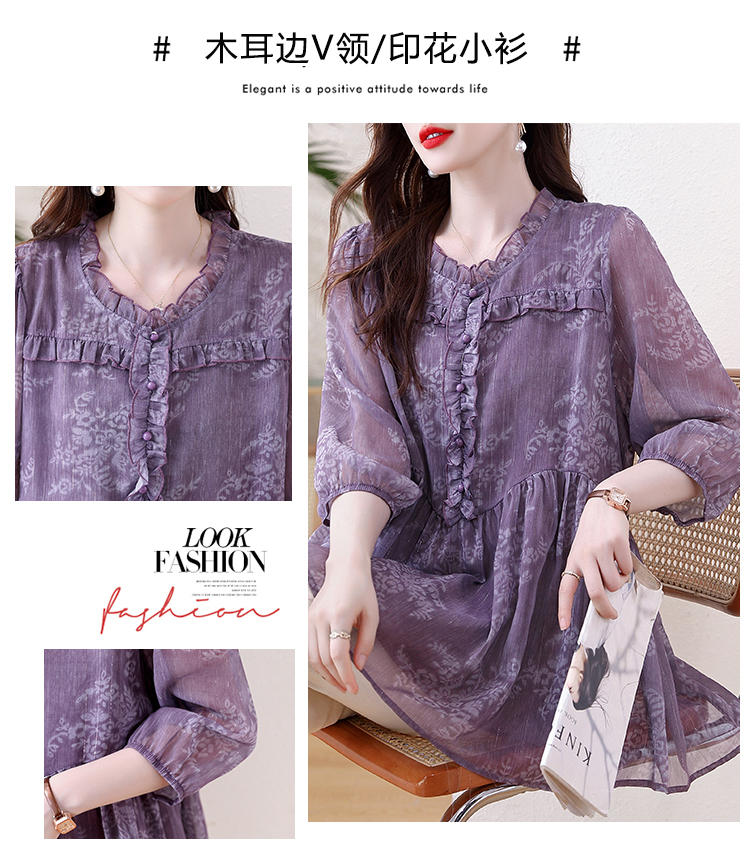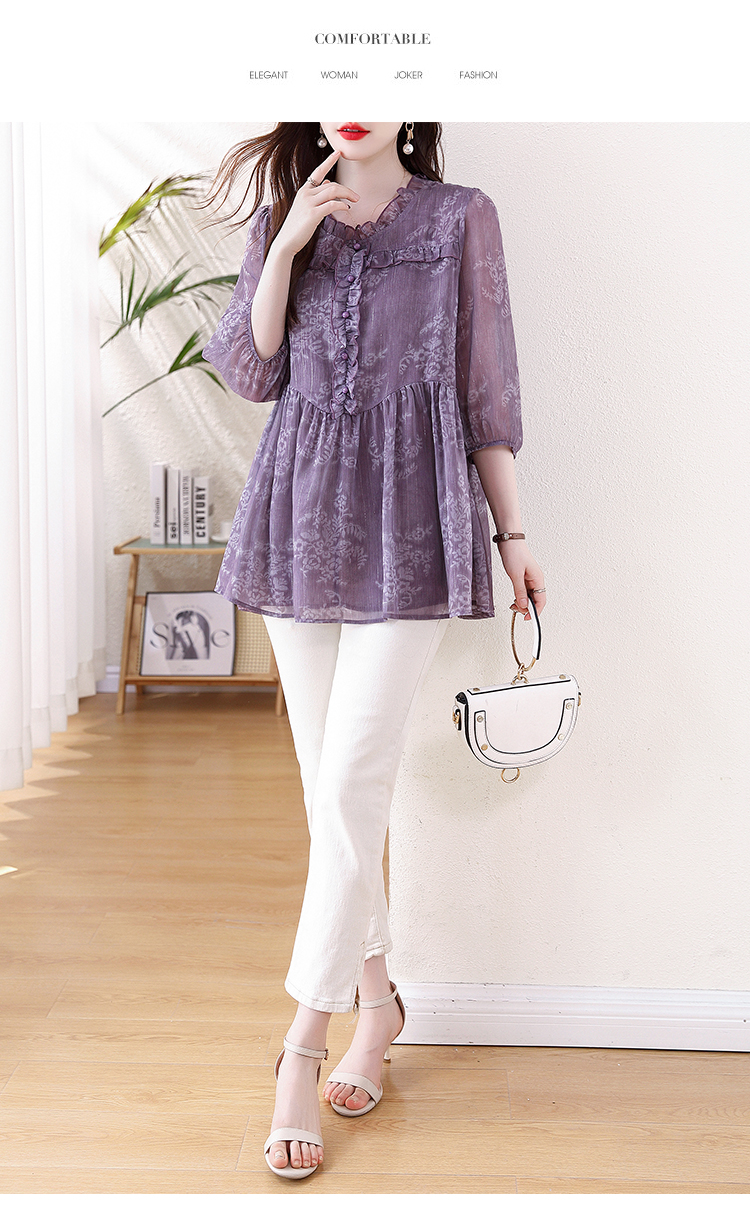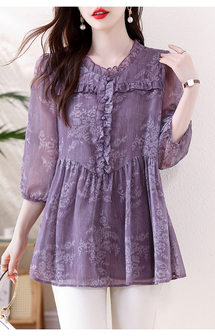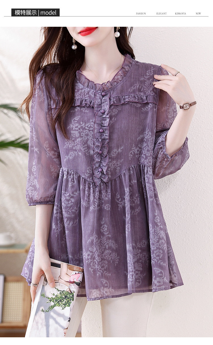 MY14221#大码女装印花洋气时髦花边收腰减龄显瘦遮肚胖MM短袖上衣