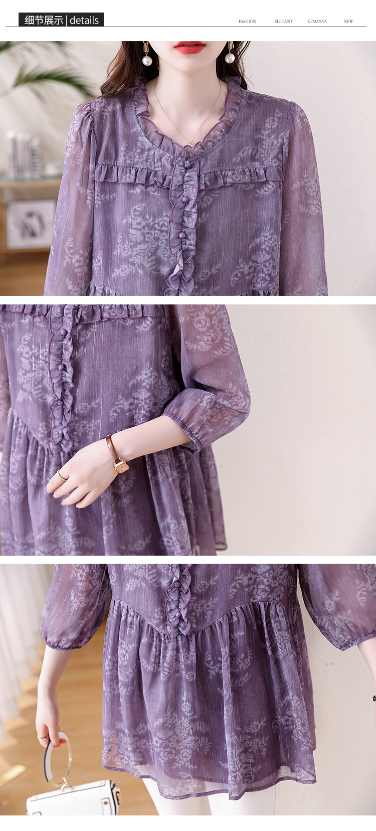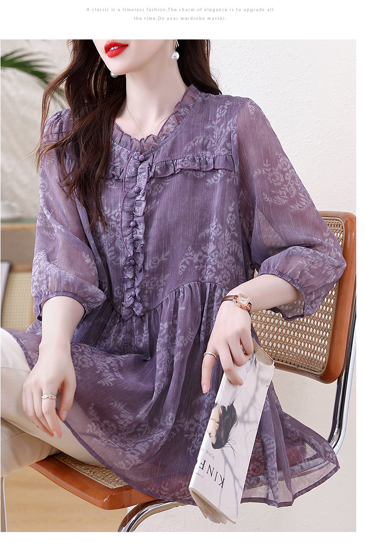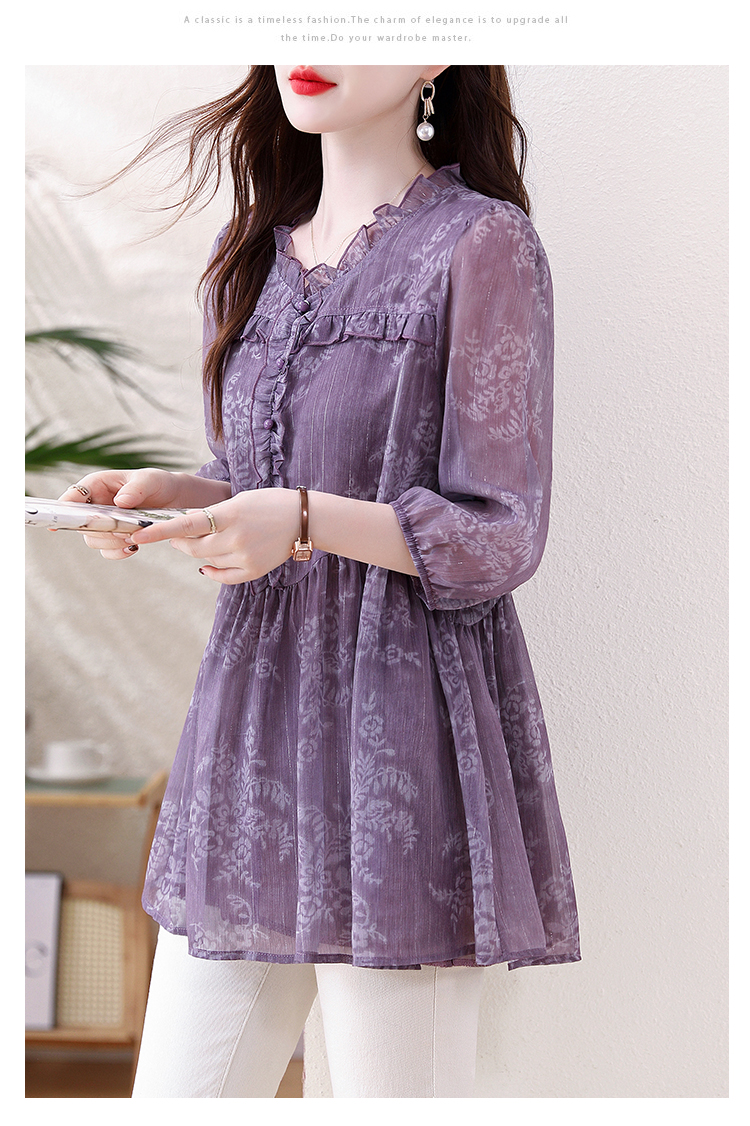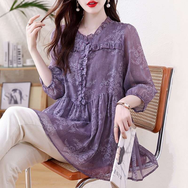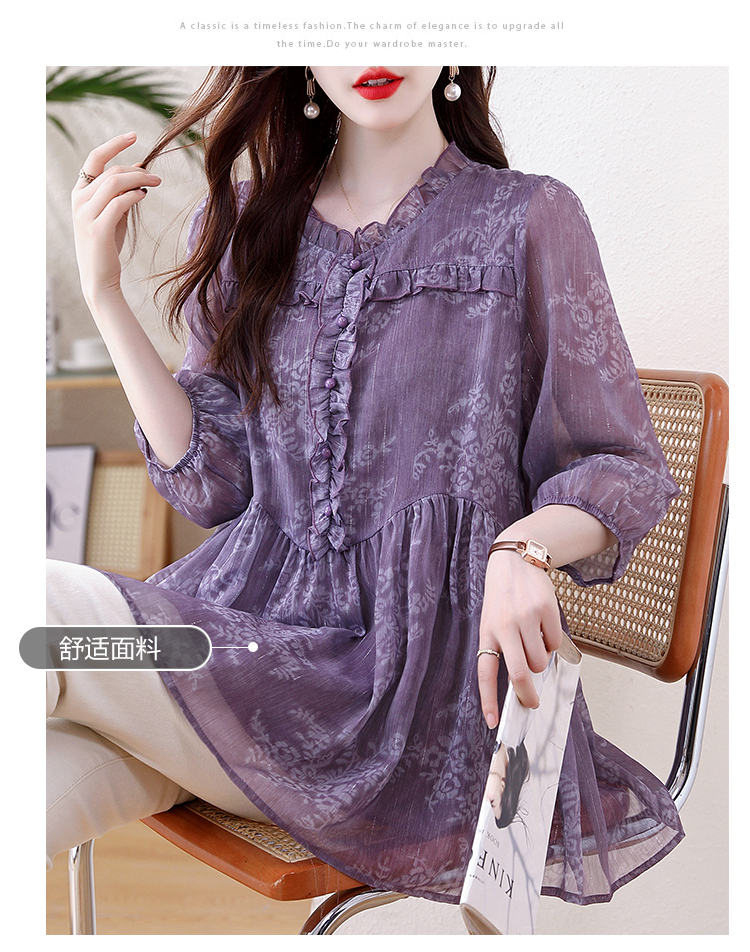 MY14221#大码女装印花洋气时髦花边收腰减龄显瘦遮肚胖MM短袖上衣