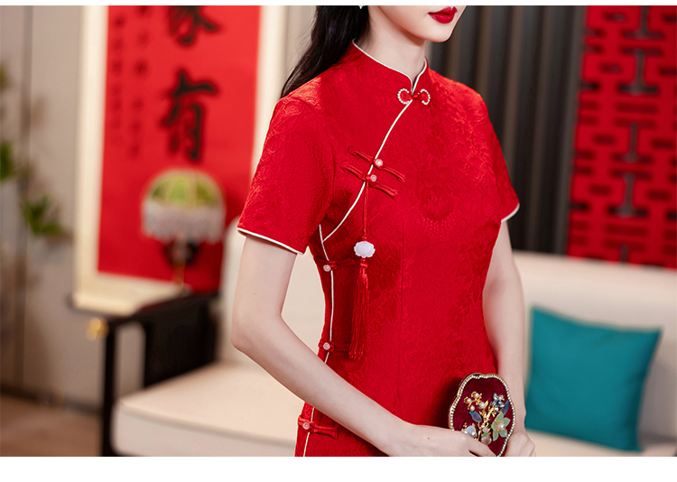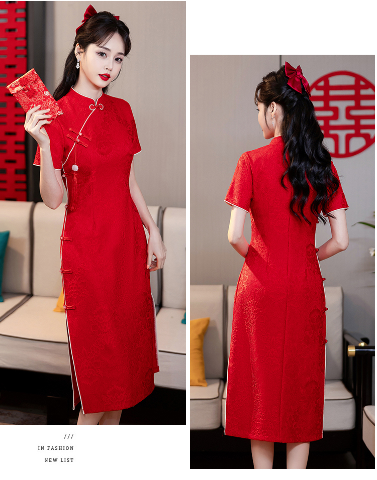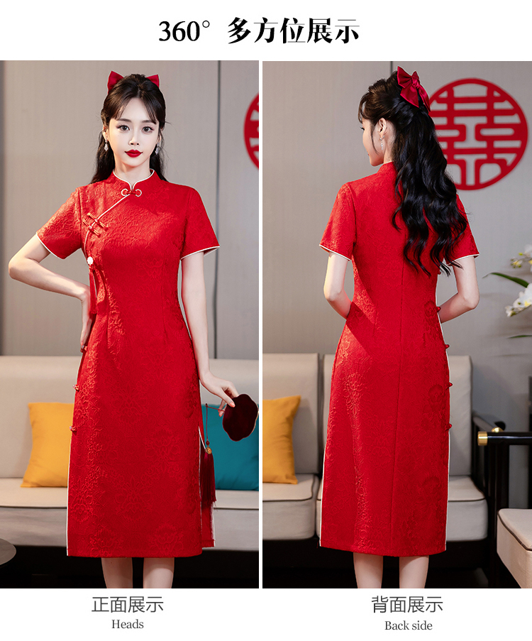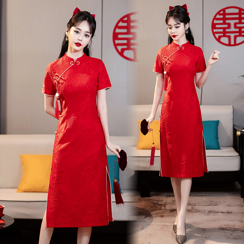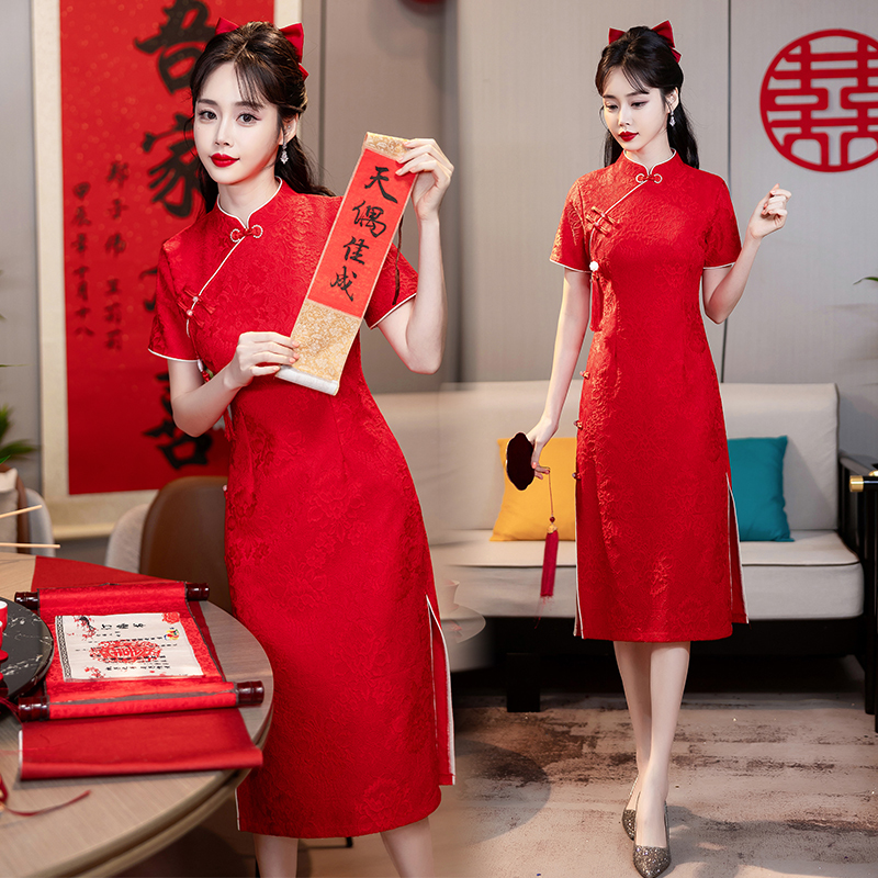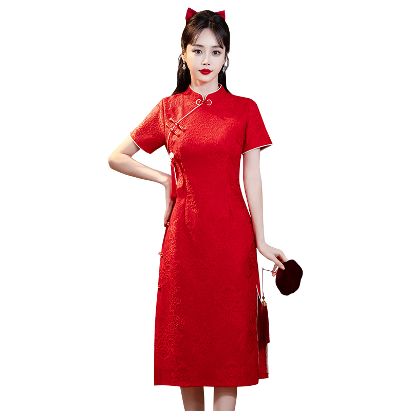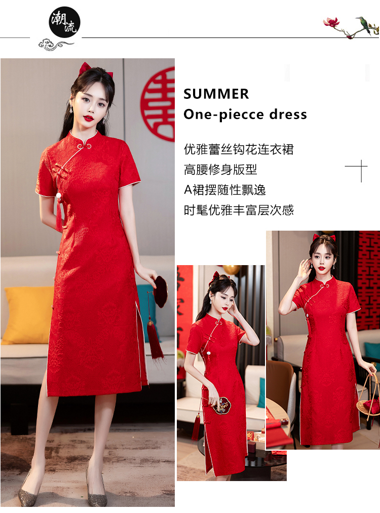 MY14355#复古收腰开叉长裙改良新国风旗袍连衣裙