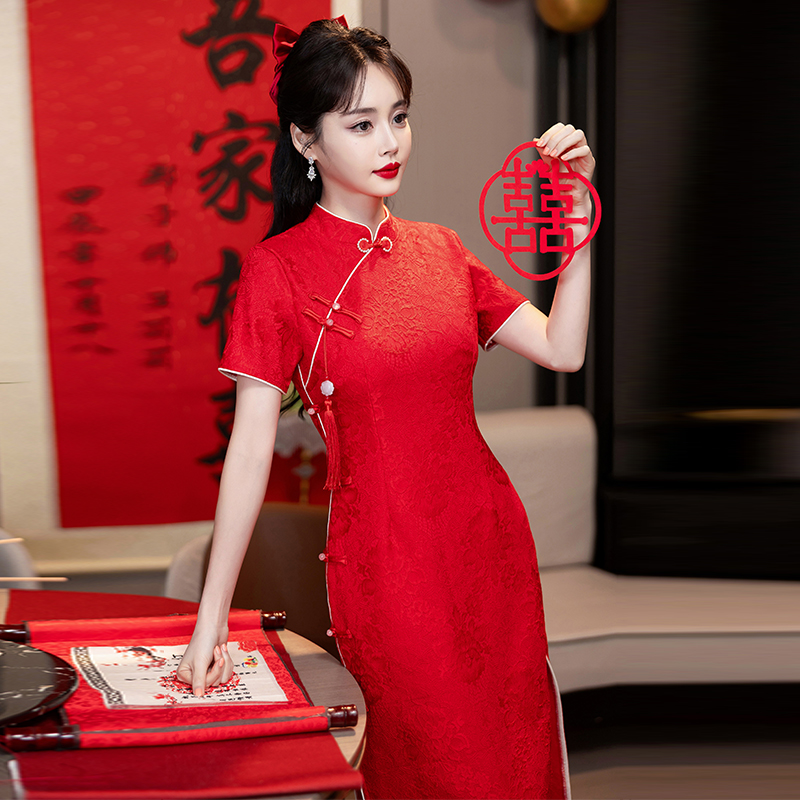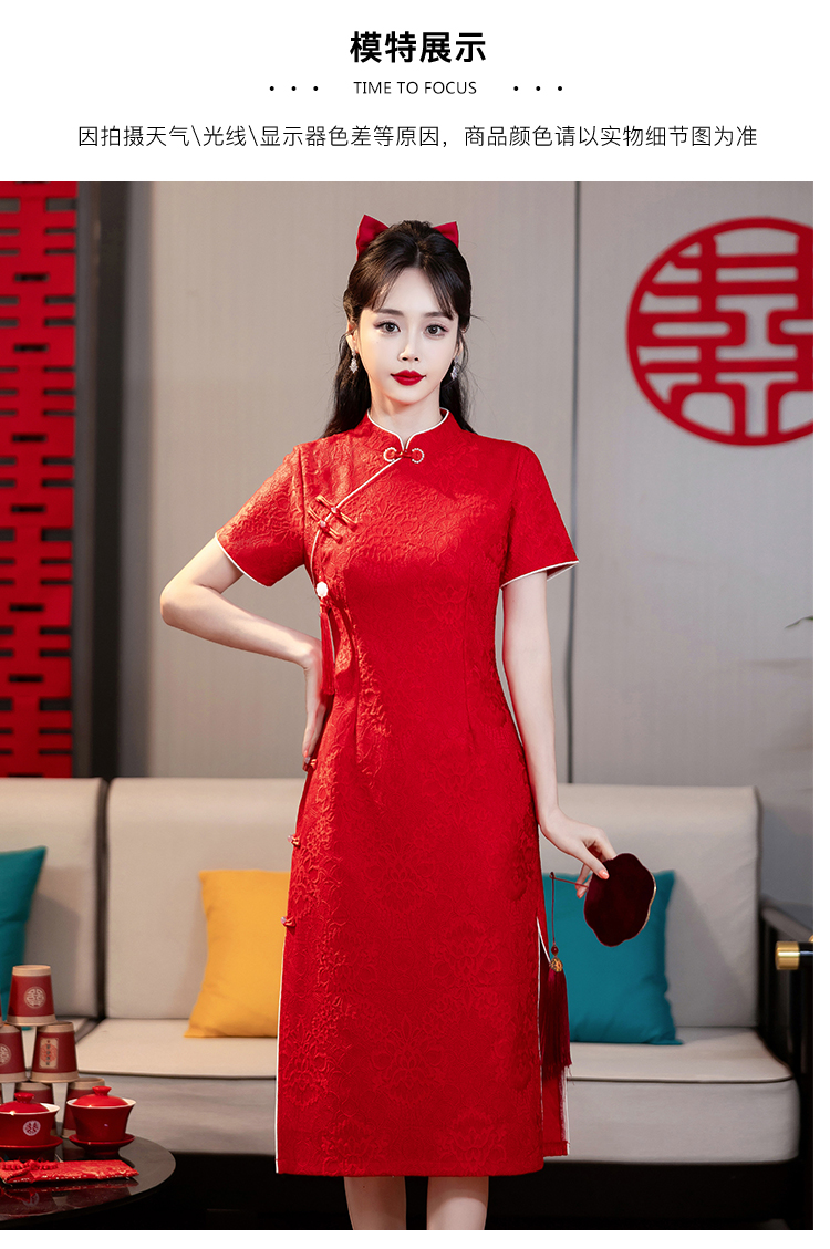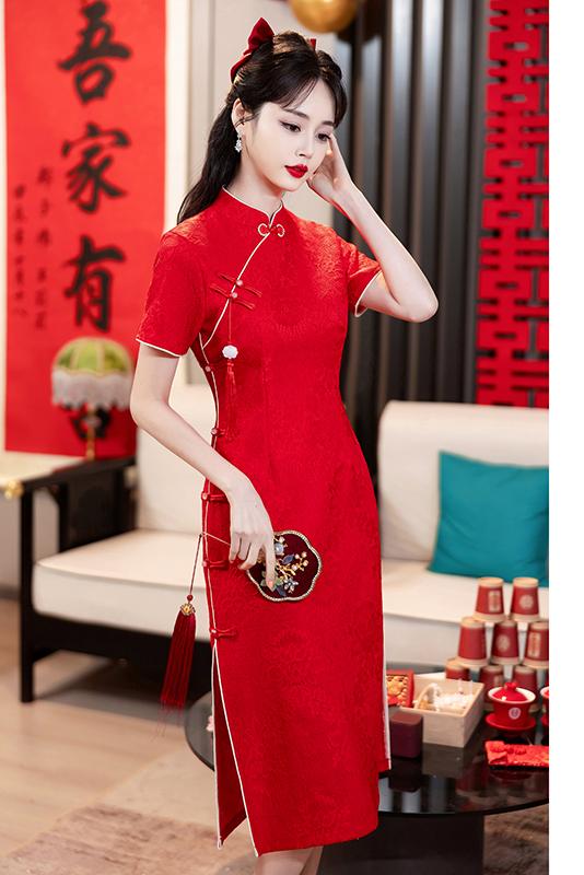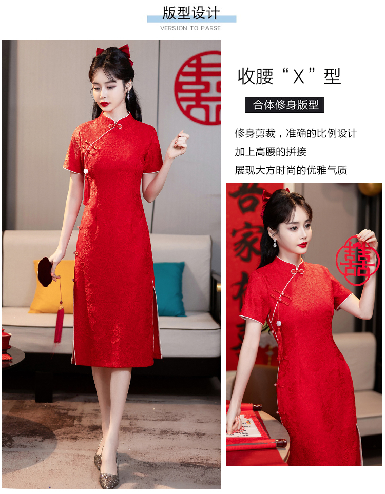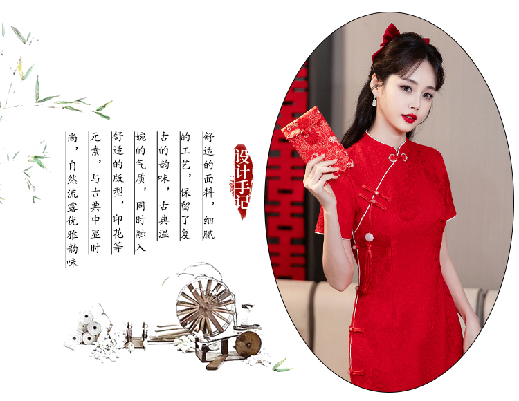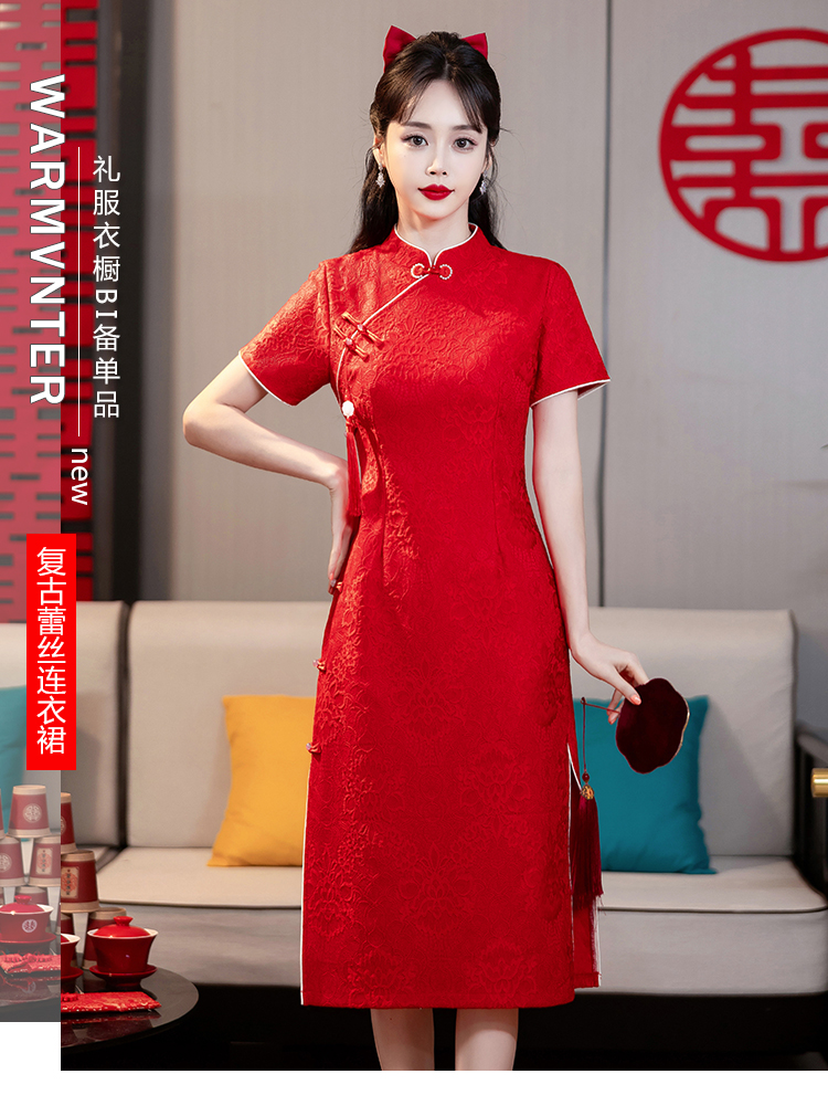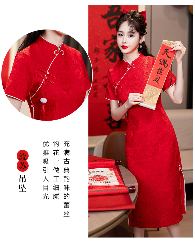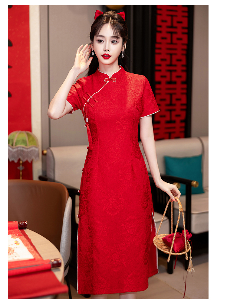 MY14355#复古收腰开叉长裙改良新国风旗袍连衣裙