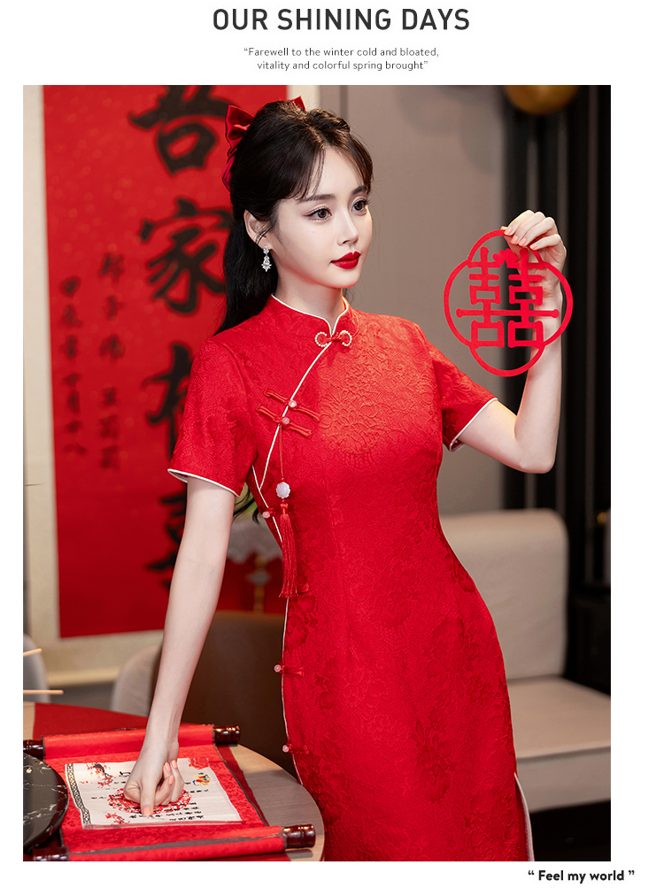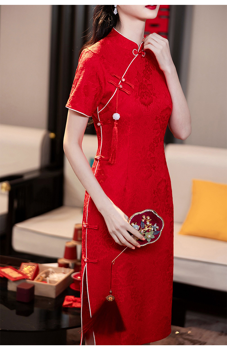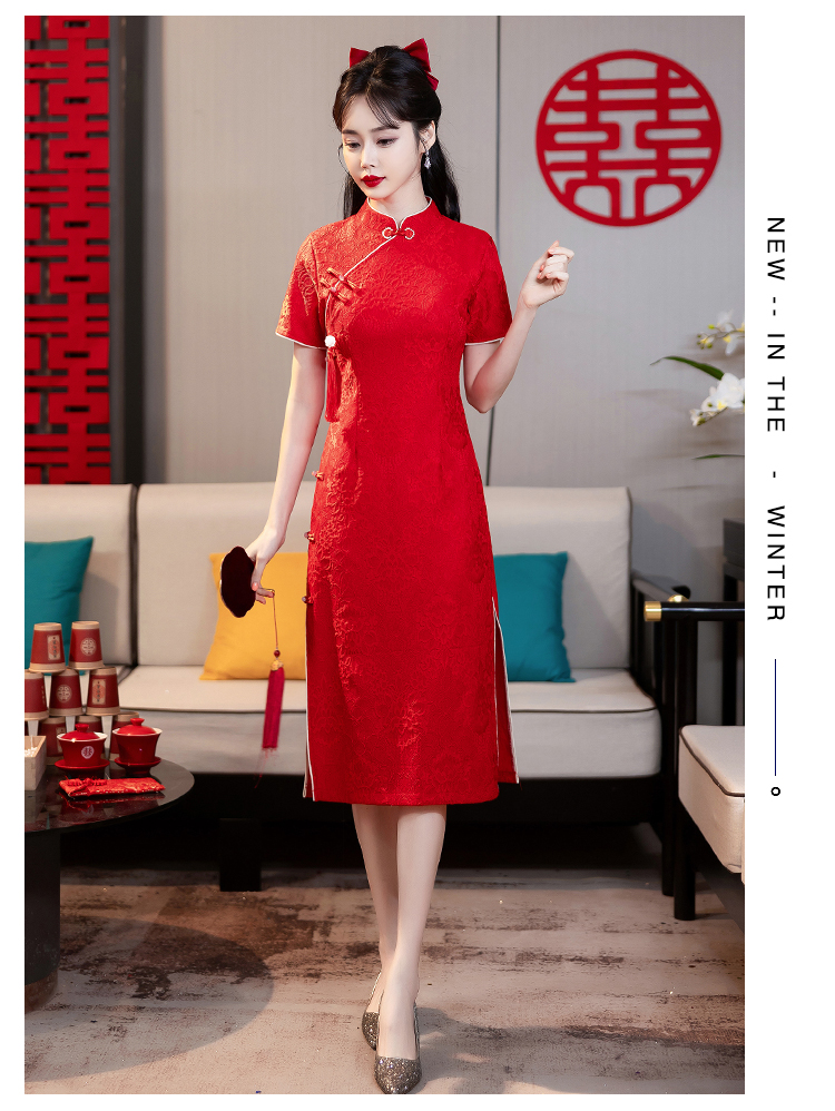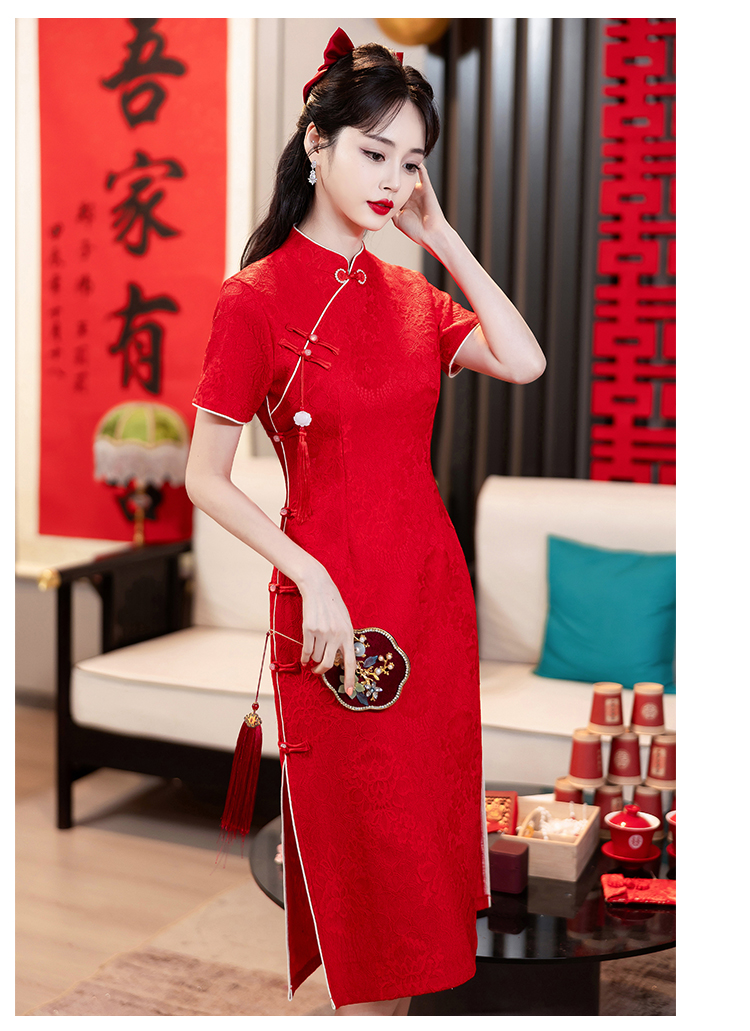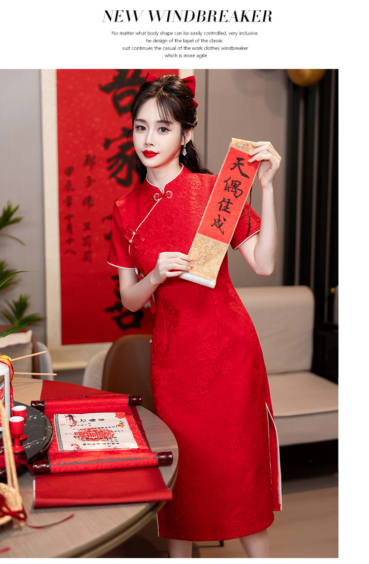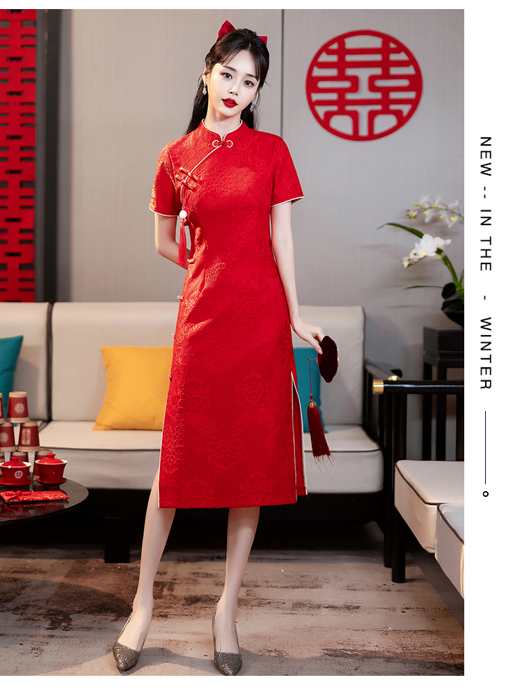 MY14355#复古收腰开叉长裙改良新国风旗袍连衣裙