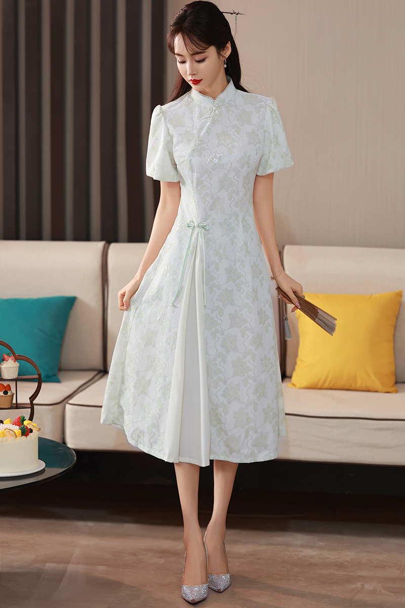 MY14357#夏新款气质改良国风旗袍短袖连衣裙新中式少女日常奥黛