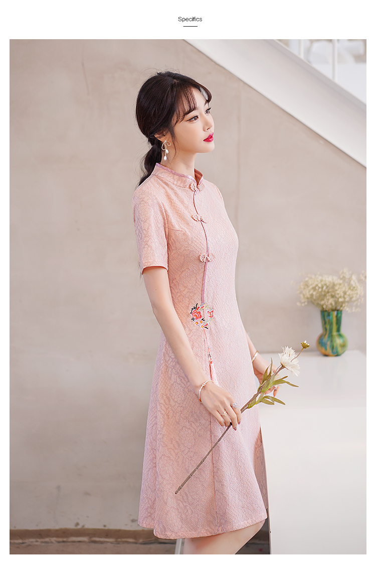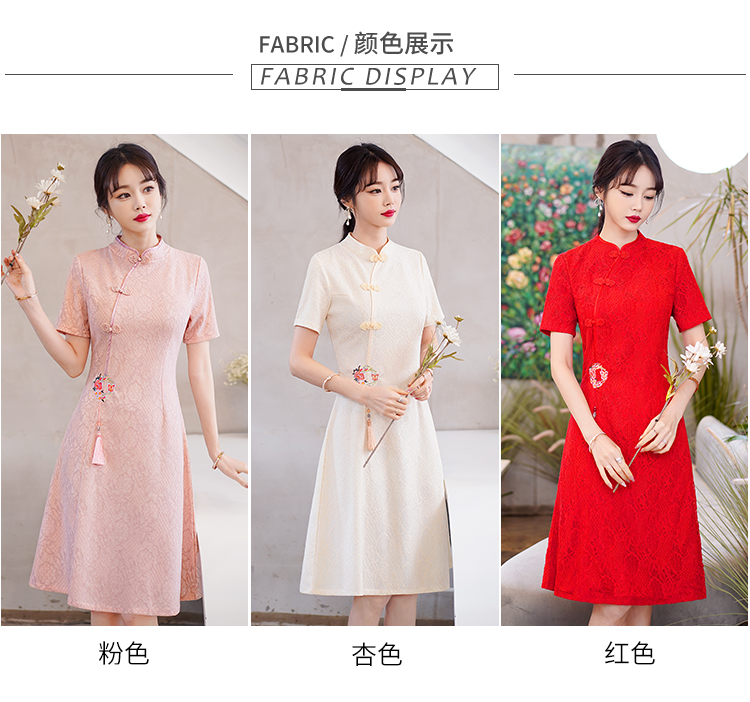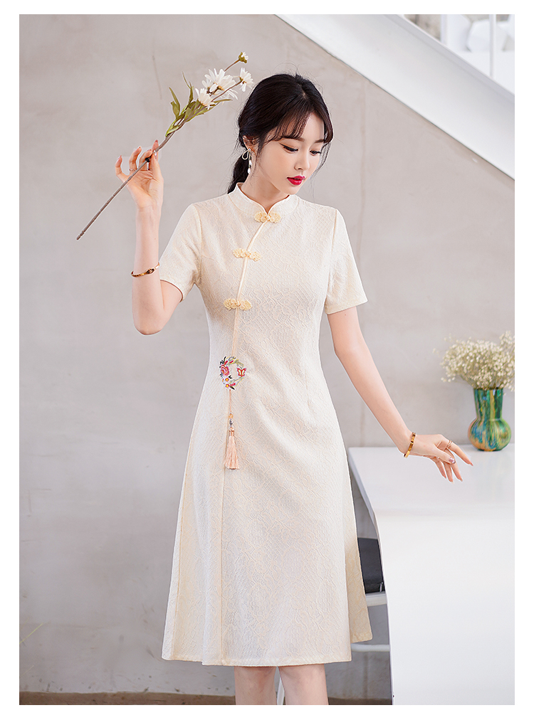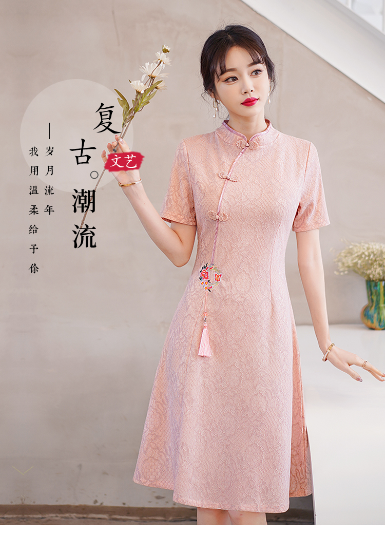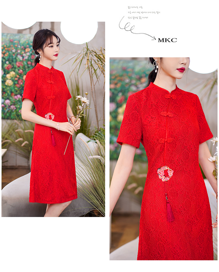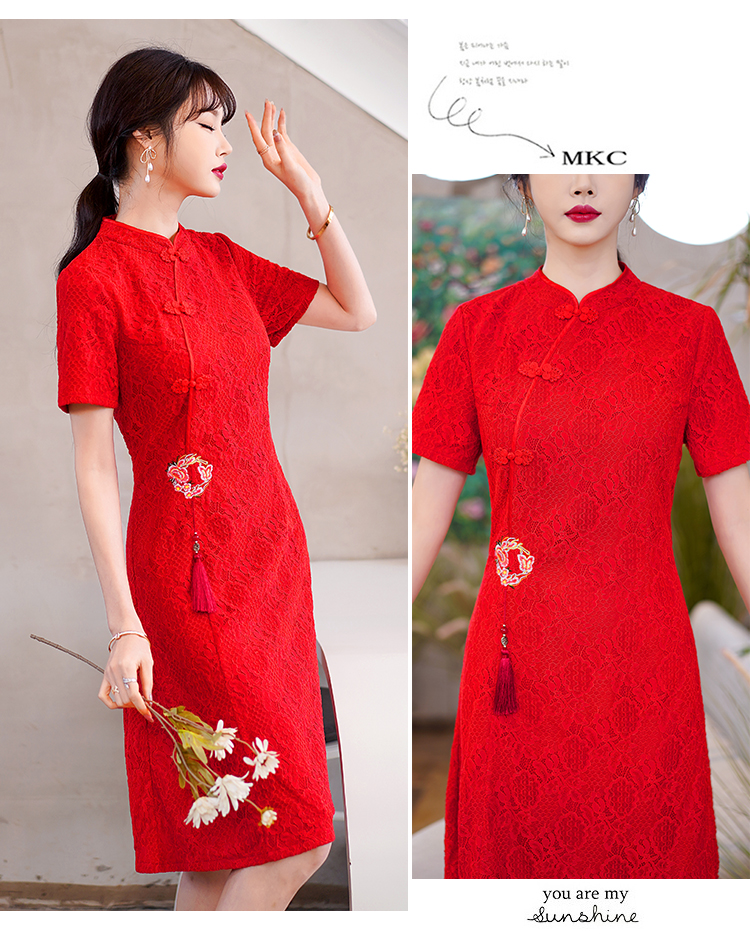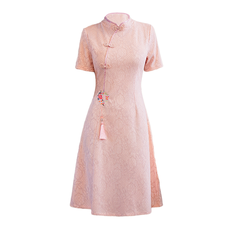 MY14358#夏新款改良旗袍蕾丝刺绣连衣裙中国风日常年轻款