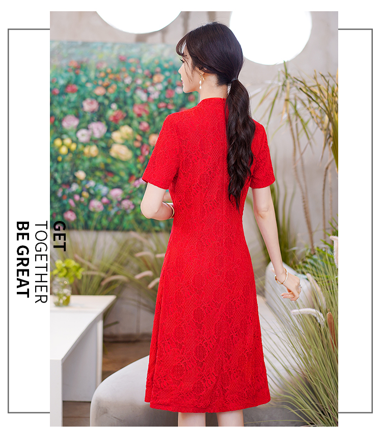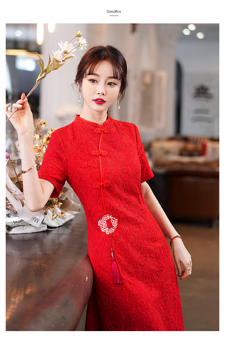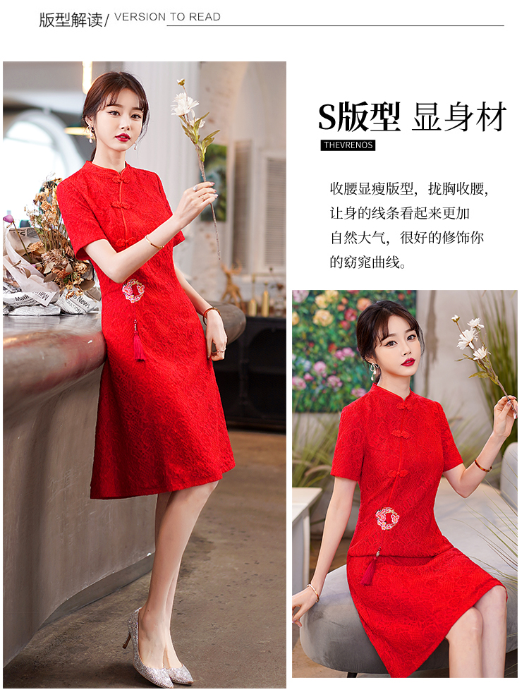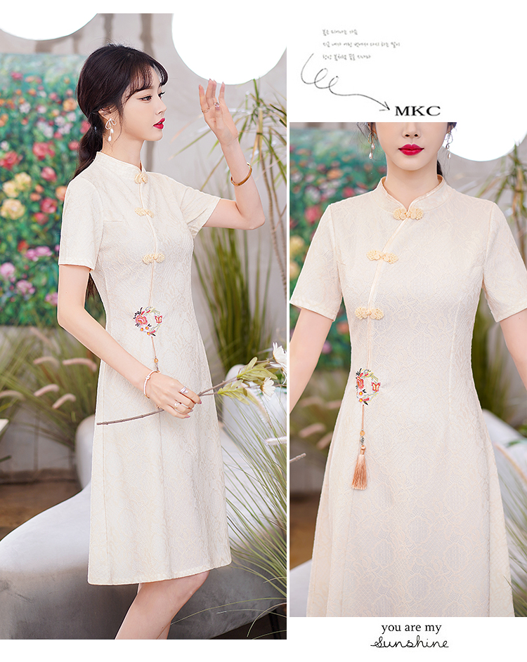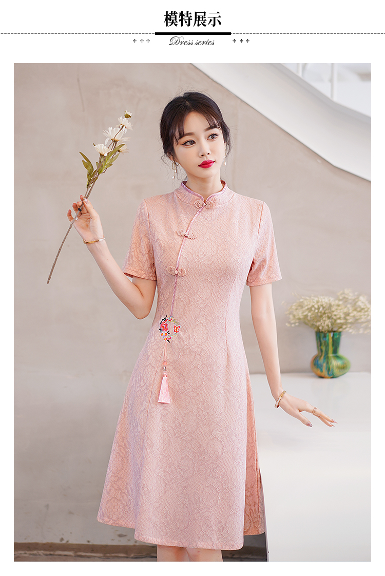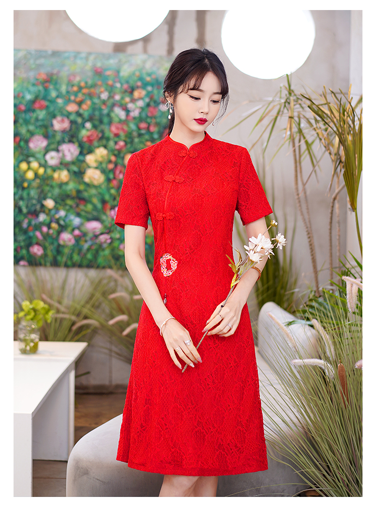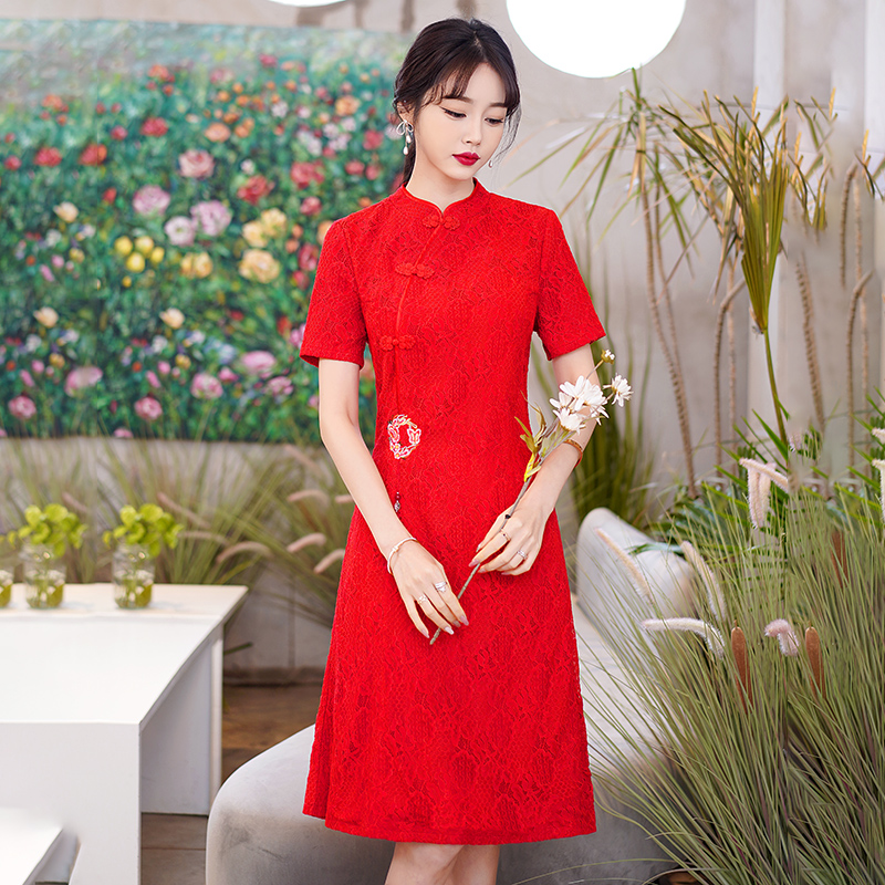 MY14358#夏新款改良旗袍蕾丝刺绣连衣裙中国风日常年轻款