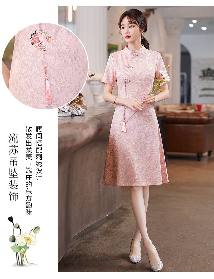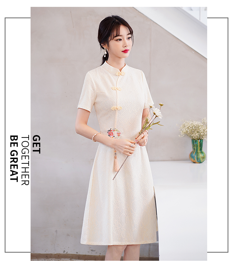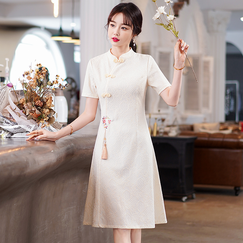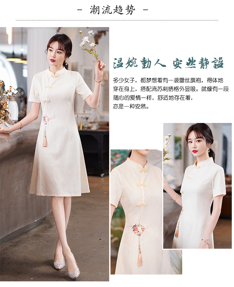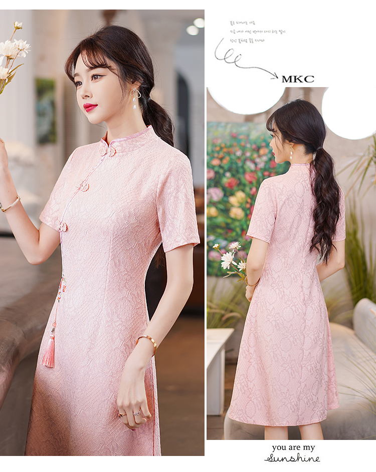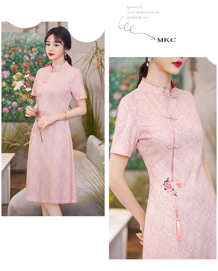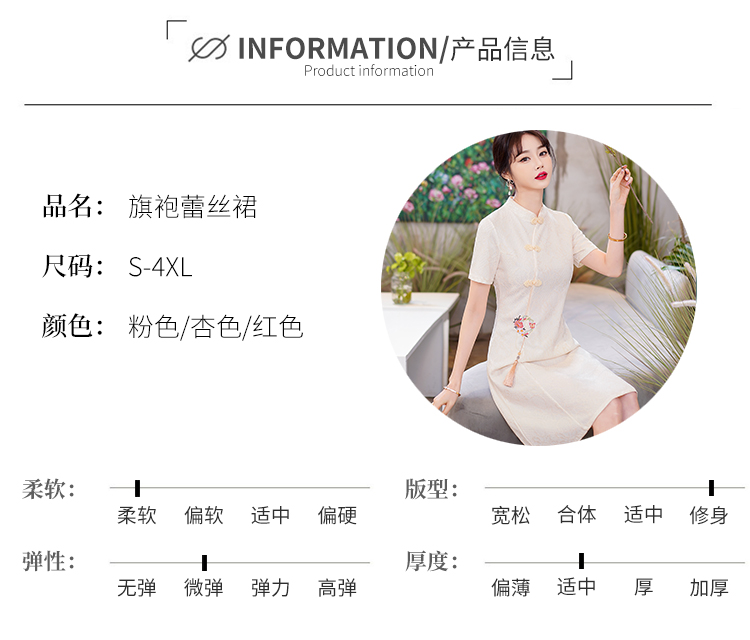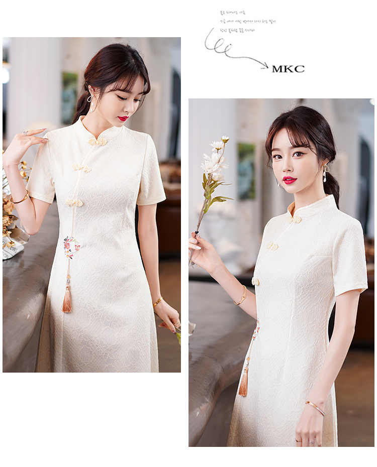 MY14358#夏新款改良旗袍蕾丝刺绣连衣裙中国风日常年轻款