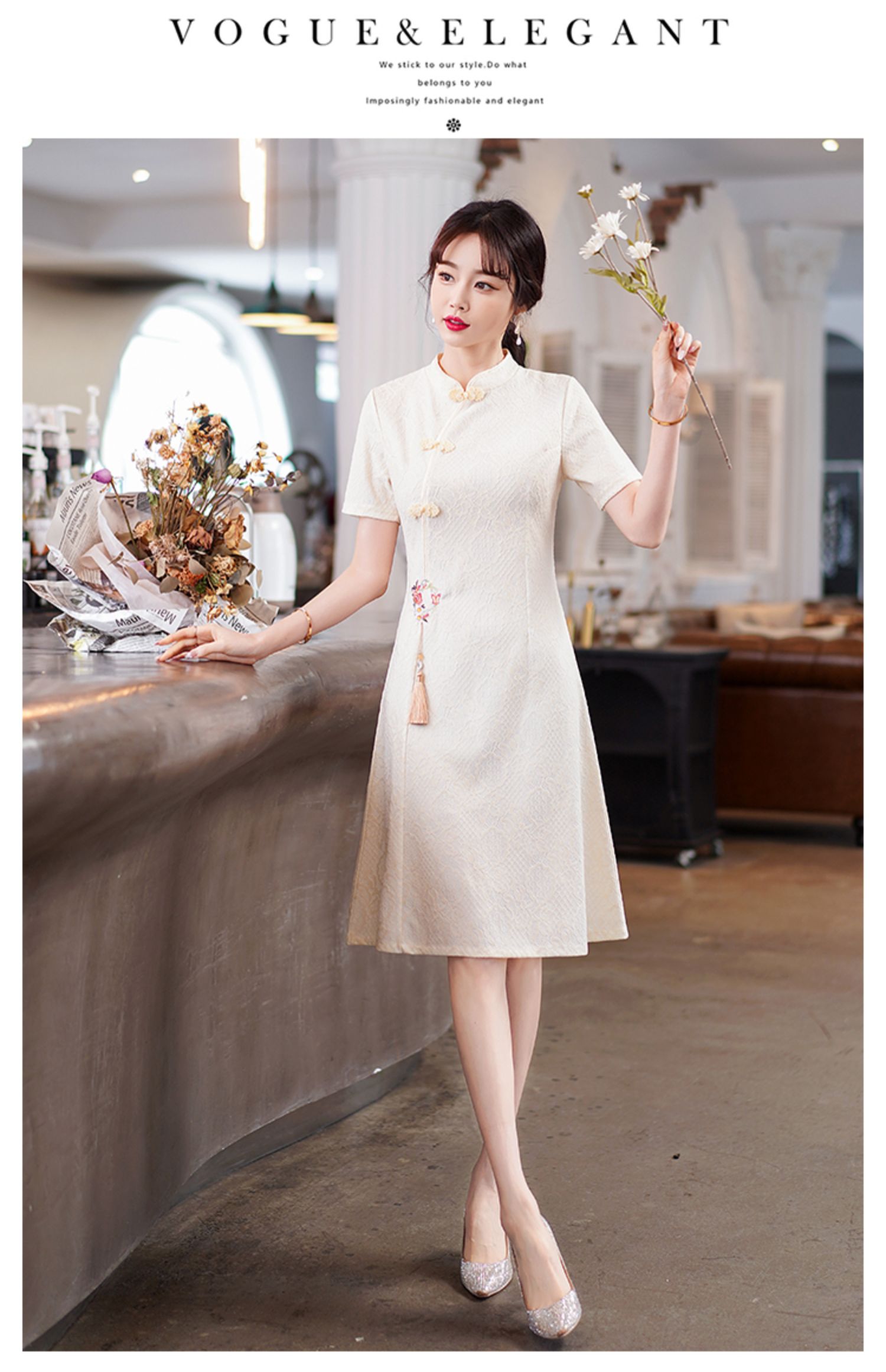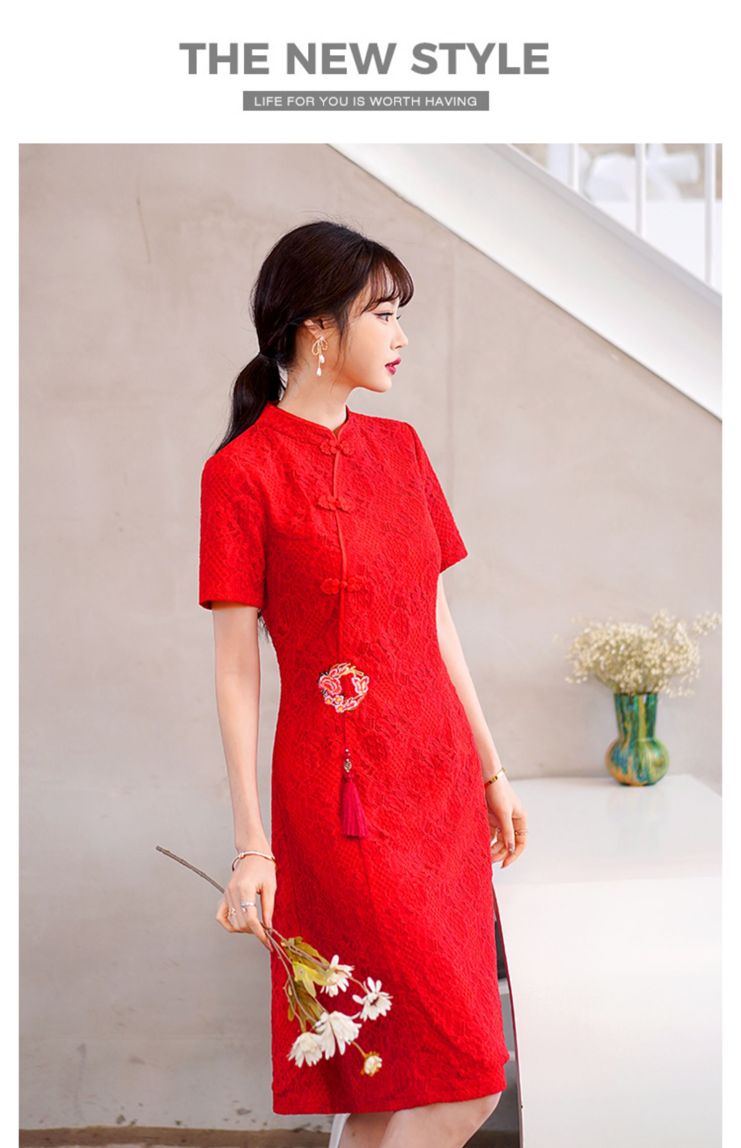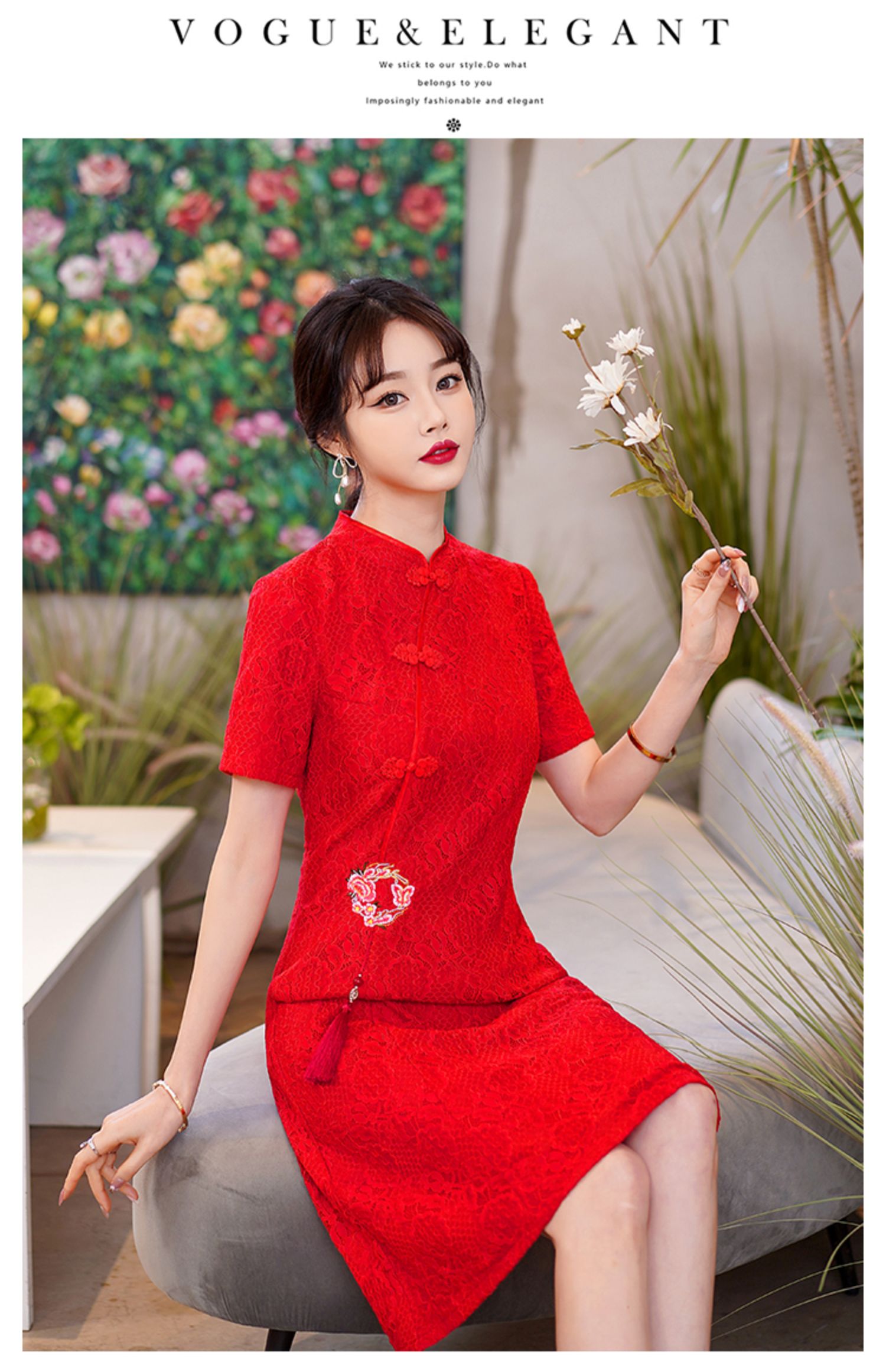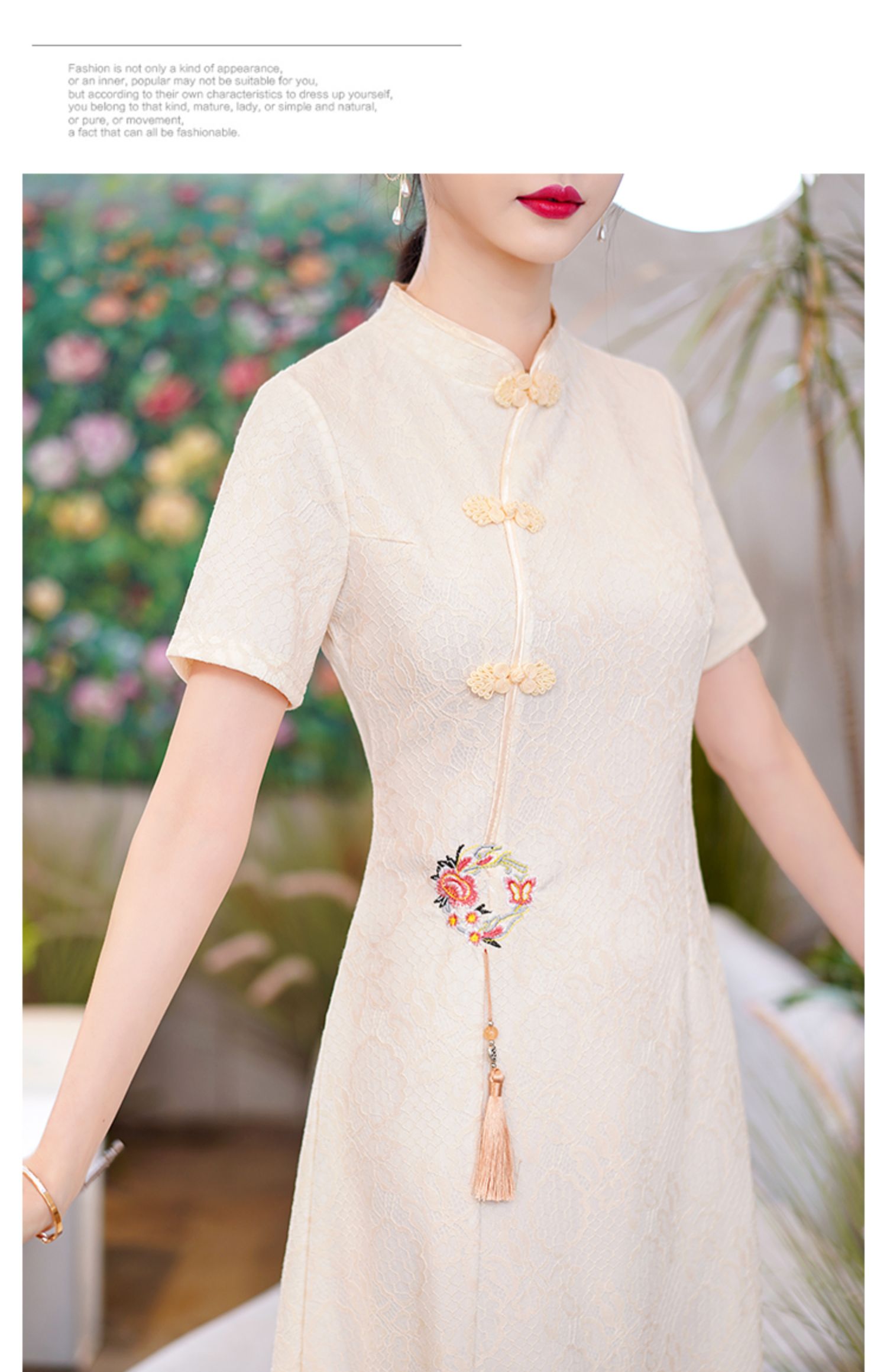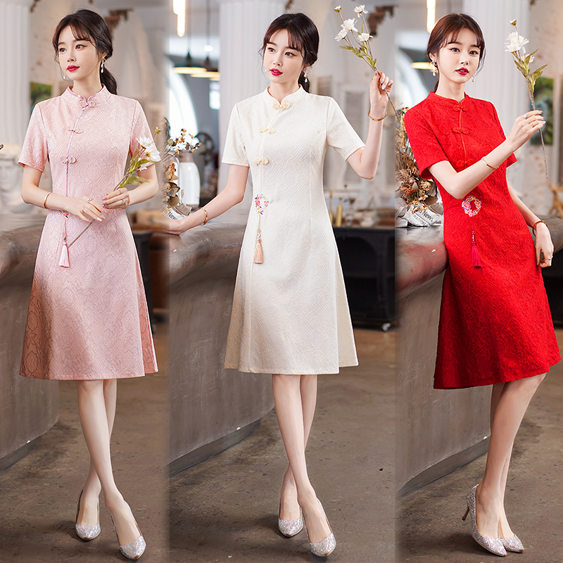 MY14358#夏新款改良旗袍蕾丝刺绣连衣裙中国风日常年轻款