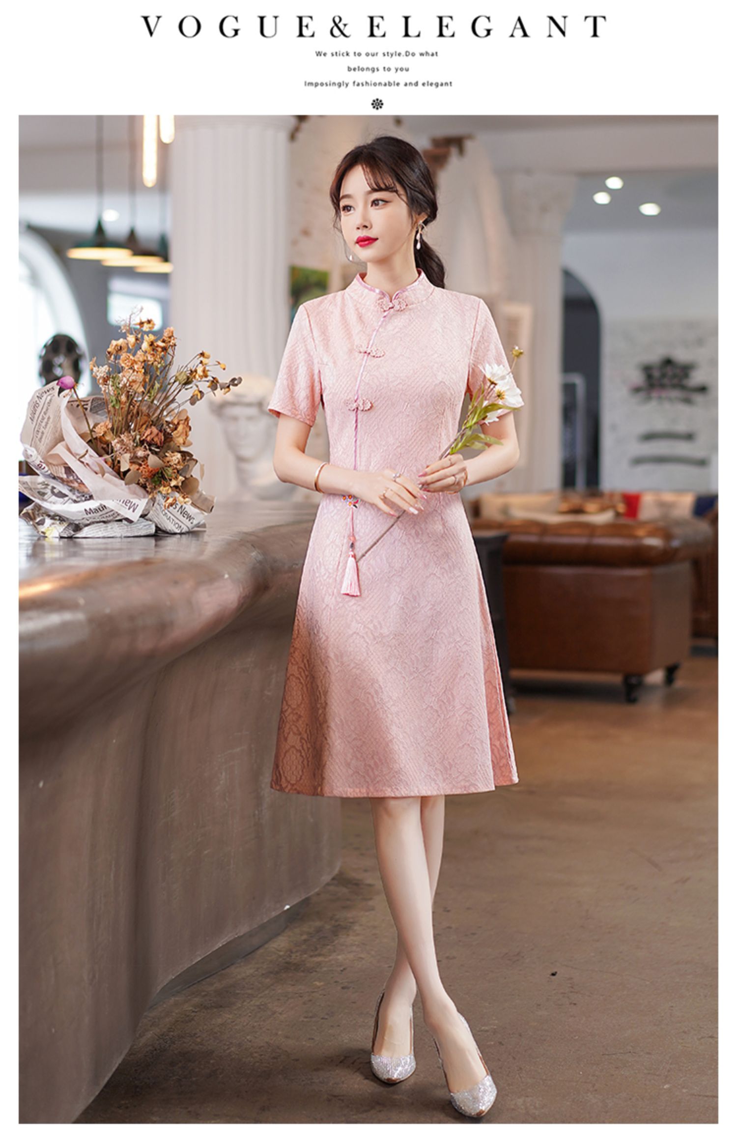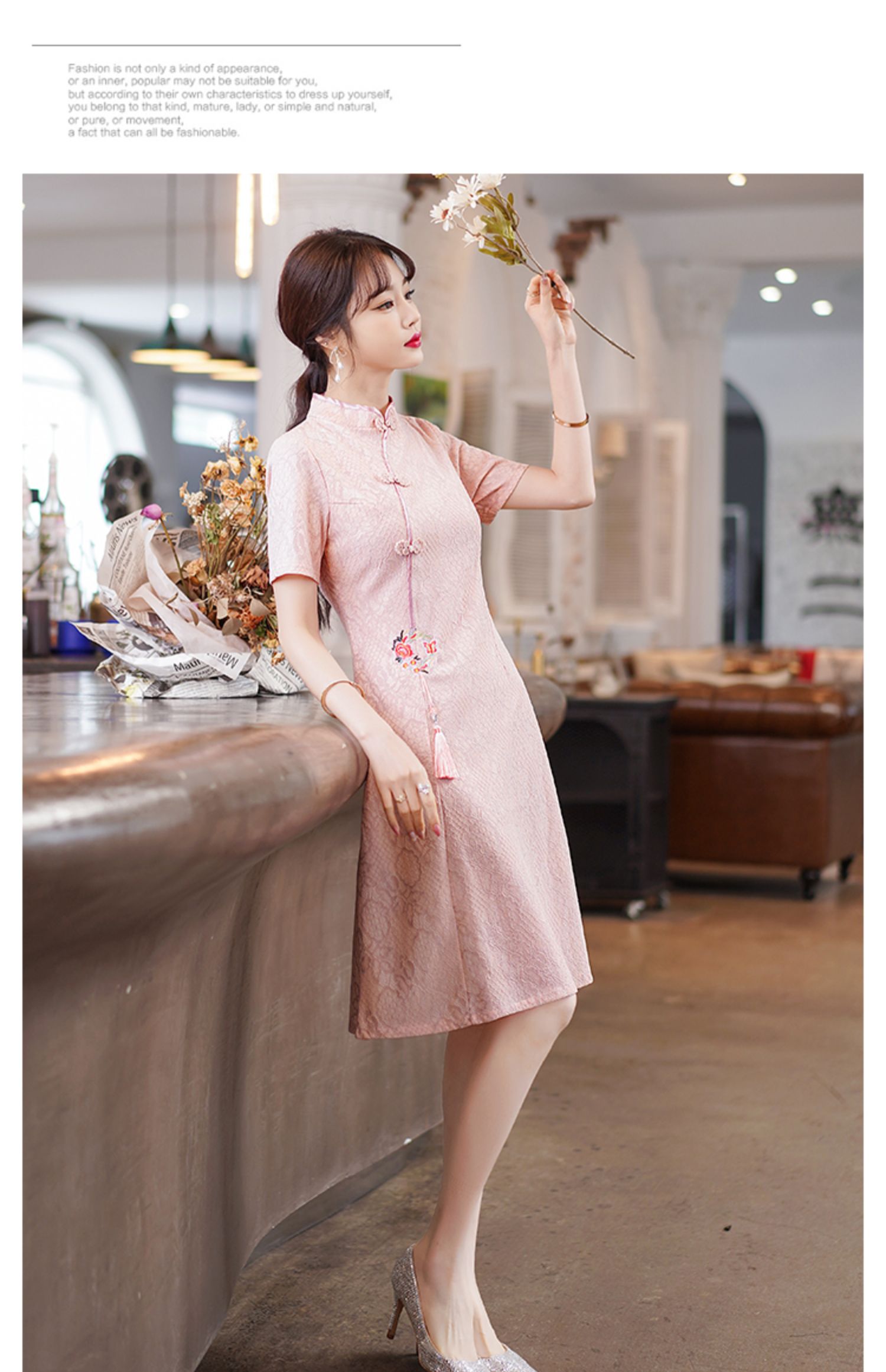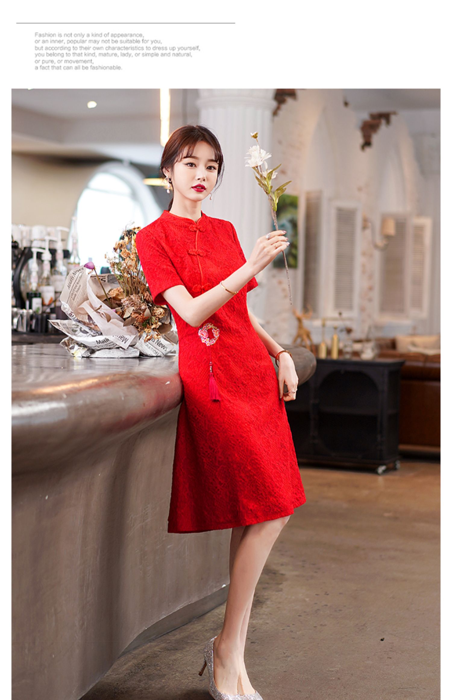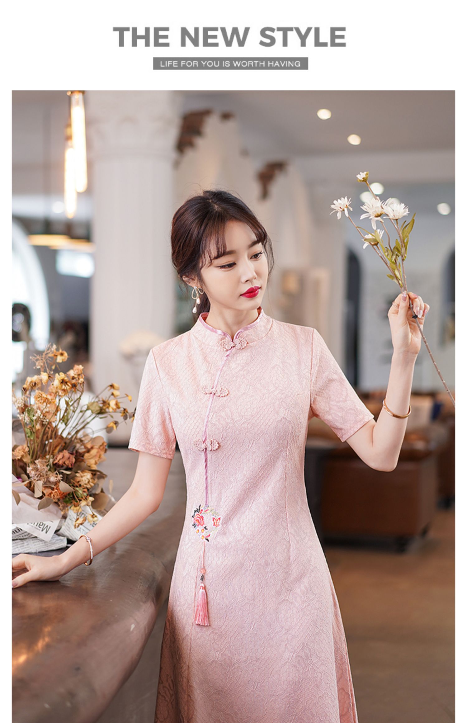 MY14358#夏新款改良旗袍蕾丝刺绣连衣裙中国风日常年轻款