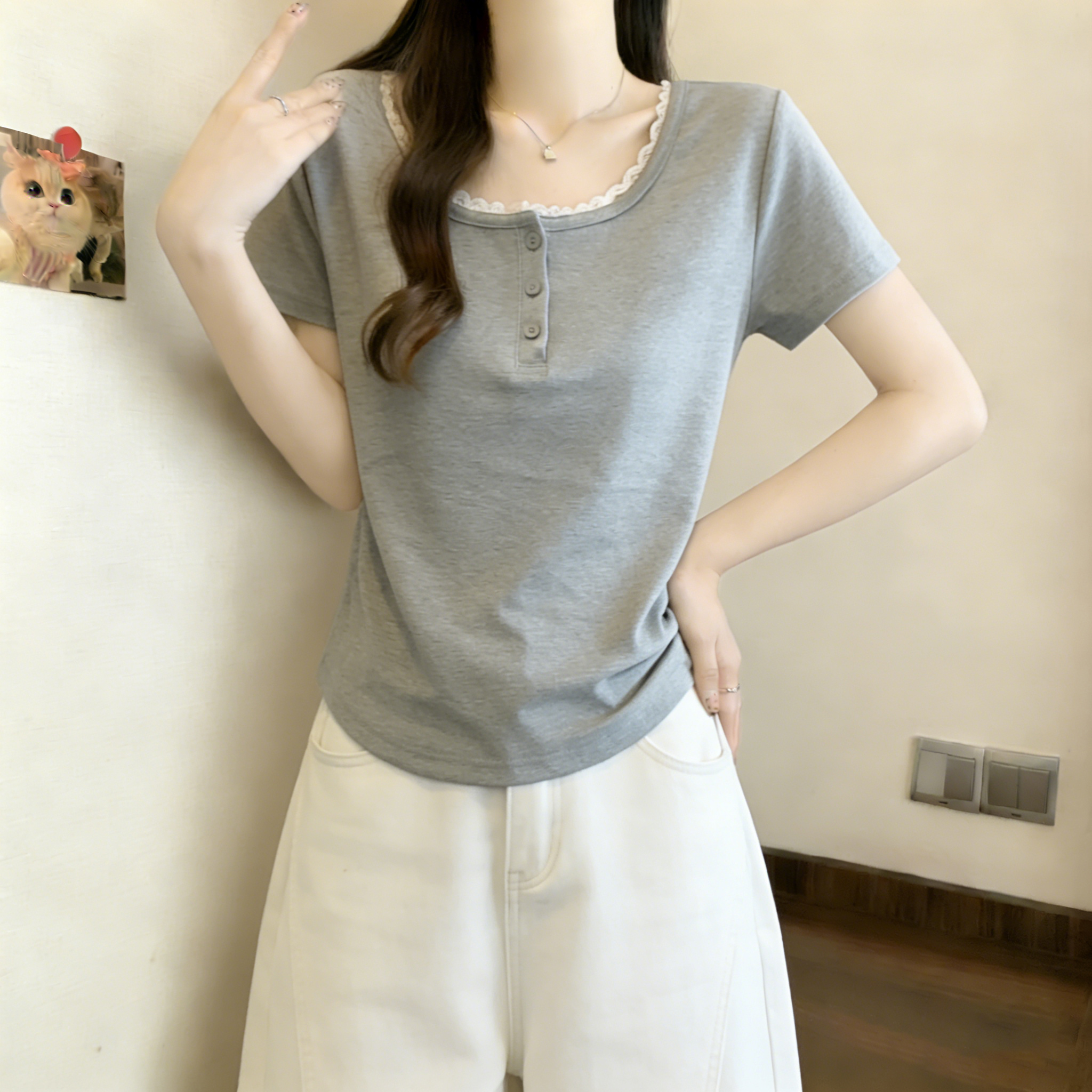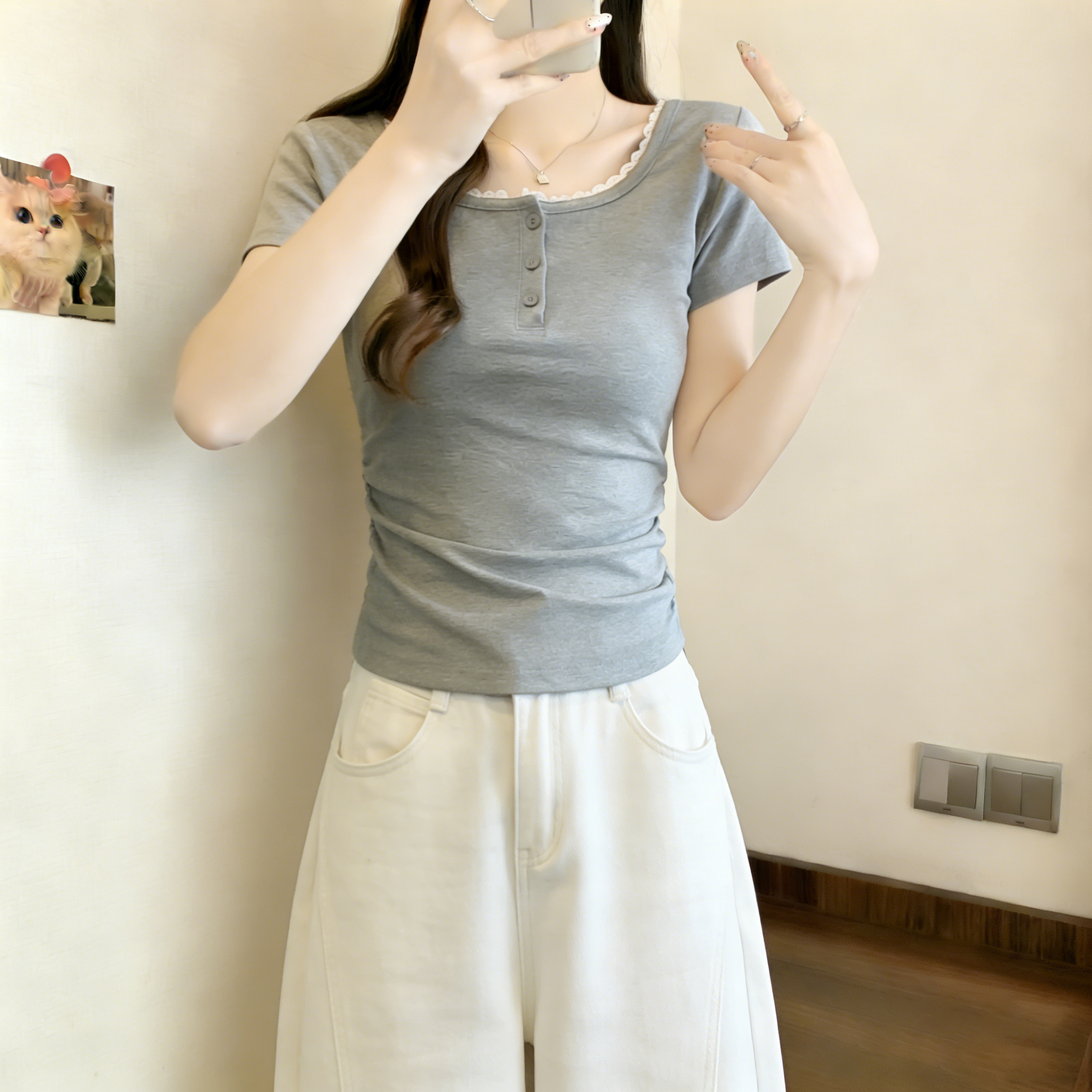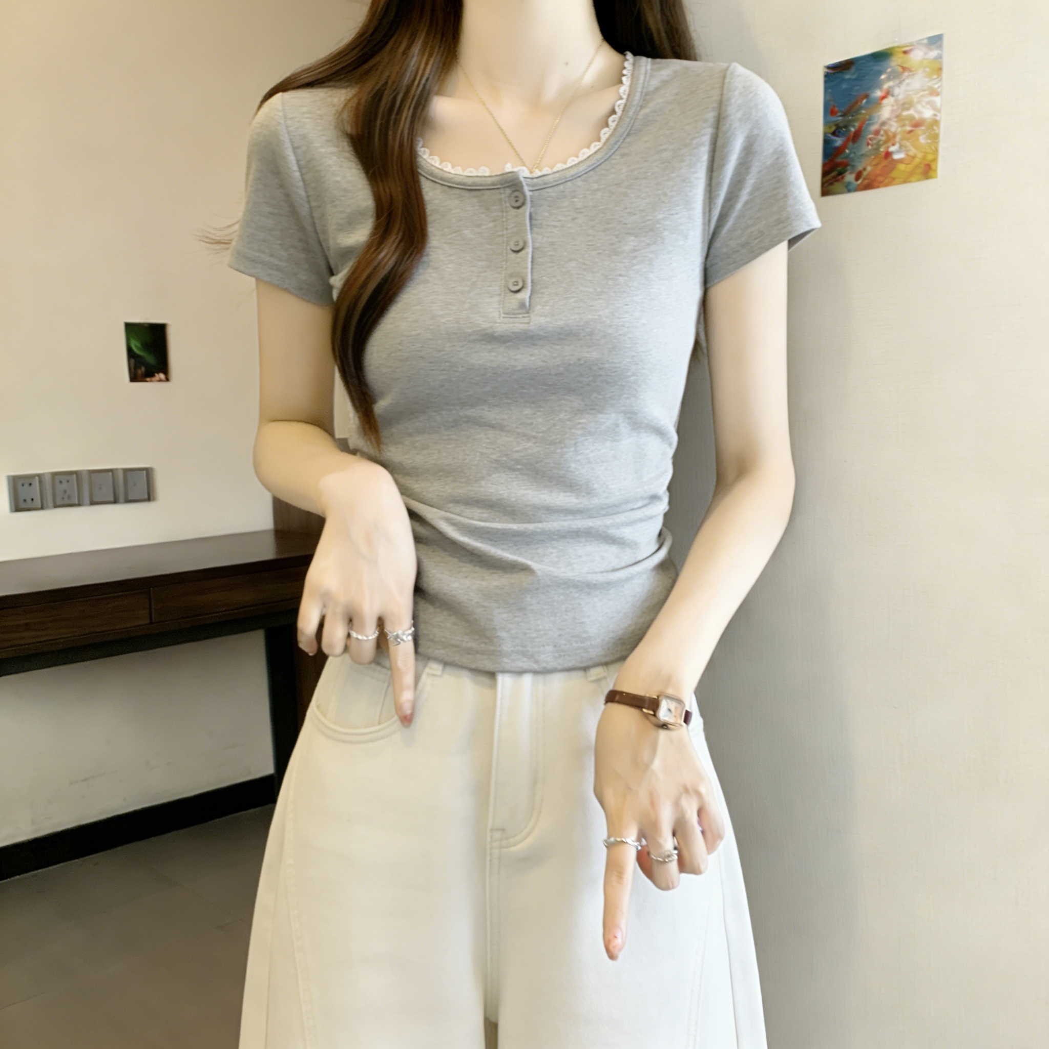 RY3074# 实拍~灰色短袖T恤女装2026新款夏季胖MM遮肉显瘦修身体恤上衣