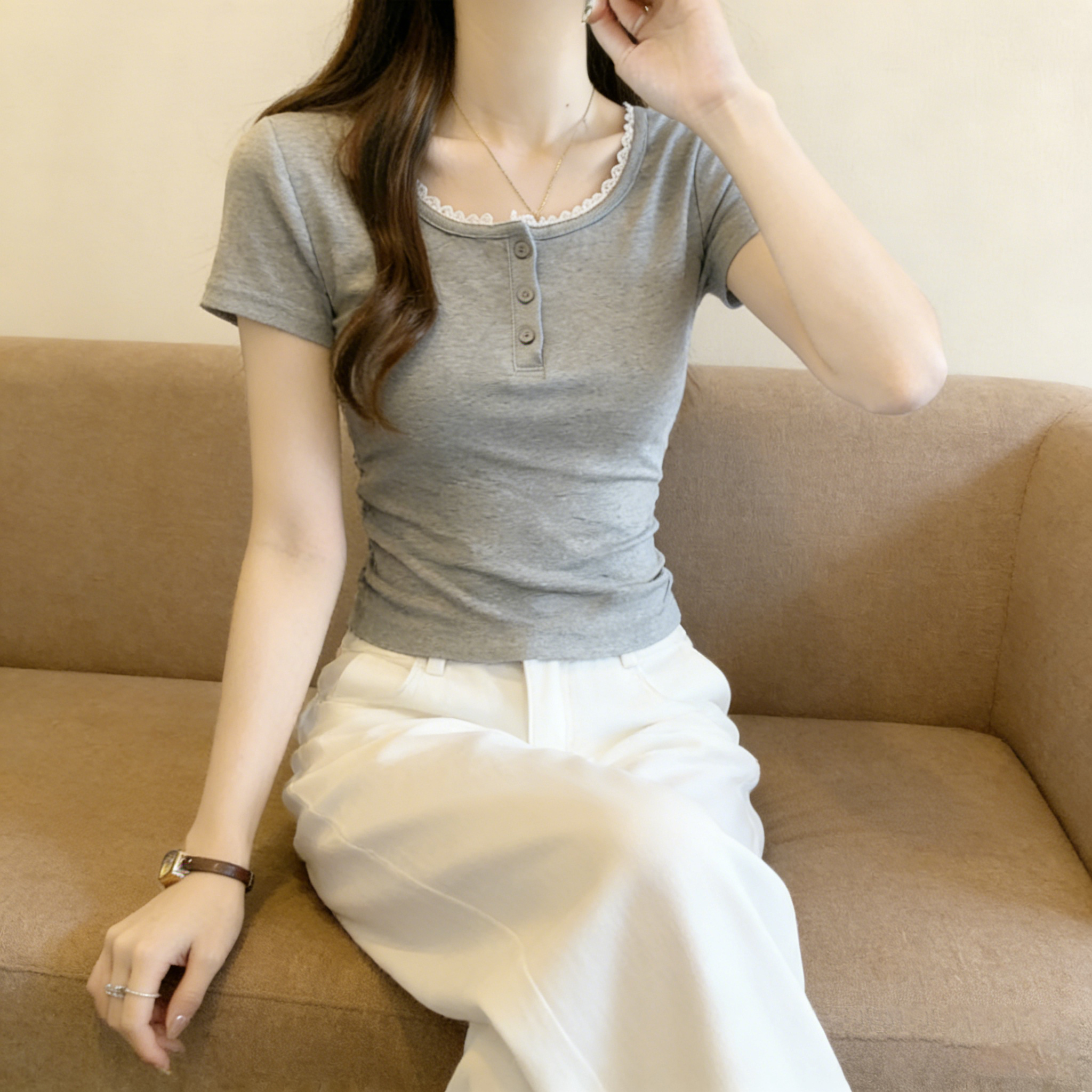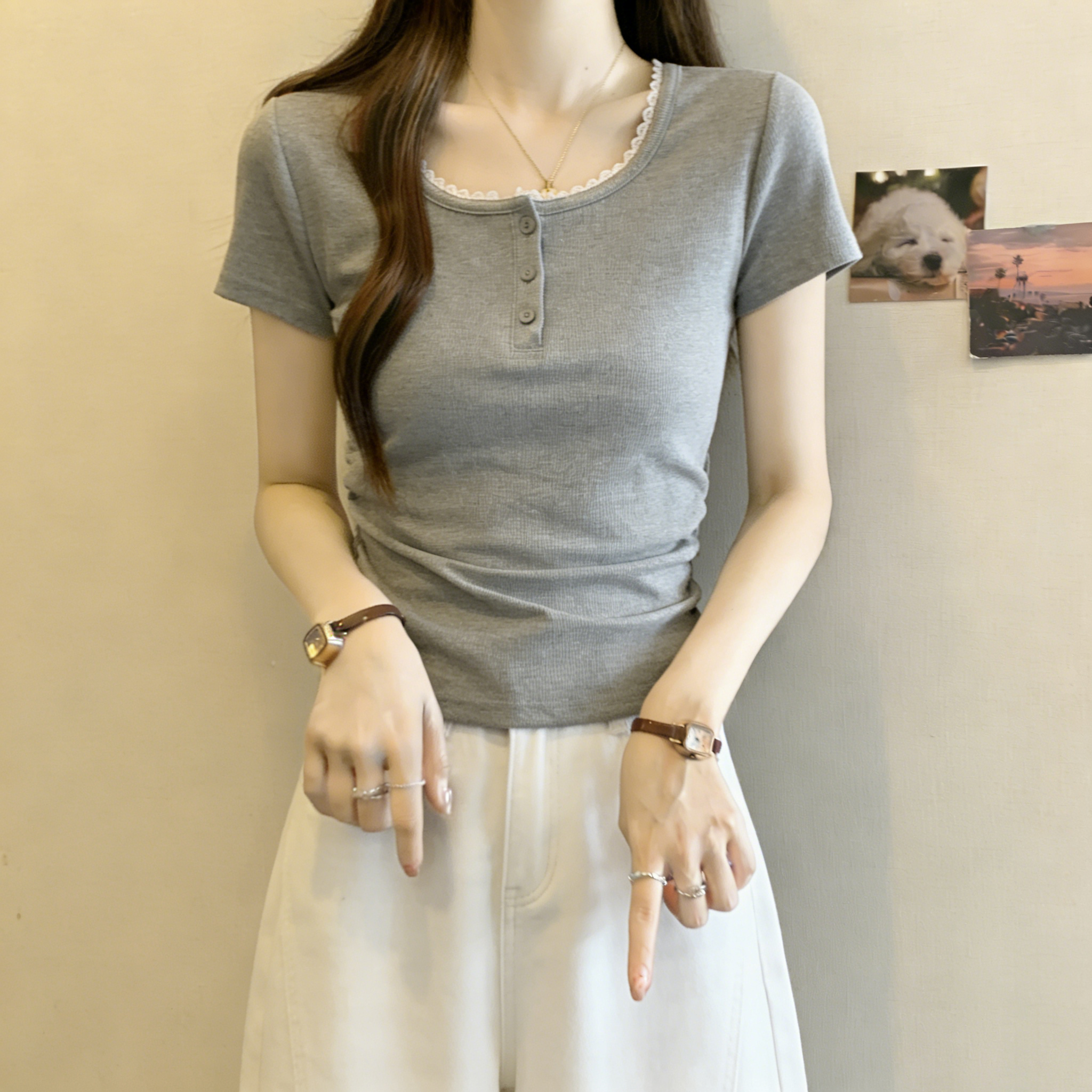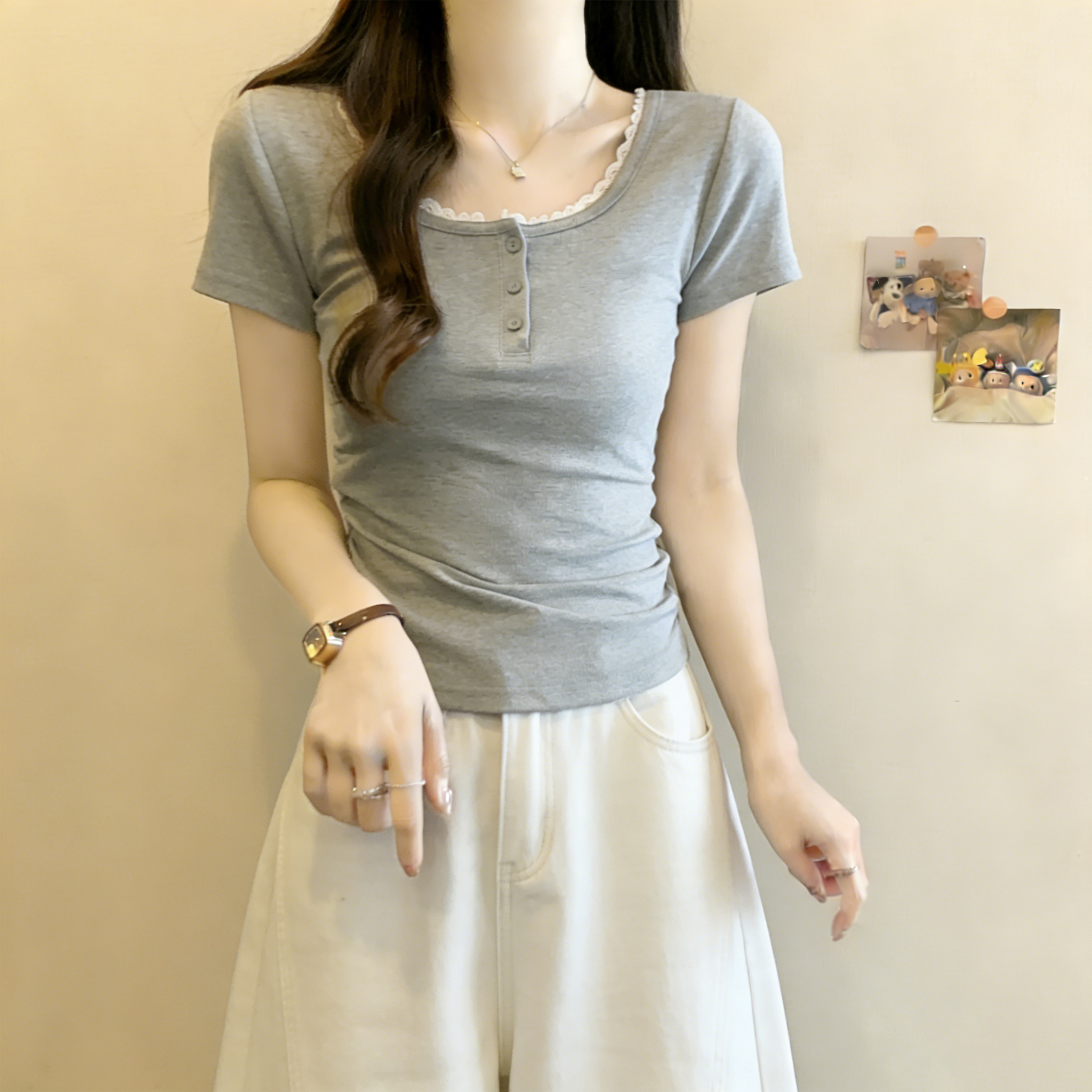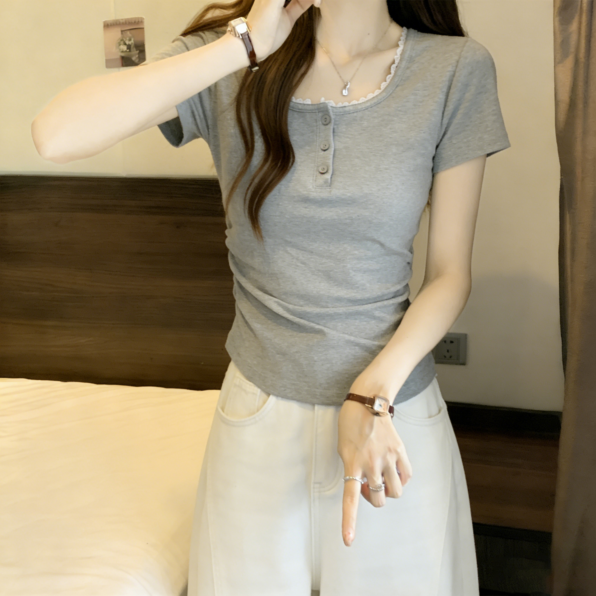 RY3074# 实拍~灰色短袖T恤女装2026新款夏季胖MM遮肉显瘦修身体恤上衣